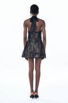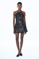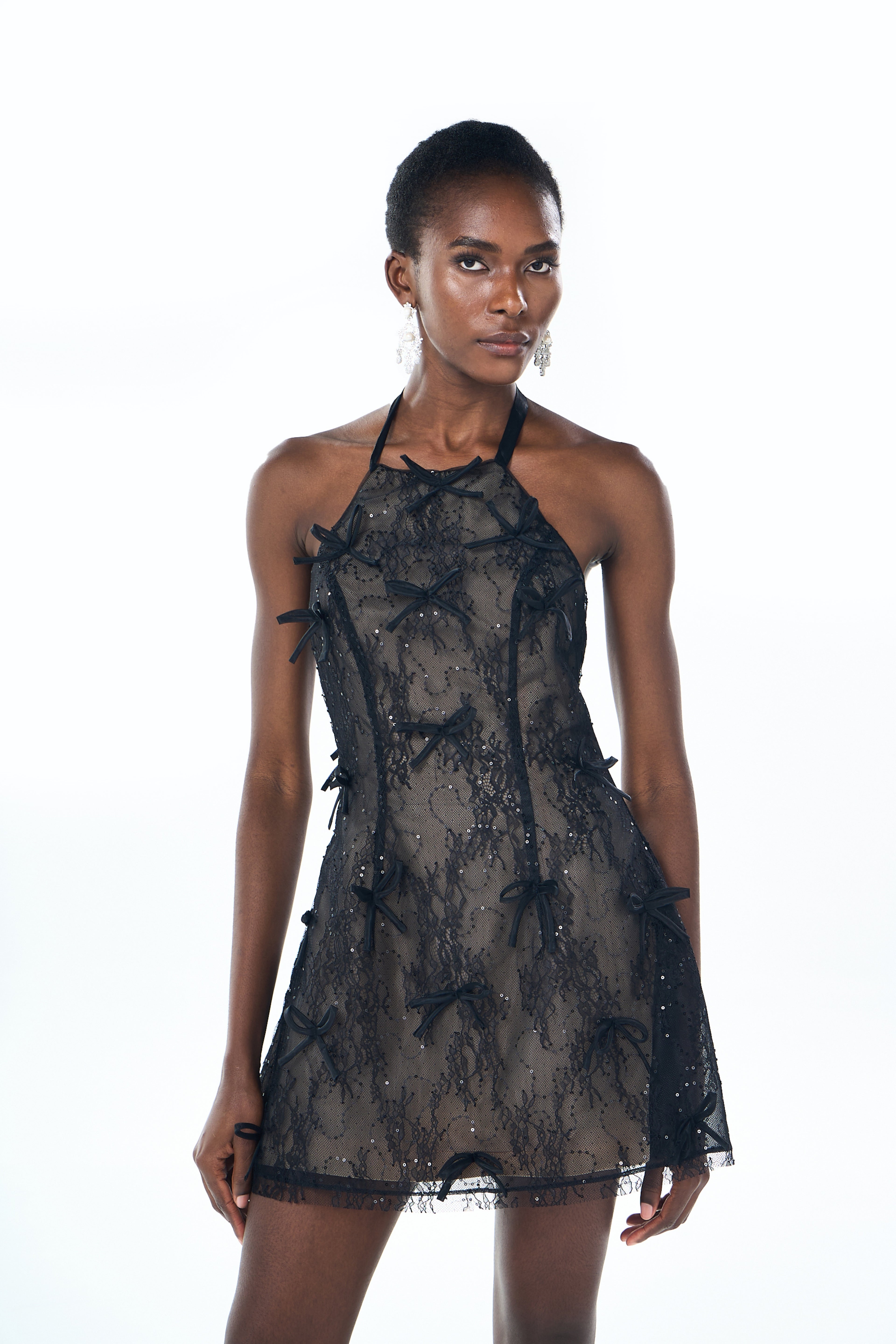 Sigrid Black Lace Bow Appliqué Mini Dress