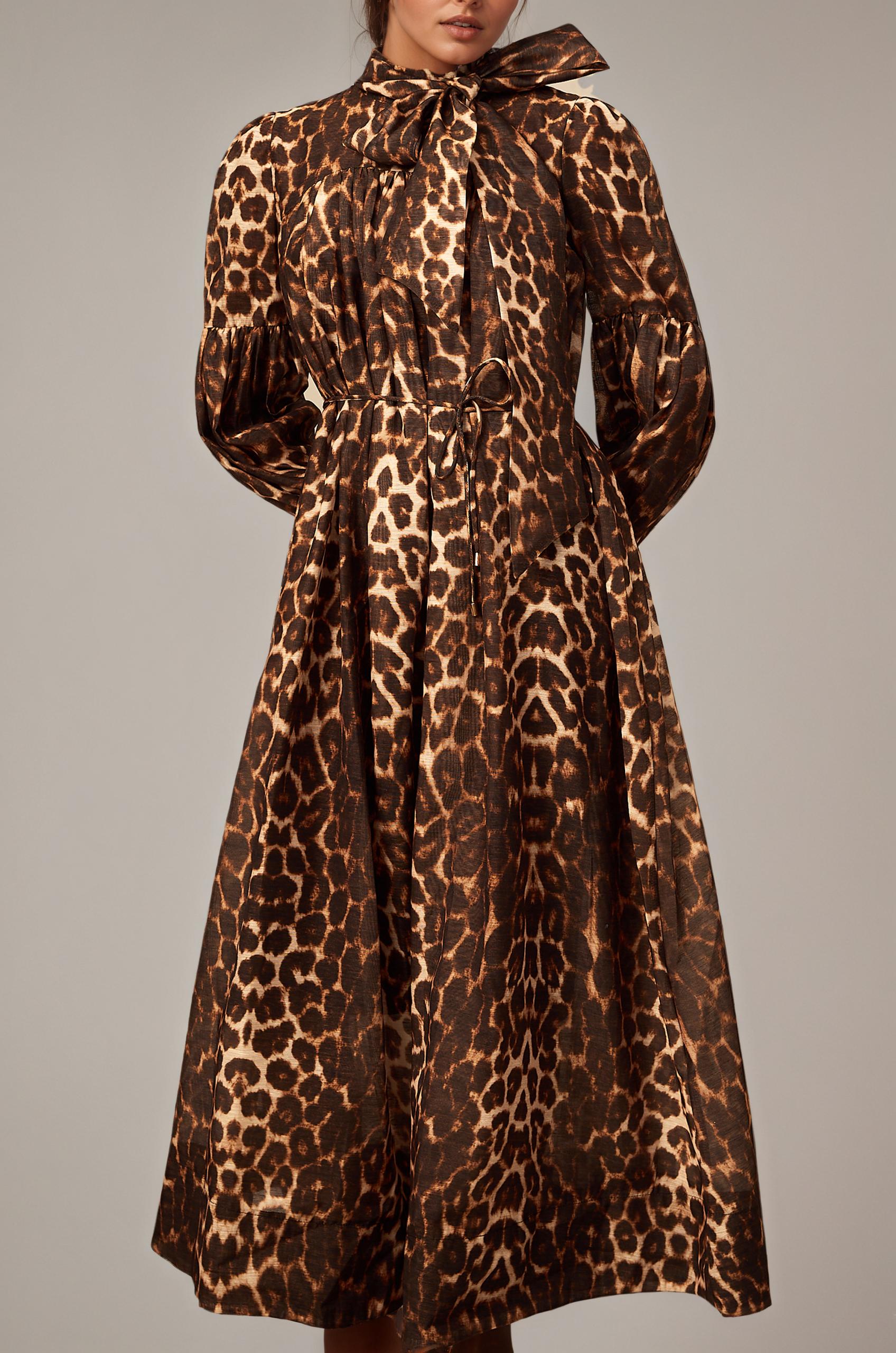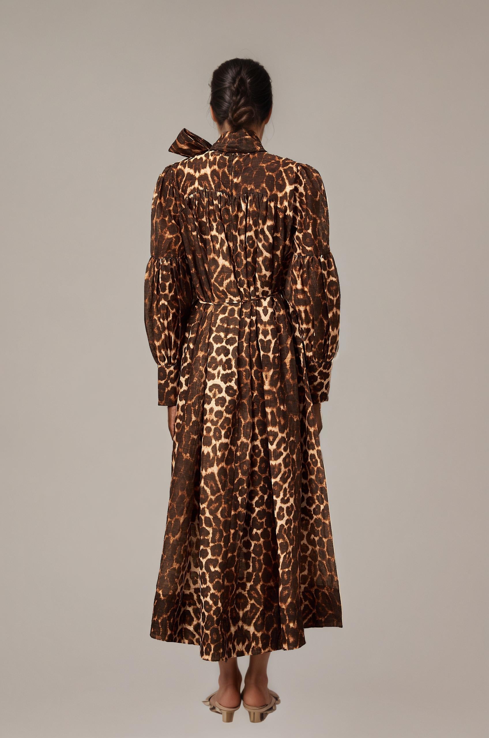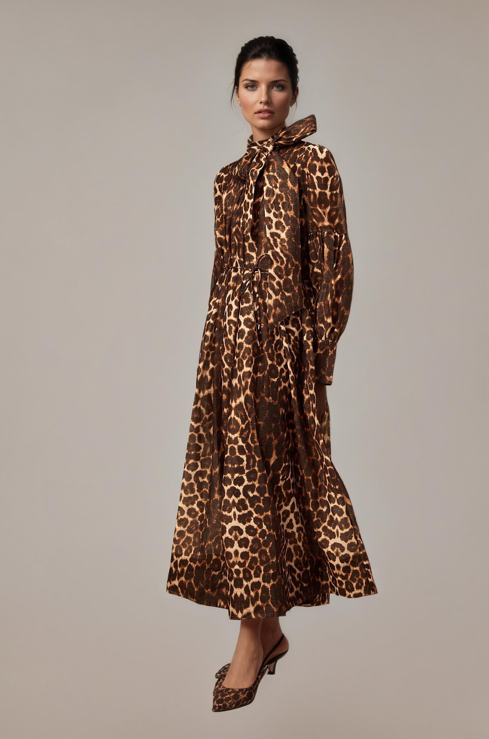 Yseult Leopard Midi Dress With Tied-Neck Detail