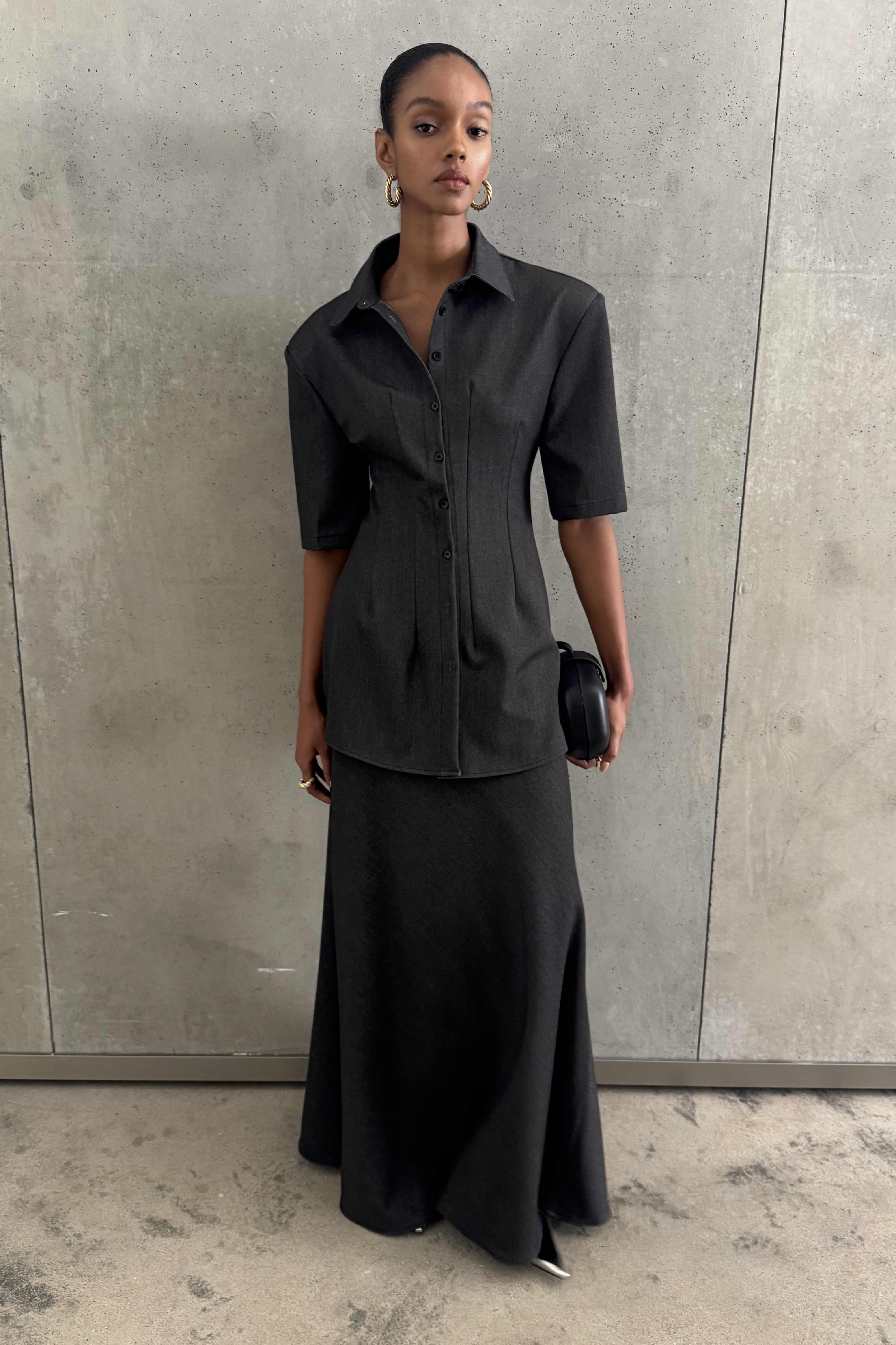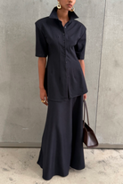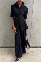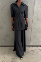 Brooke Grey Cinched Waist Blouse & Trousers Set