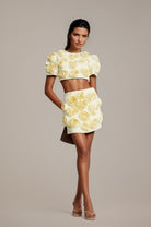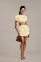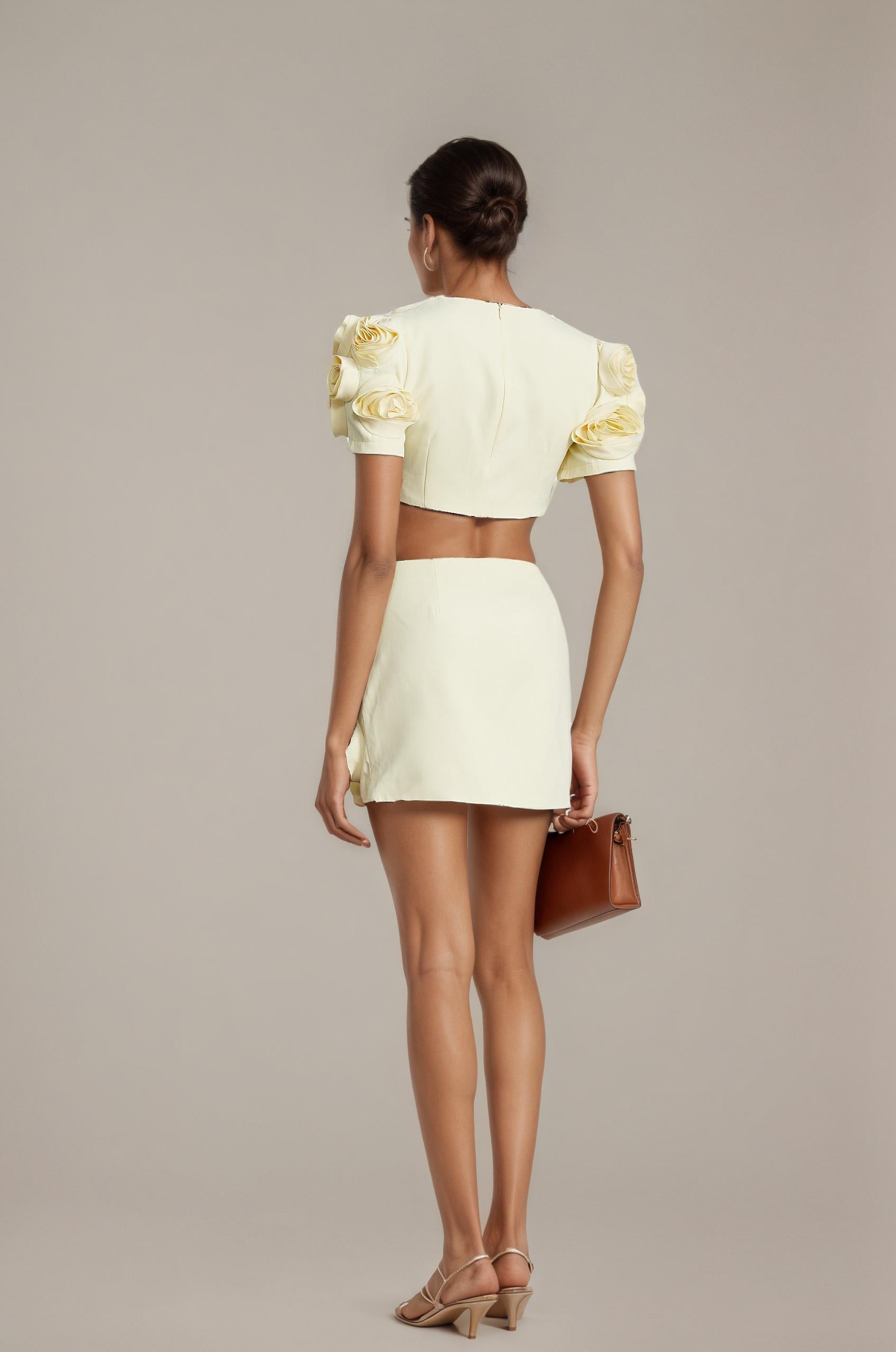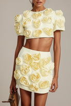 Introducing the Camille Matching Set With Faux-Flower Details, a must-have addition to your wardrobe. This set features delicate floral embroidery and elegant faux-flower embellishment. With its coordinated design and flattering silhouette, it offers a perfect fit. Elevate your style with this elegant and versatile ensemble.