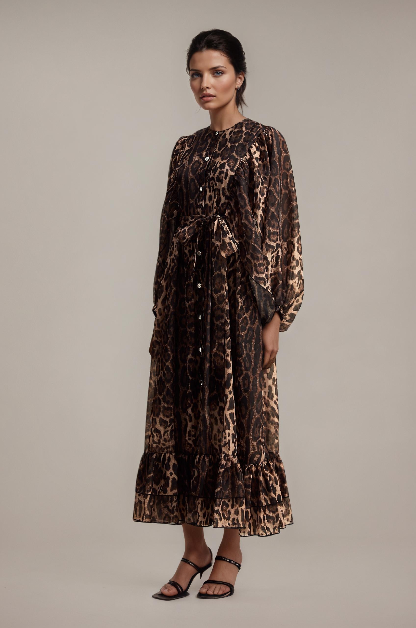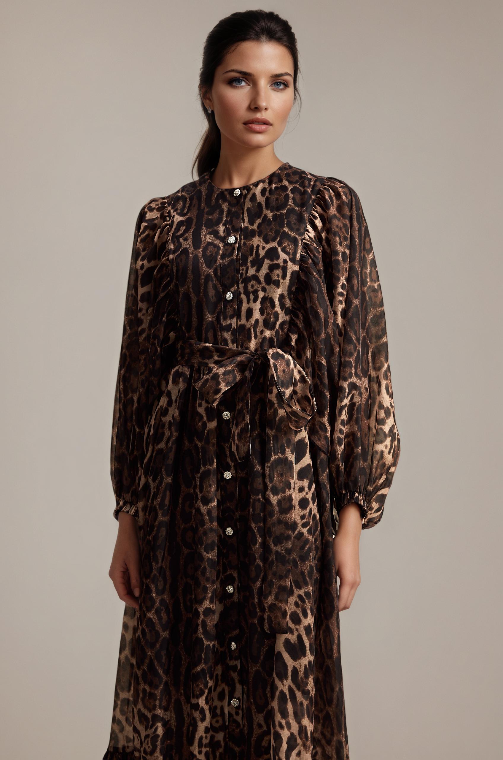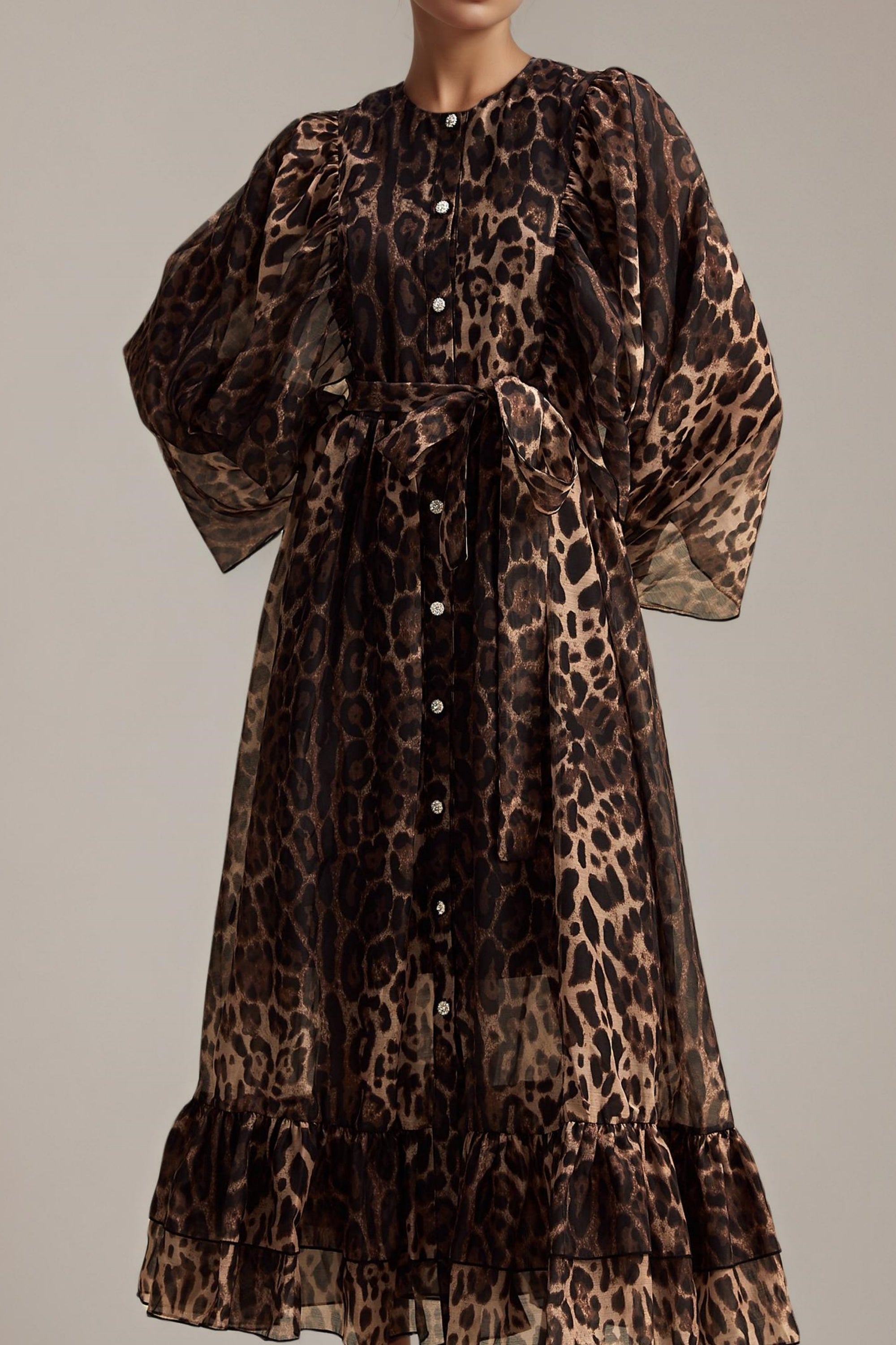 Gisèle Single-Breasted Midi Dress With Leopard Print