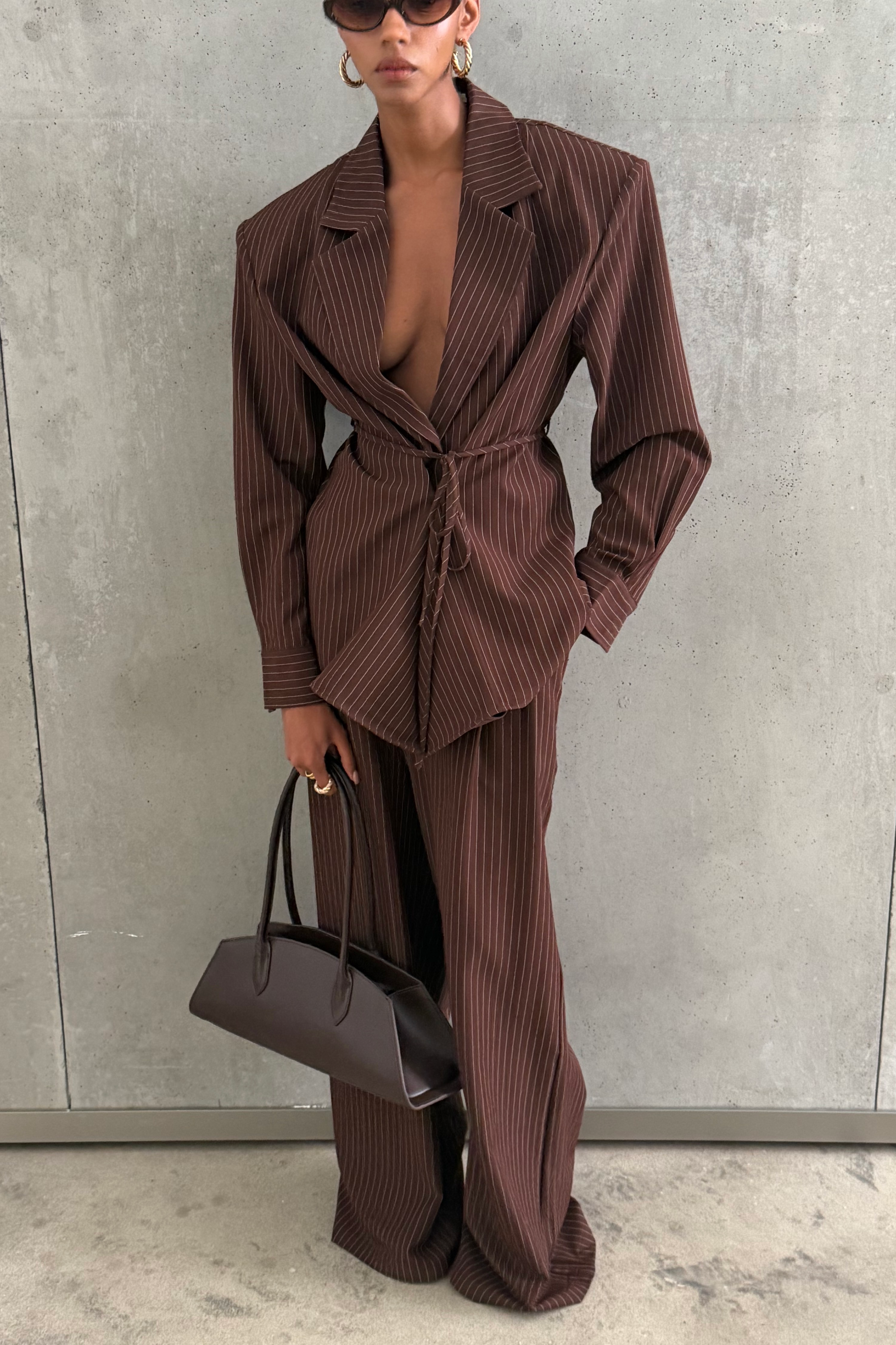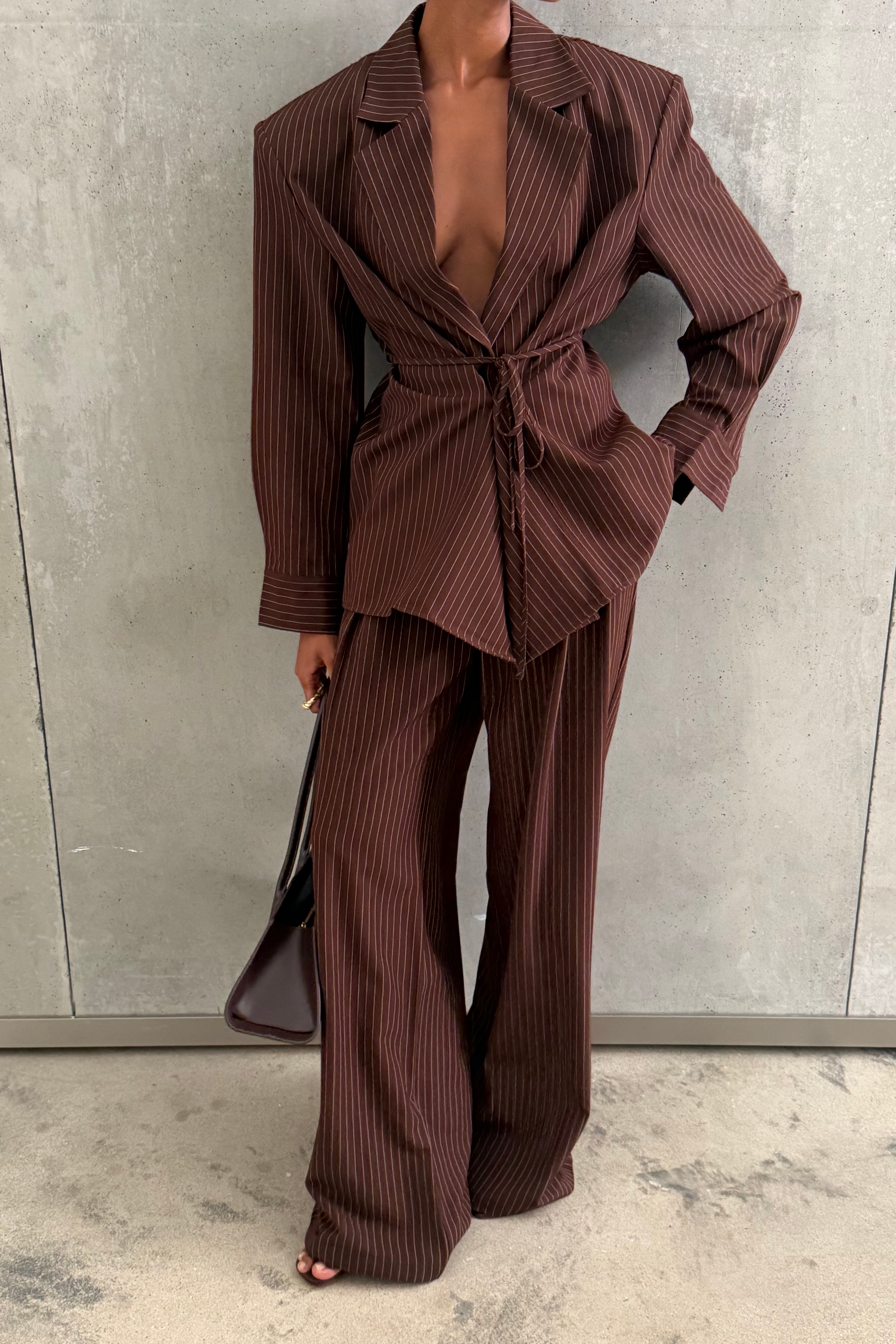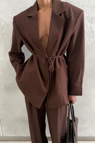 Rosemary Brown Vertical Stripes Blazer & Trousers Set