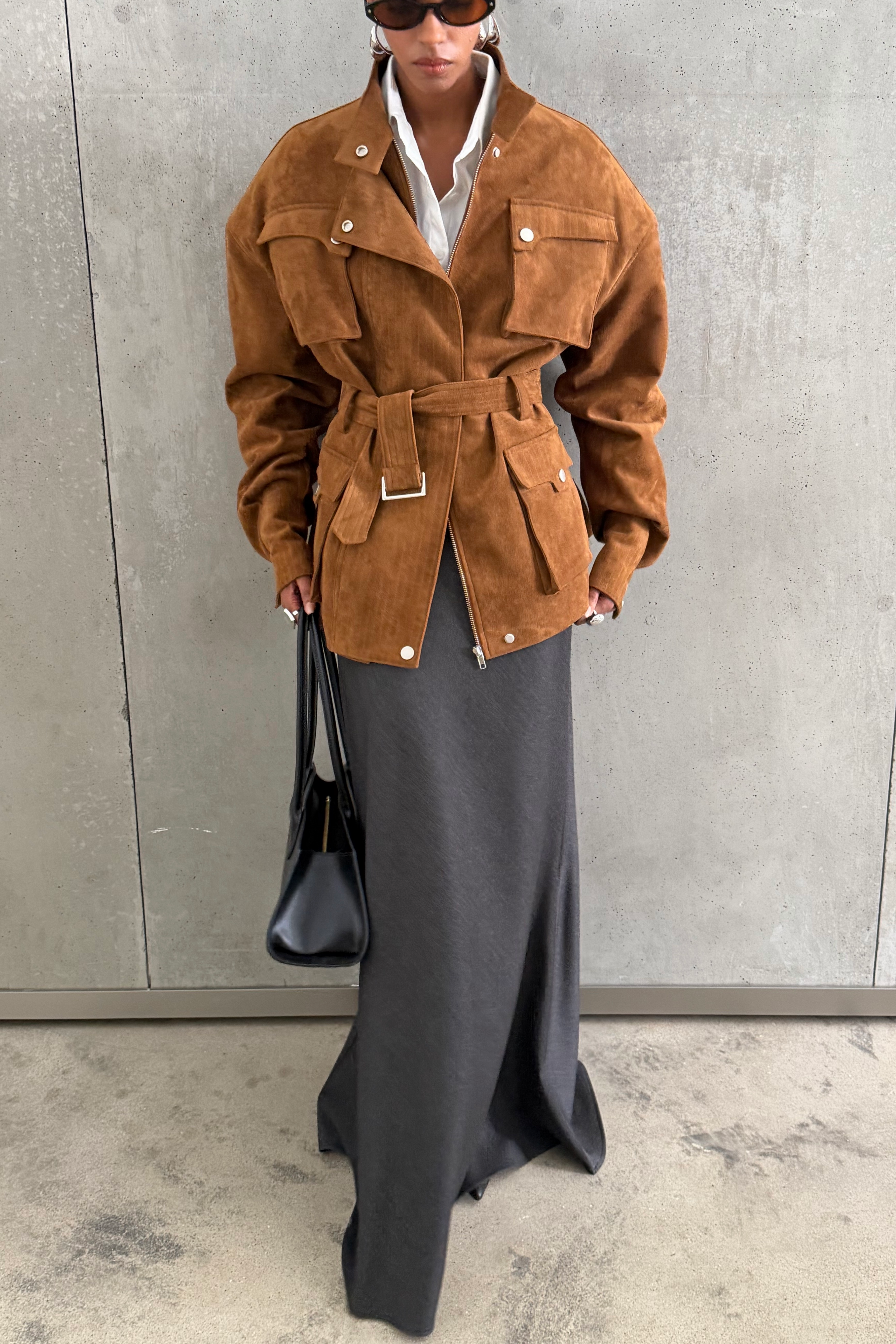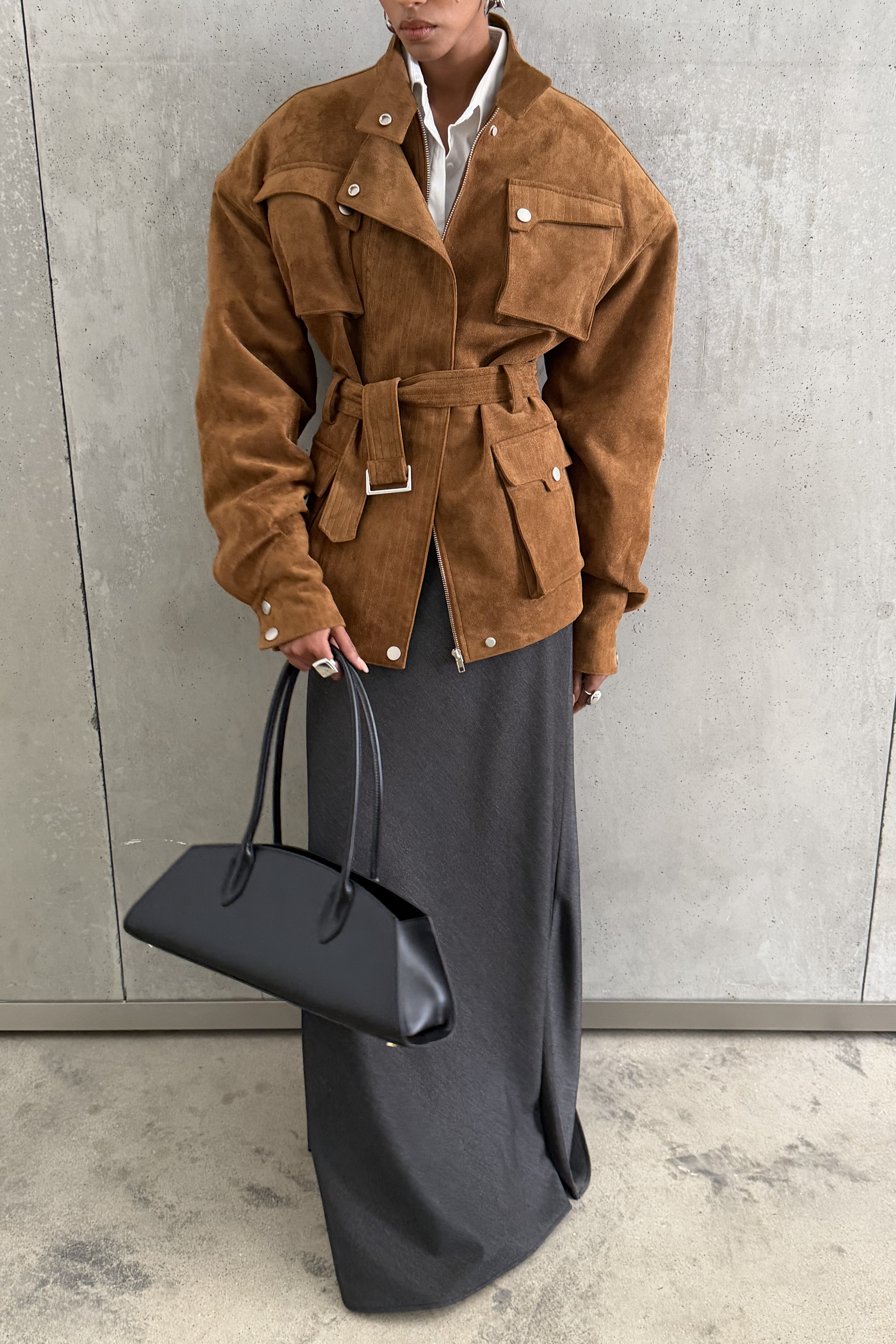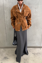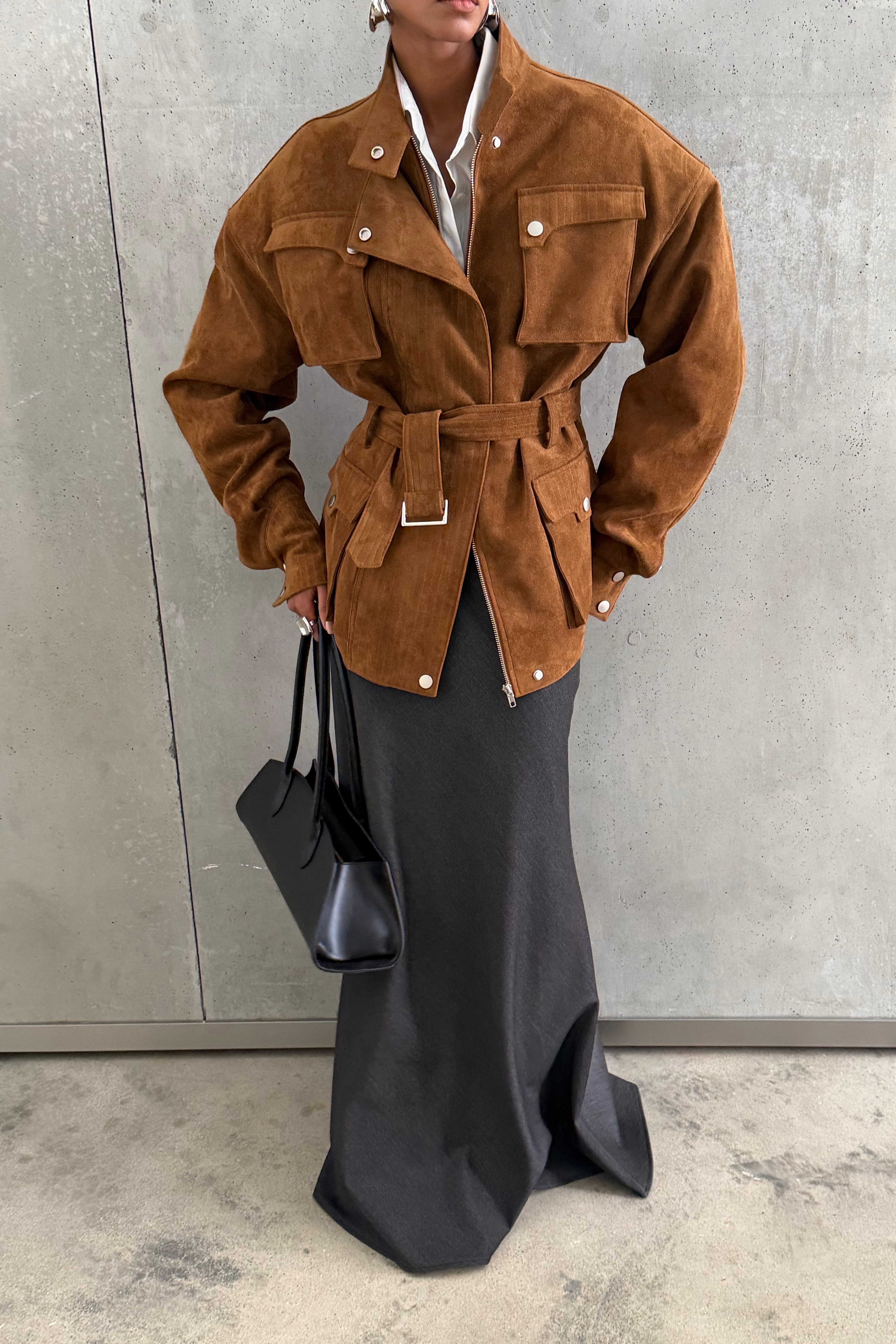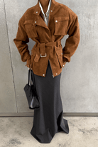 Savannah Brown Faux-Suede Stand Up Lapels Jacket