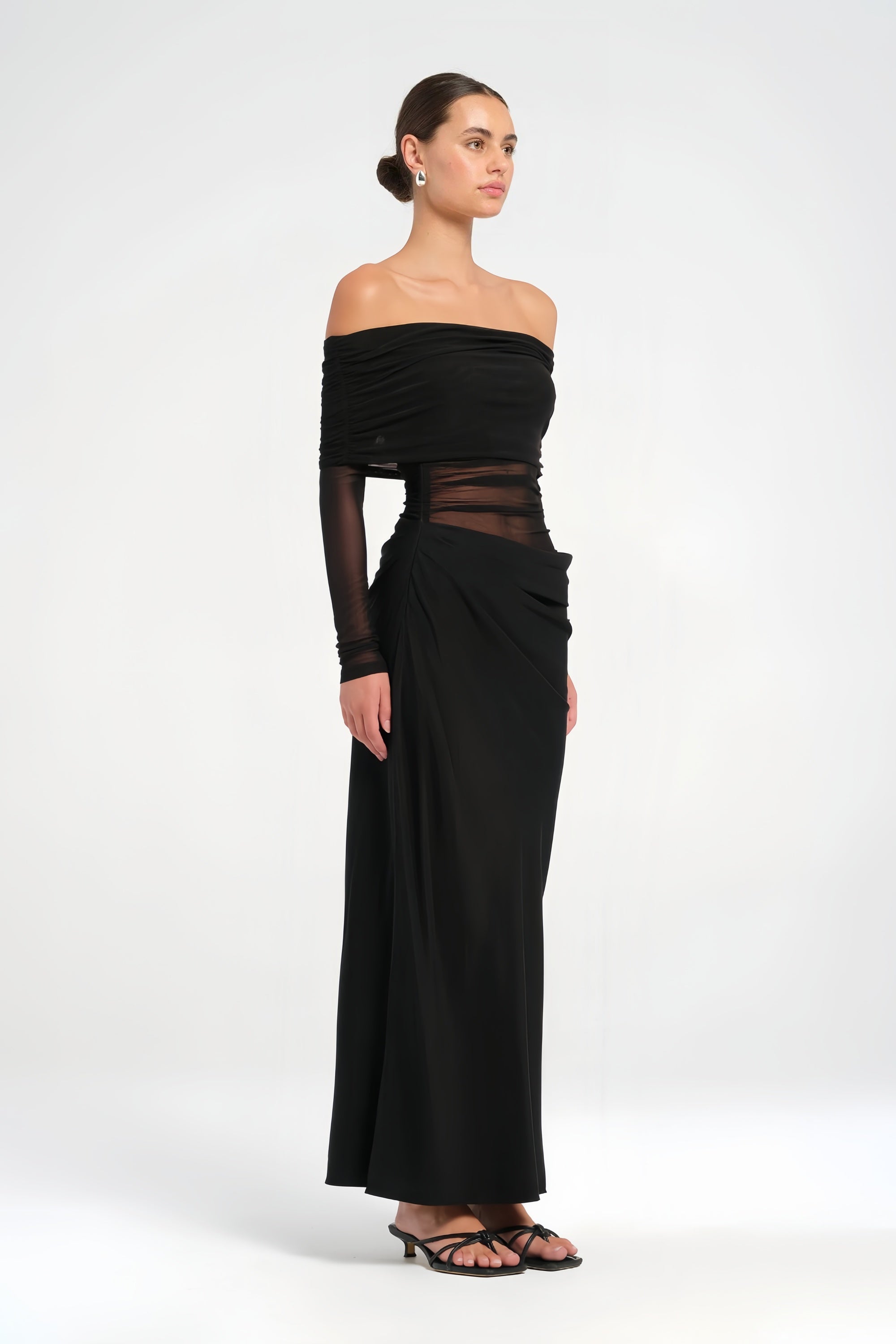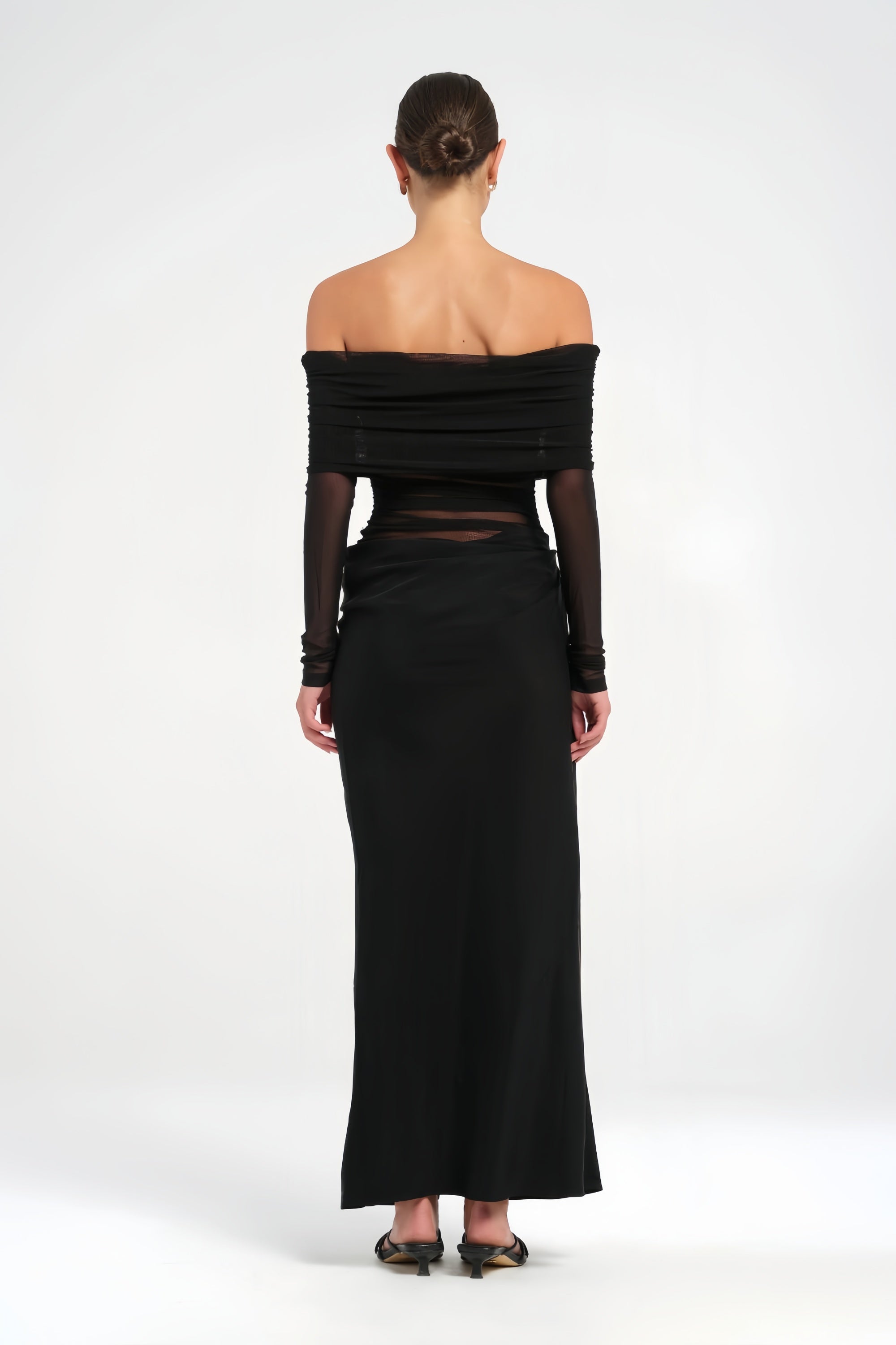 Estelle Black Off-shoulder Semi-sheer Midi Dress