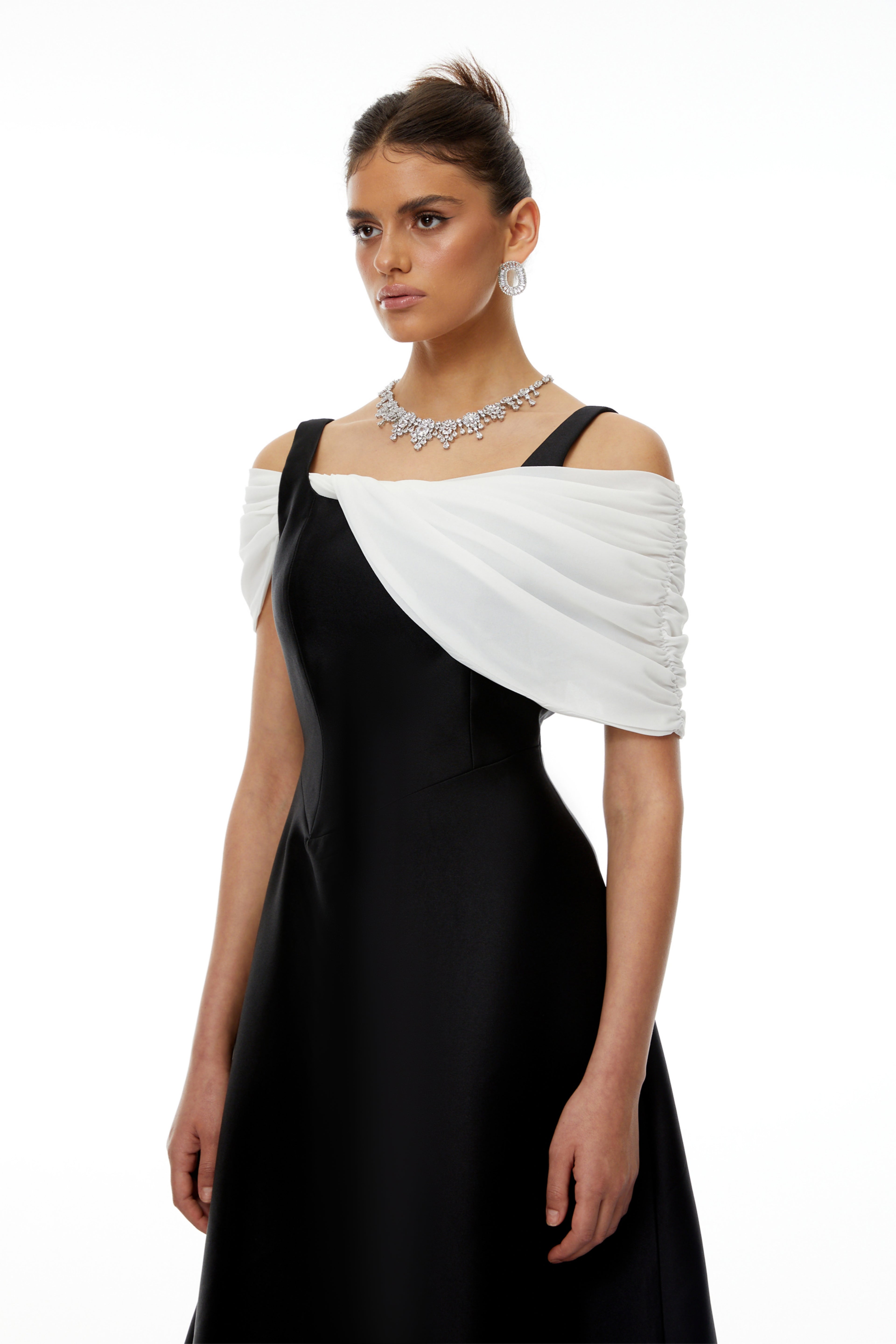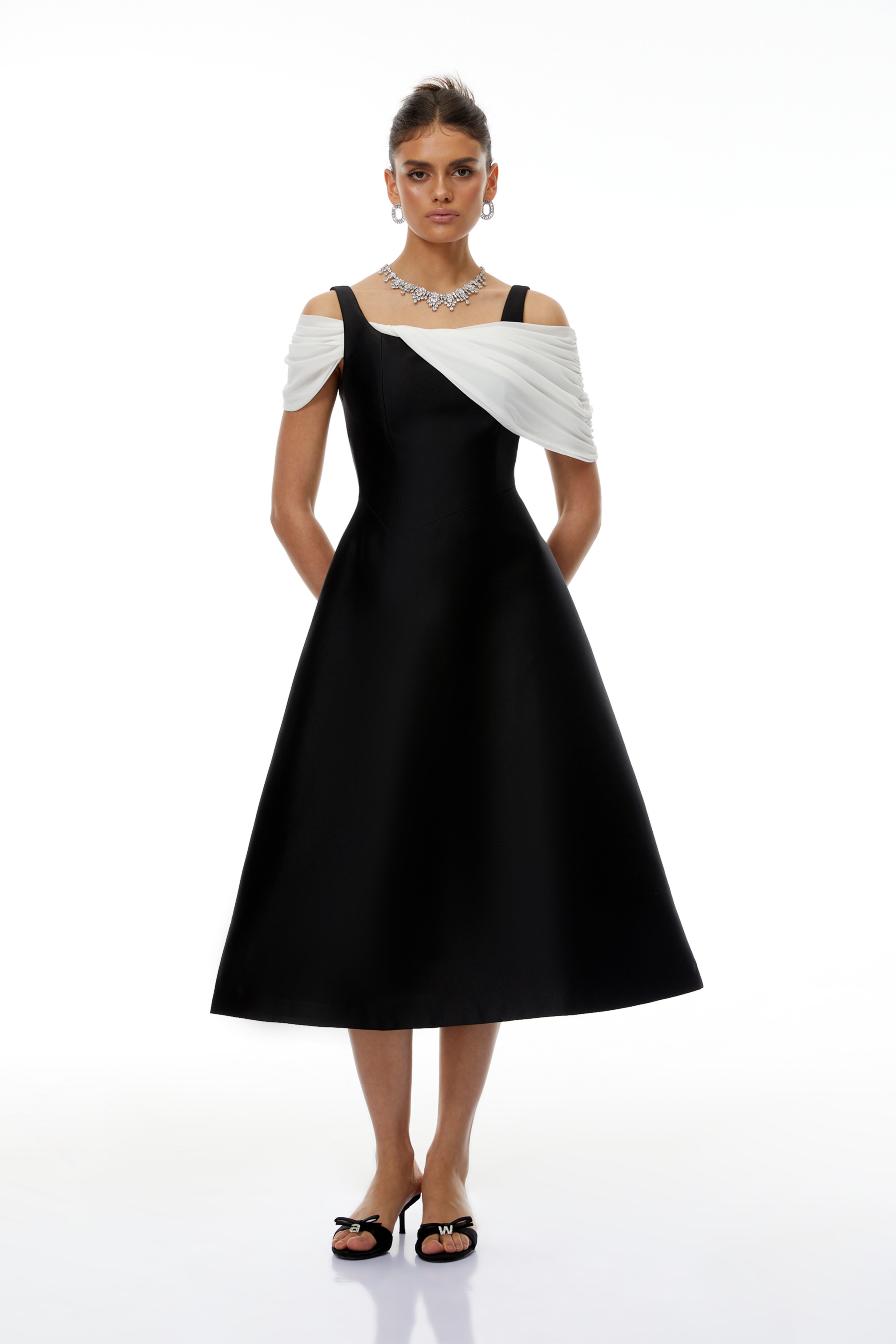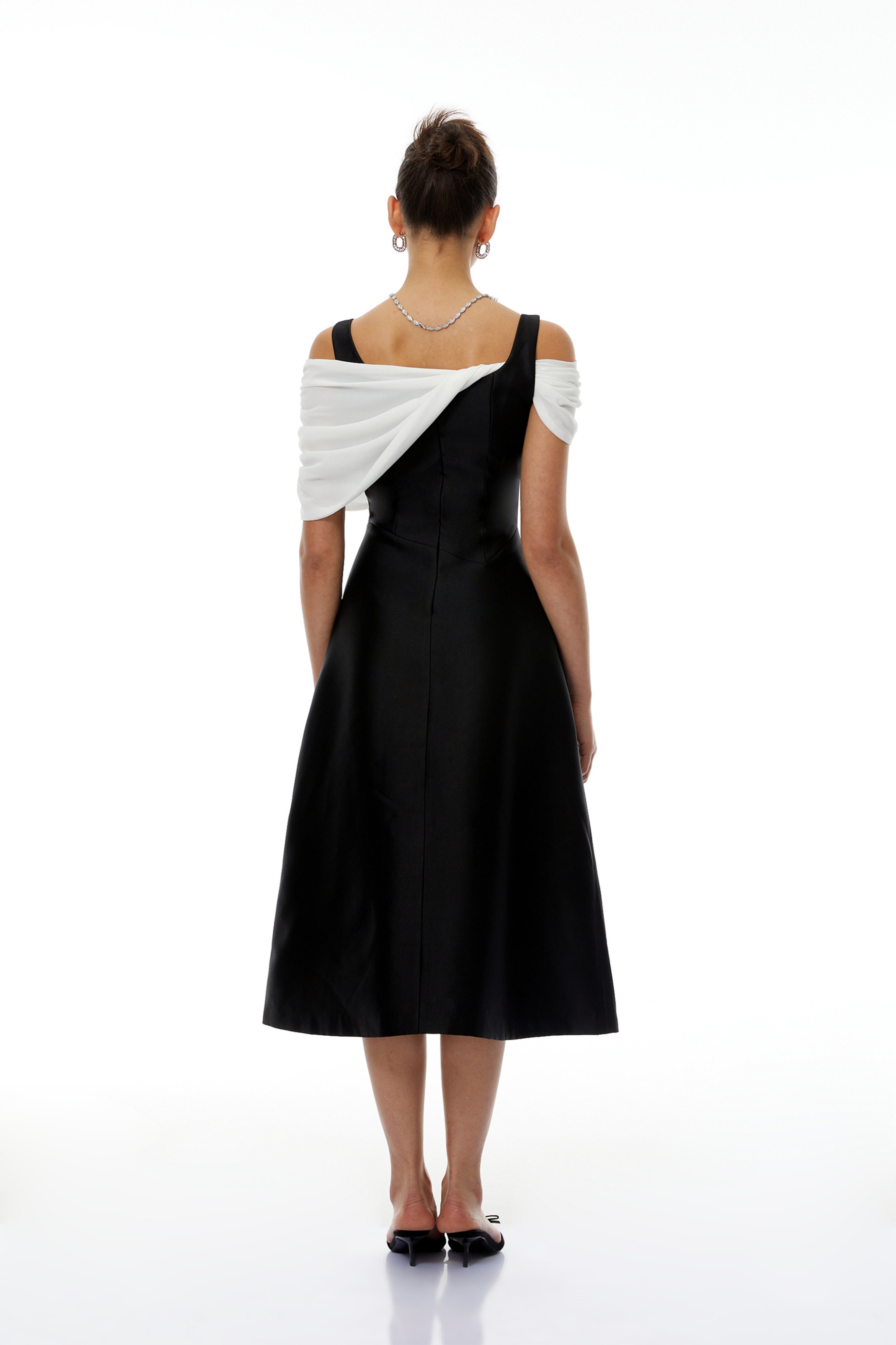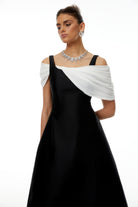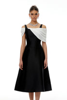 Flair Color Block Asymmetrical Off Shoulder Midi Dress
