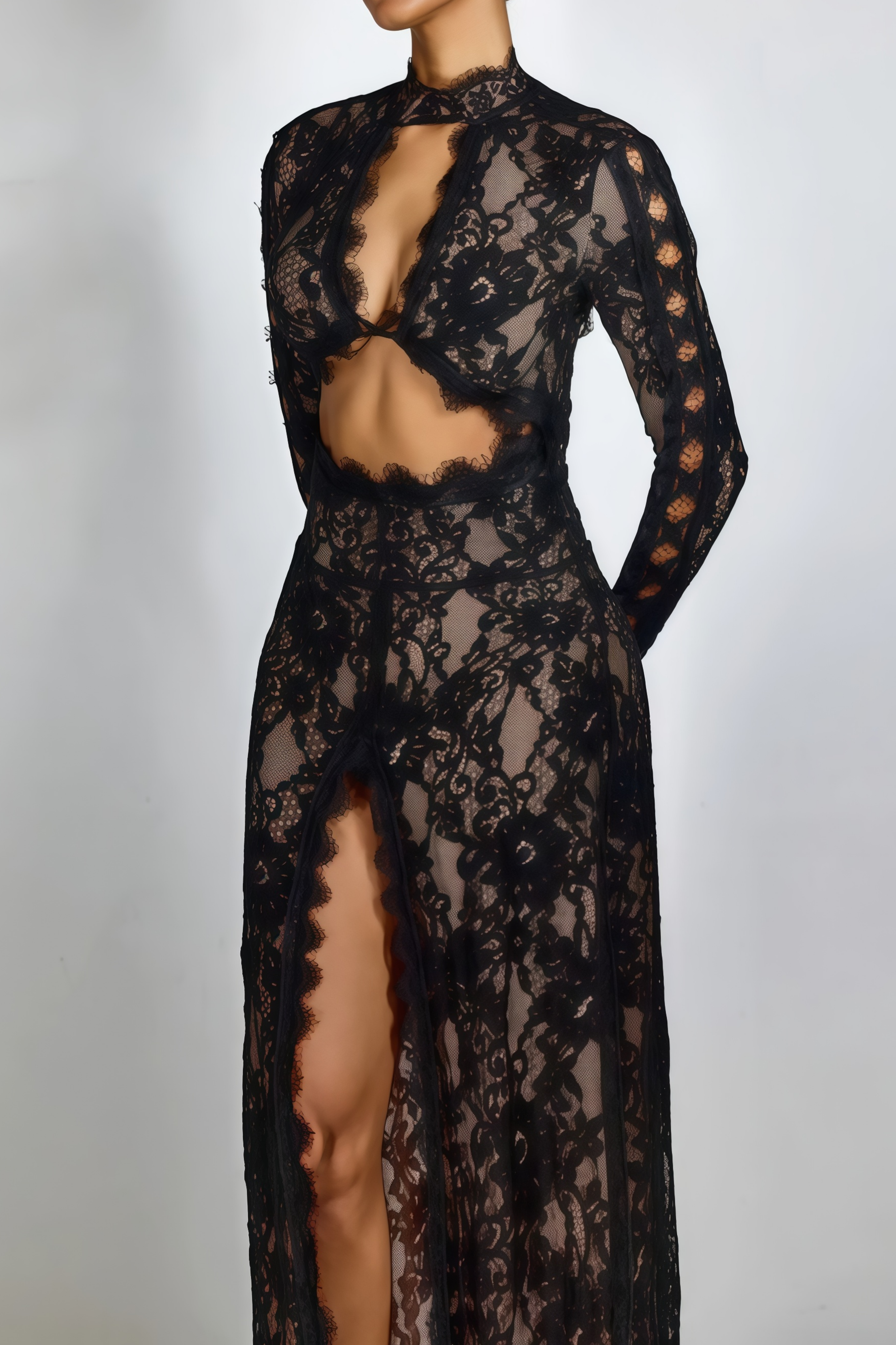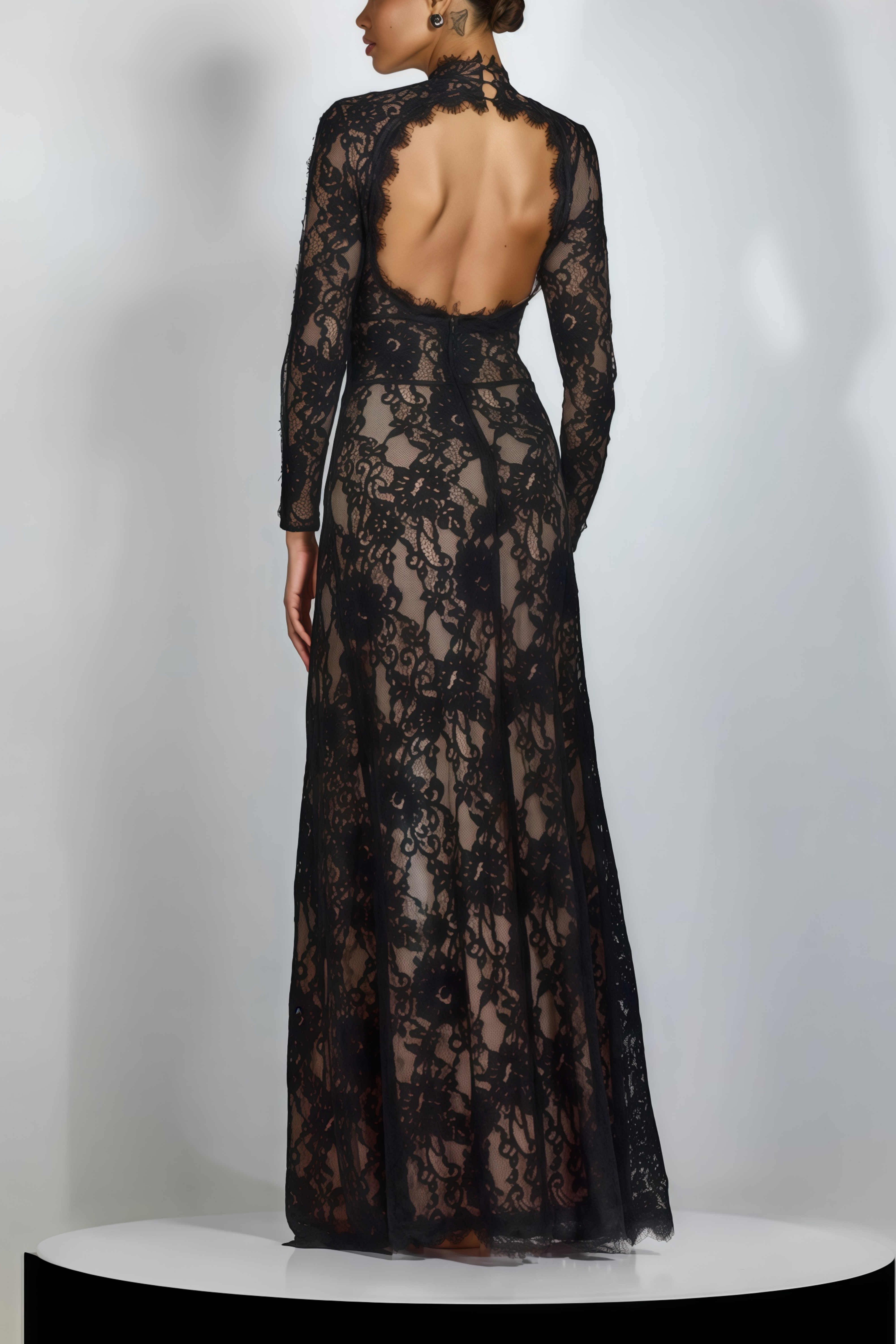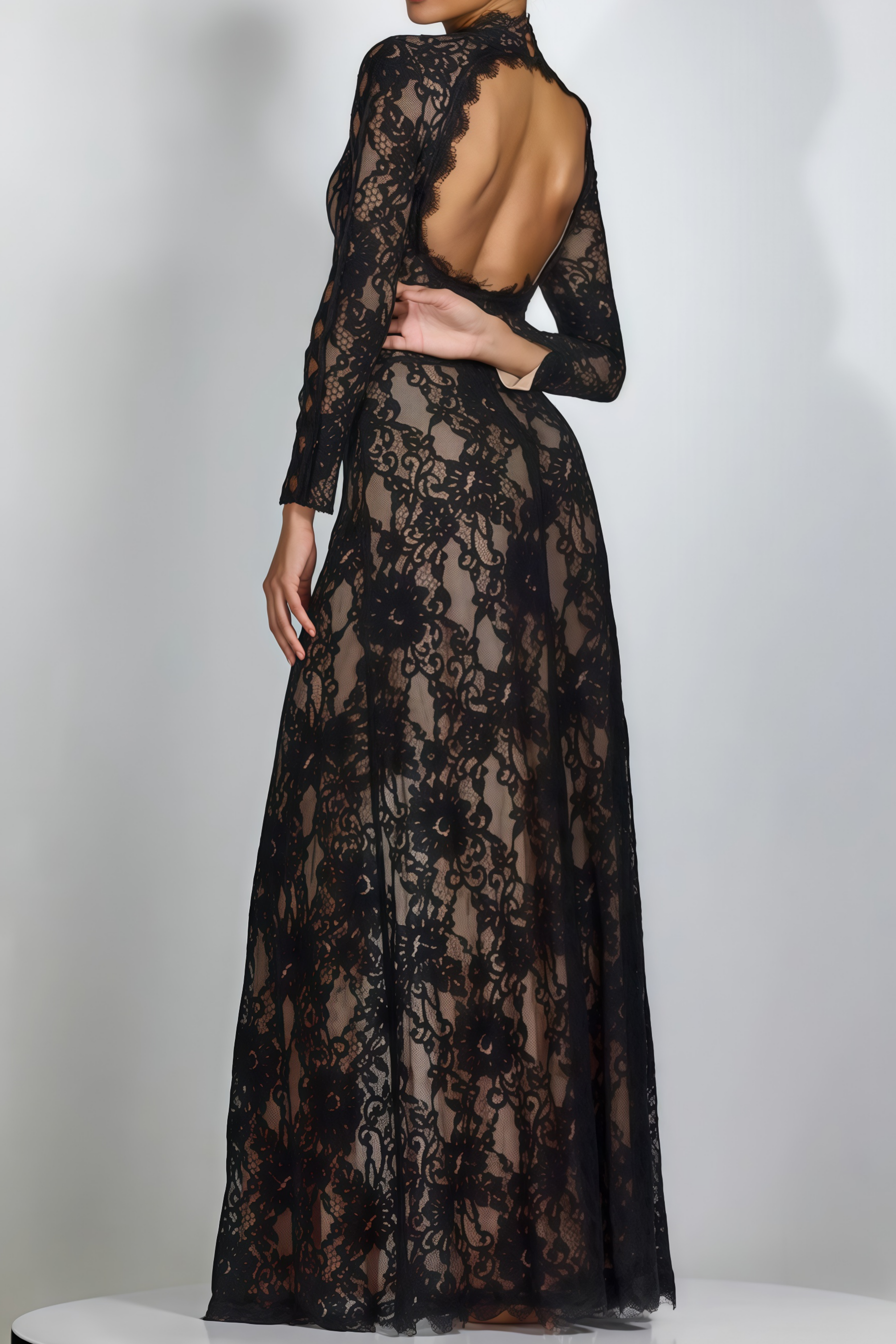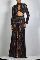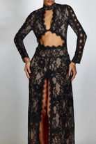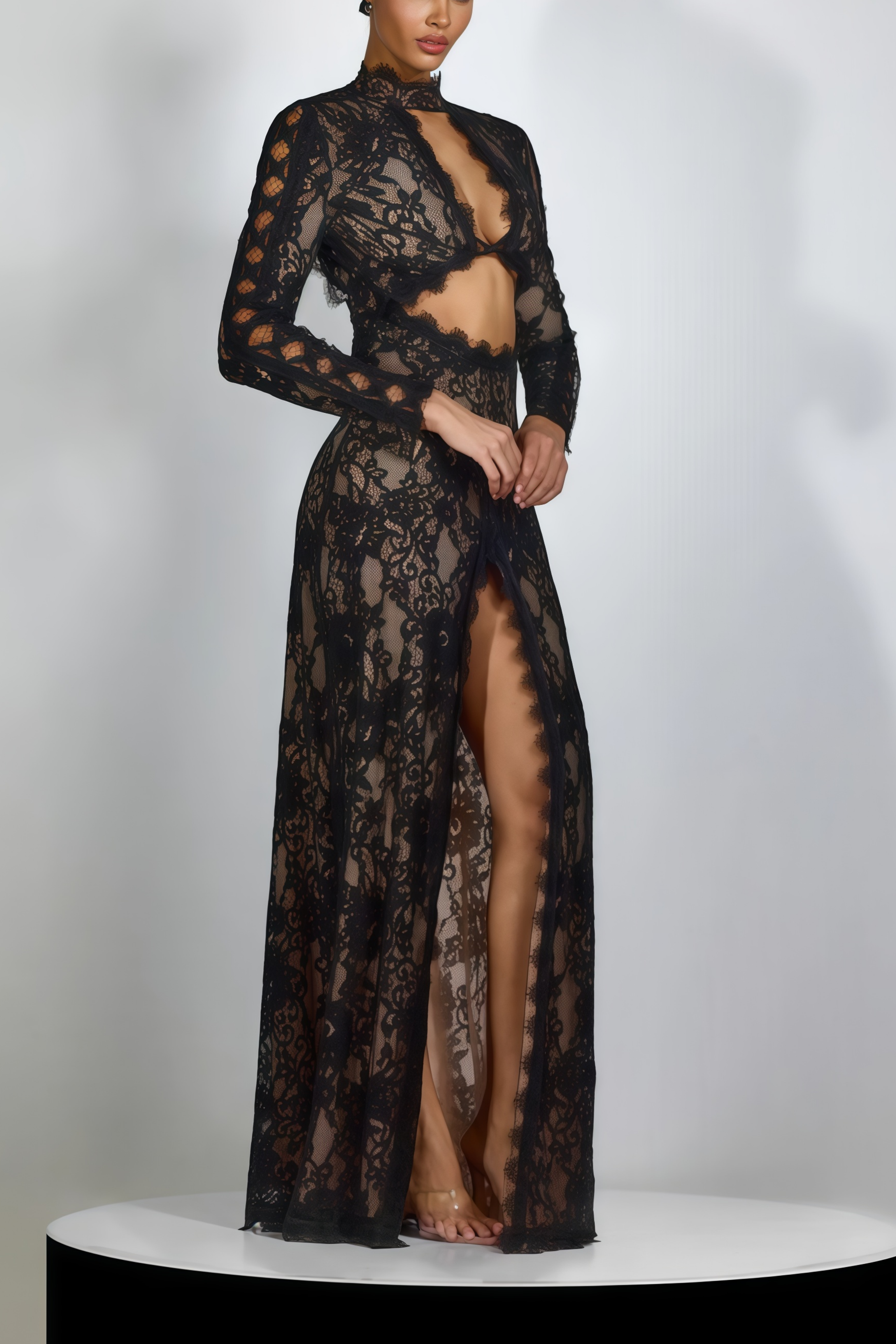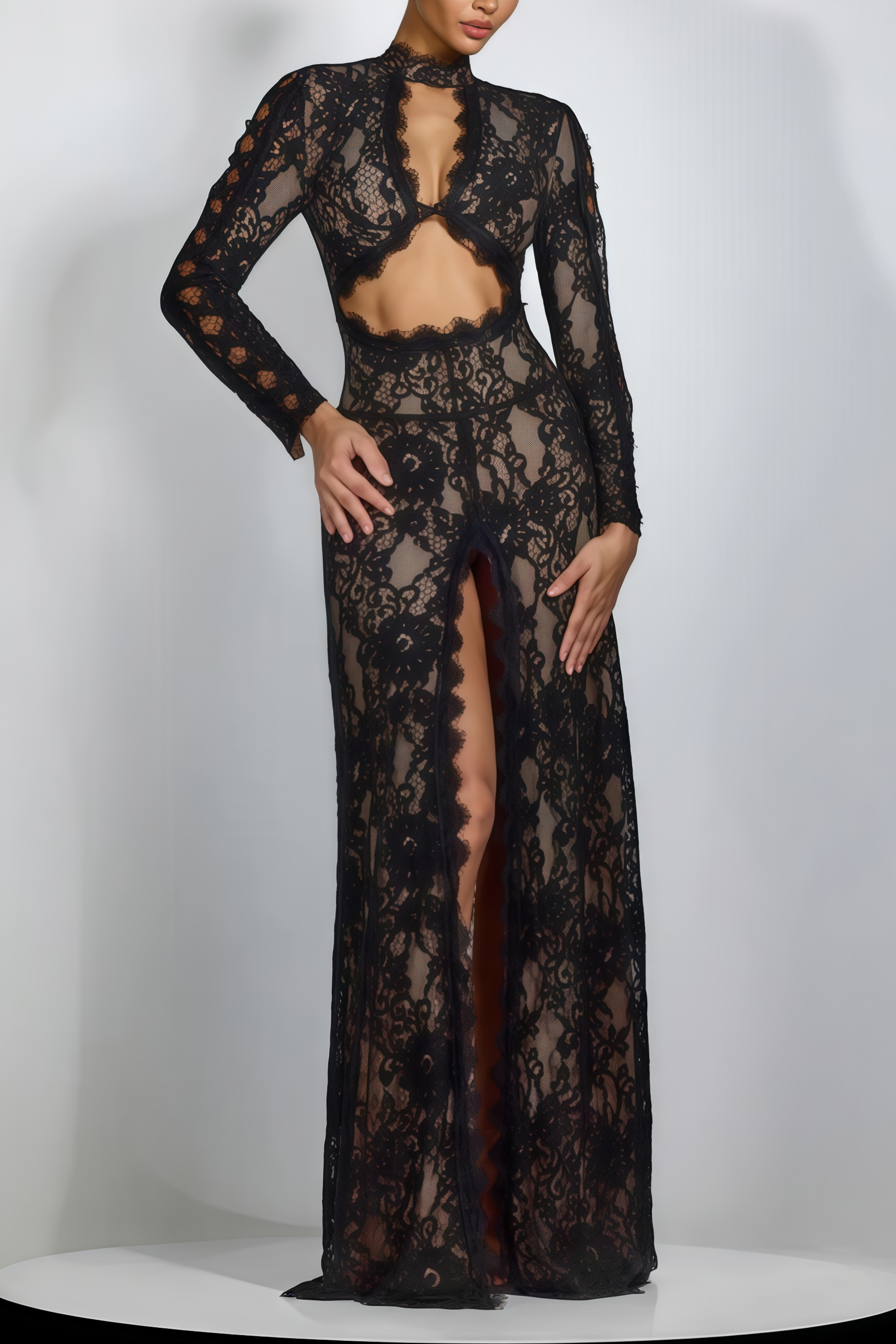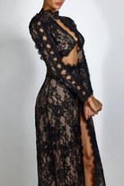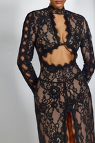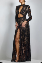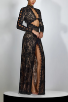 Lindsay Black Cut Out Floral Lace Maxi Dress