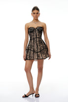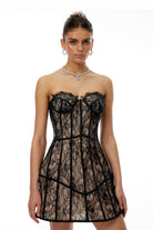 Mamie Black Off Shoulder Floral Lace Mini Dress