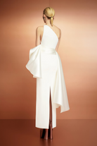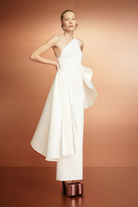 Rowena White Asymmetric Ruffle Trim Maxi Dress