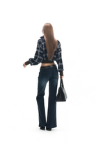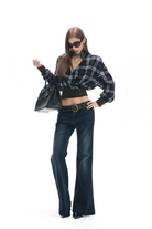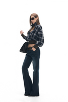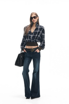 Carys Blue Navy Lapels Checked Blouse