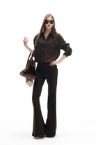 Introducing the Lyra Brown Lapels Blouse, a must-have addition to your wardrobe. This coat features rich brown lapels and a solid-color design. With its long sleeves, two patch pockets and single-breasted button fastening, it offers an oversized yet flattering midi-length silhouette. Elevate your style with this elegant and versatile coat.