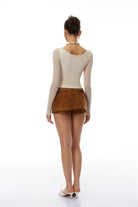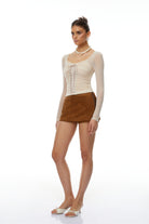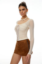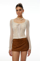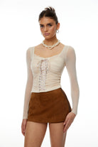 Eunice Beige Ruched Lace Up Ruched Top