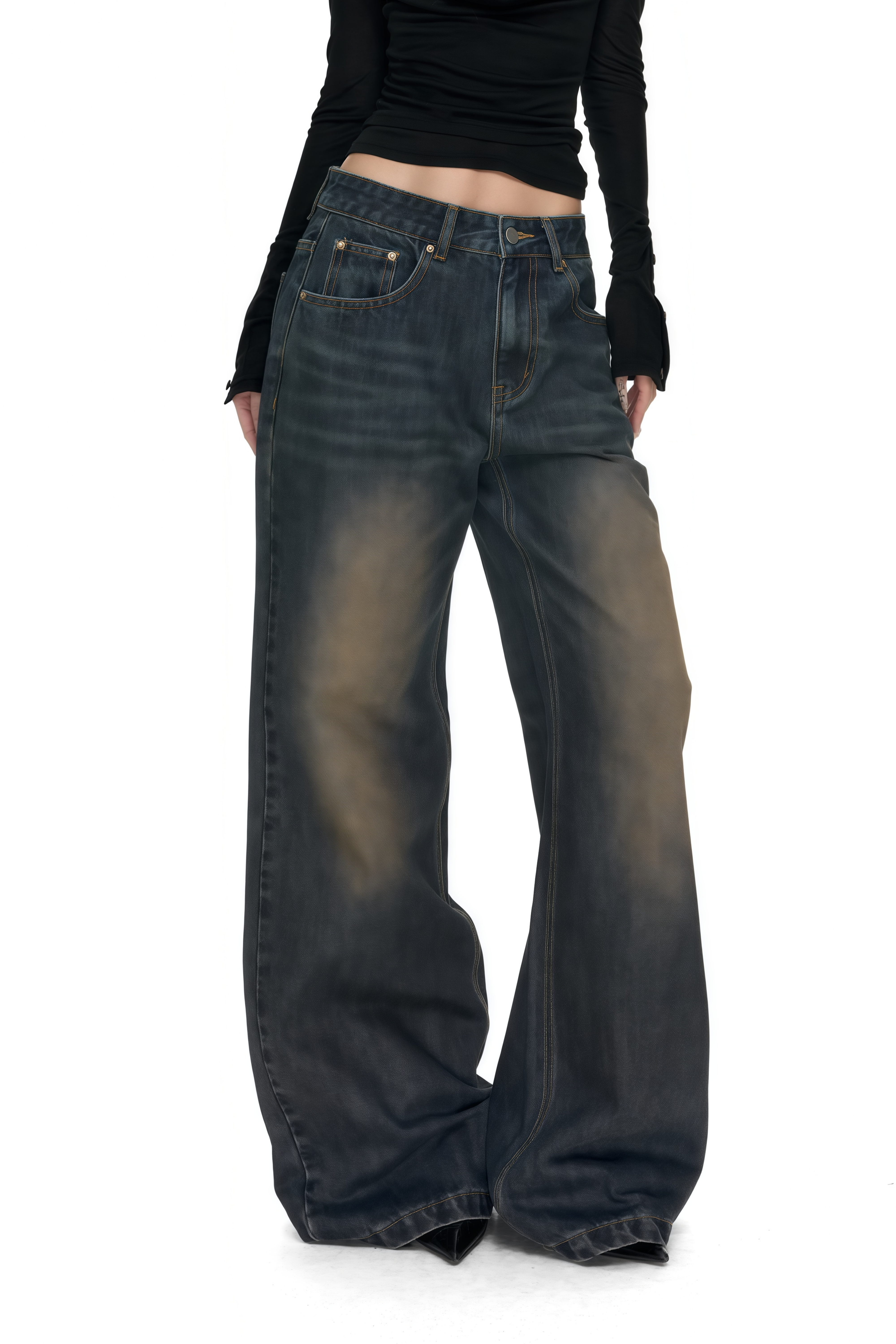 Maren Blue Navy Flared Denim Trousers