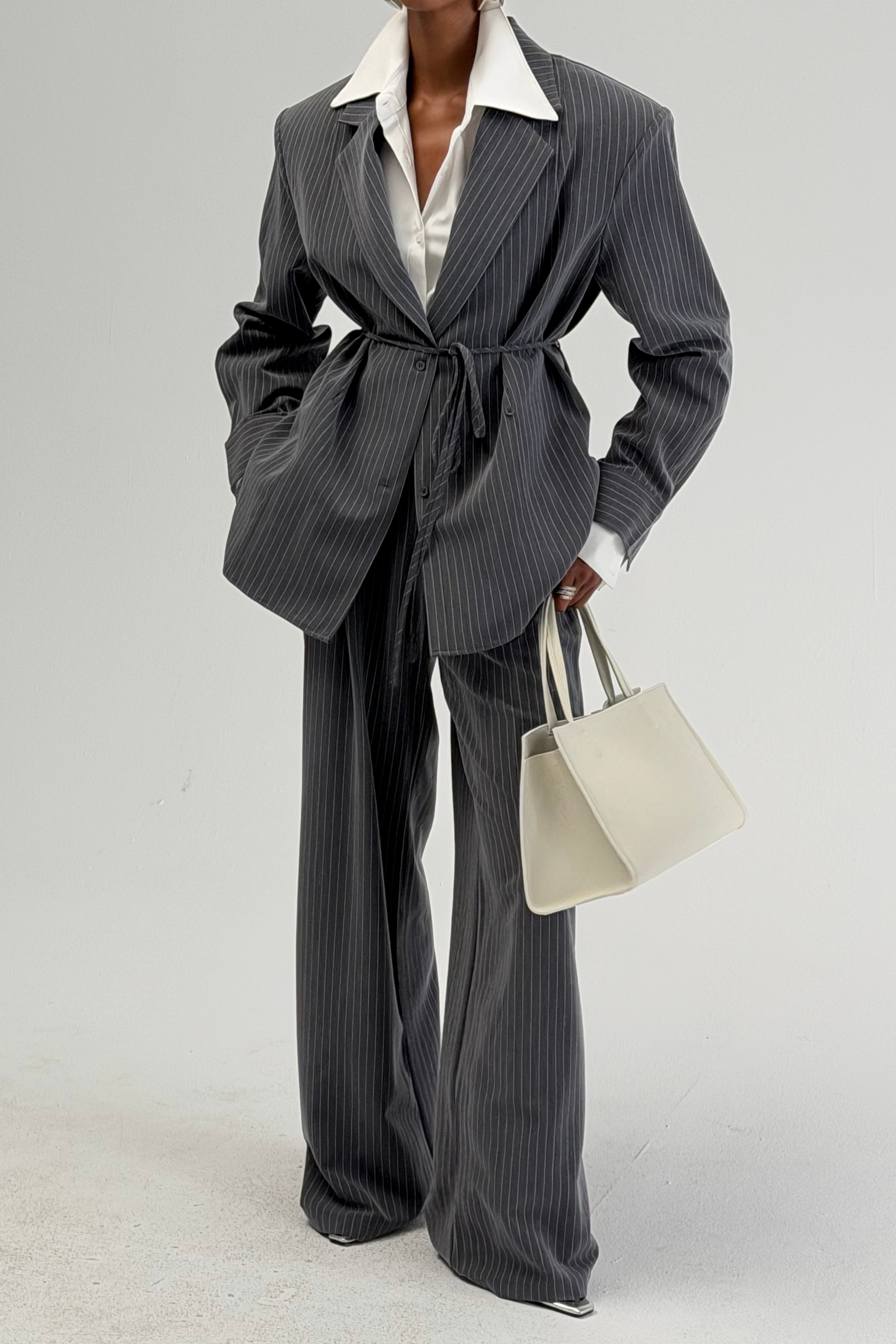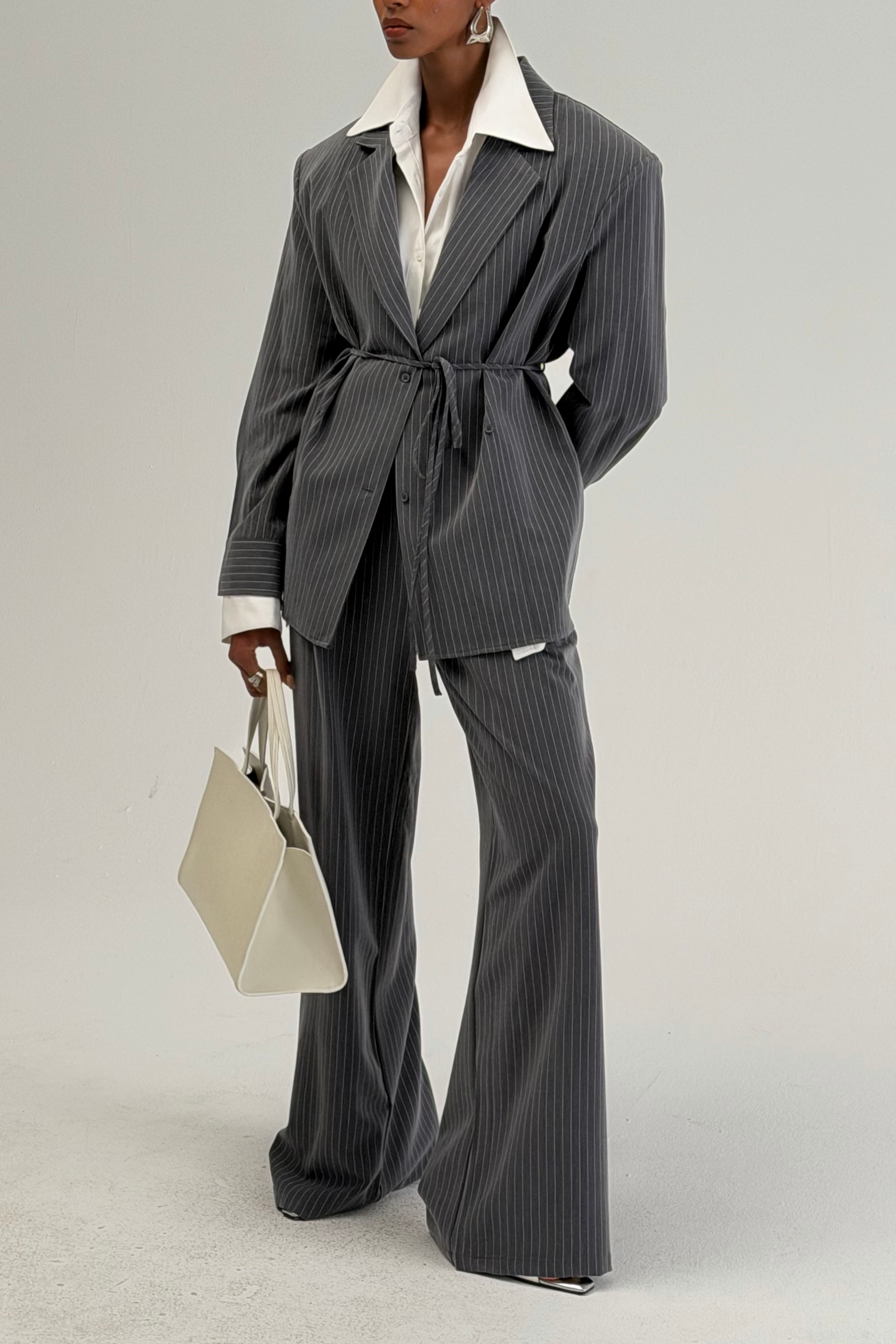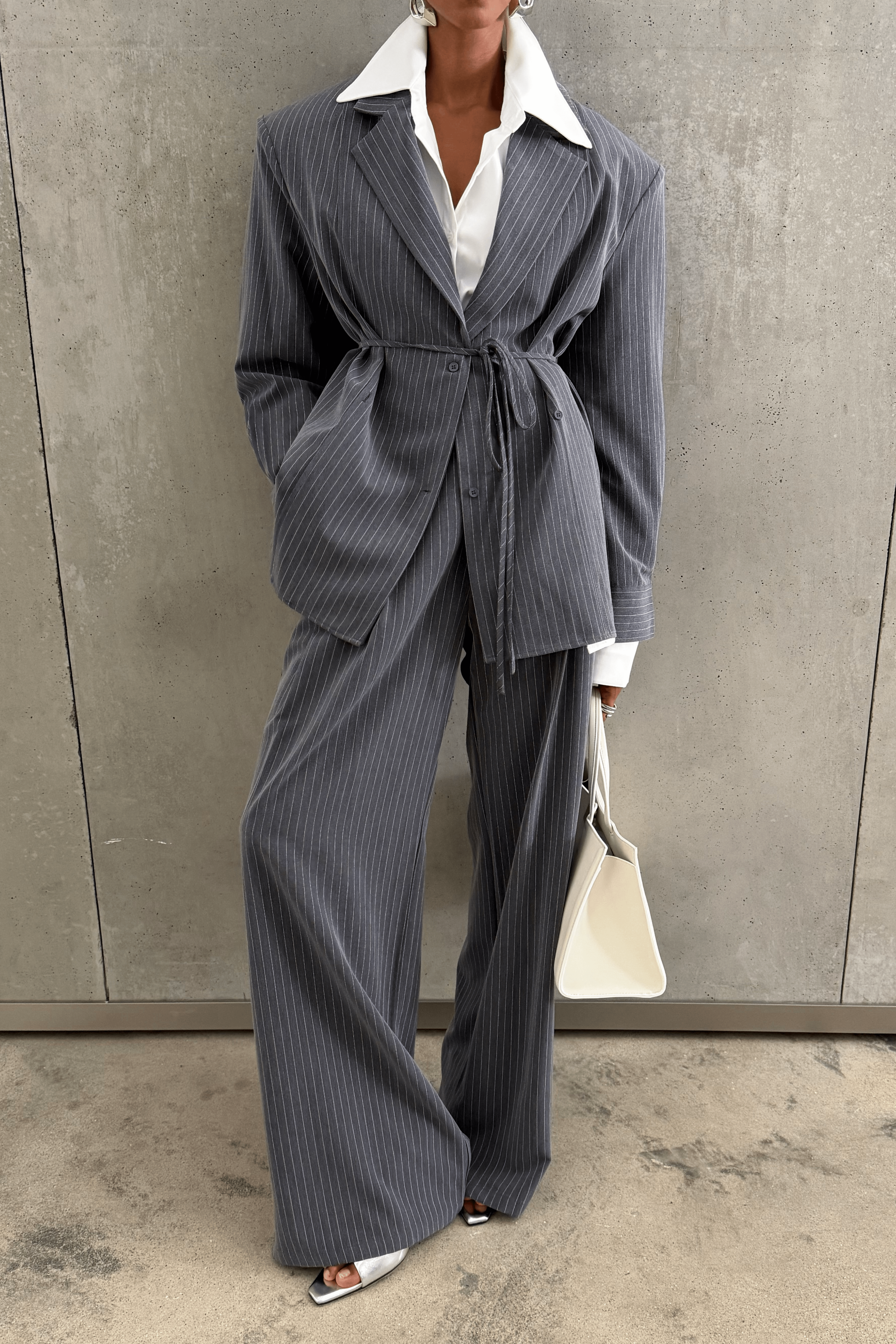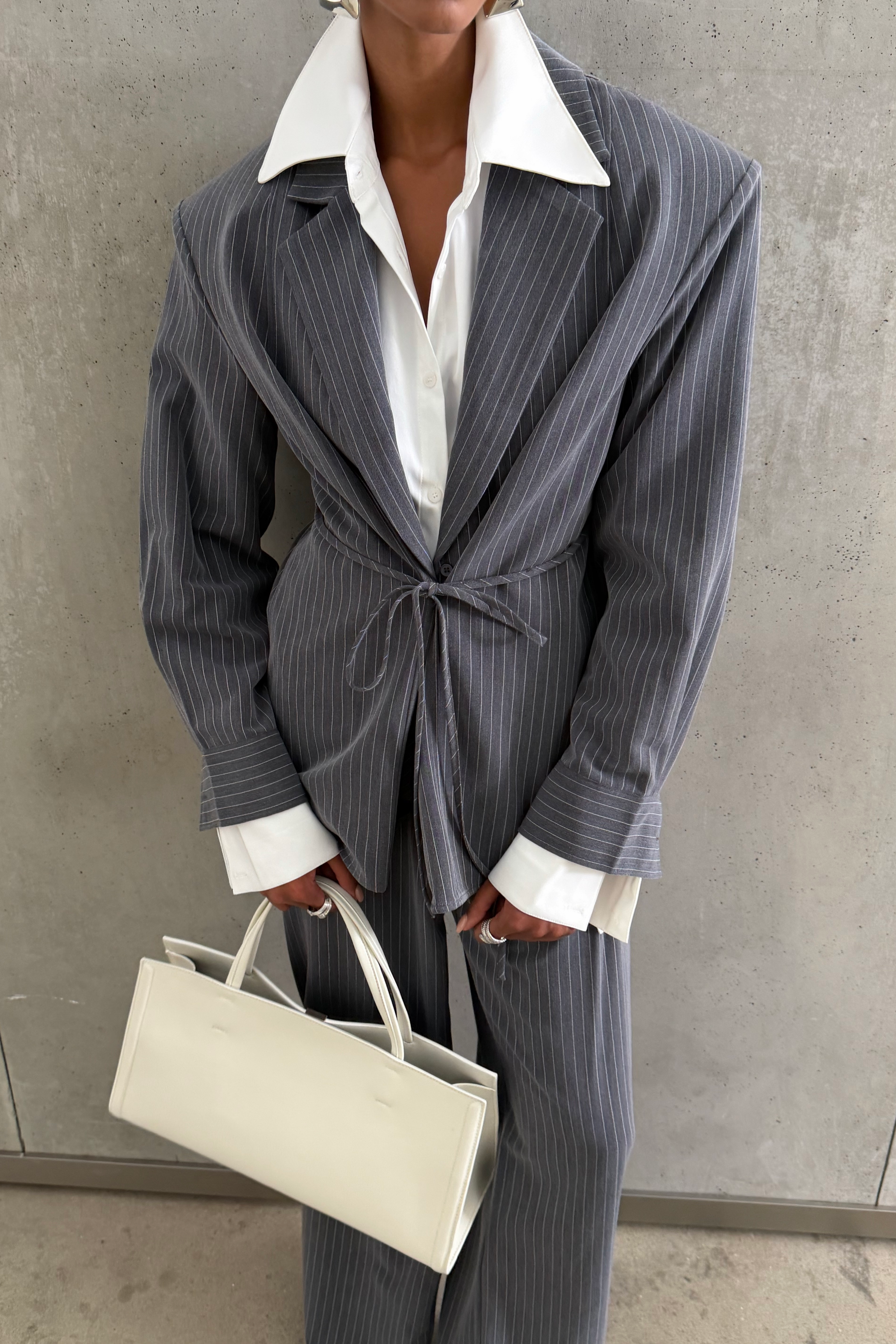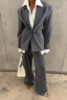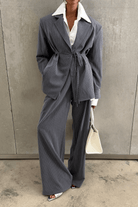 Rosemary Grey Vertical Stripes Blazer & Trousers Set