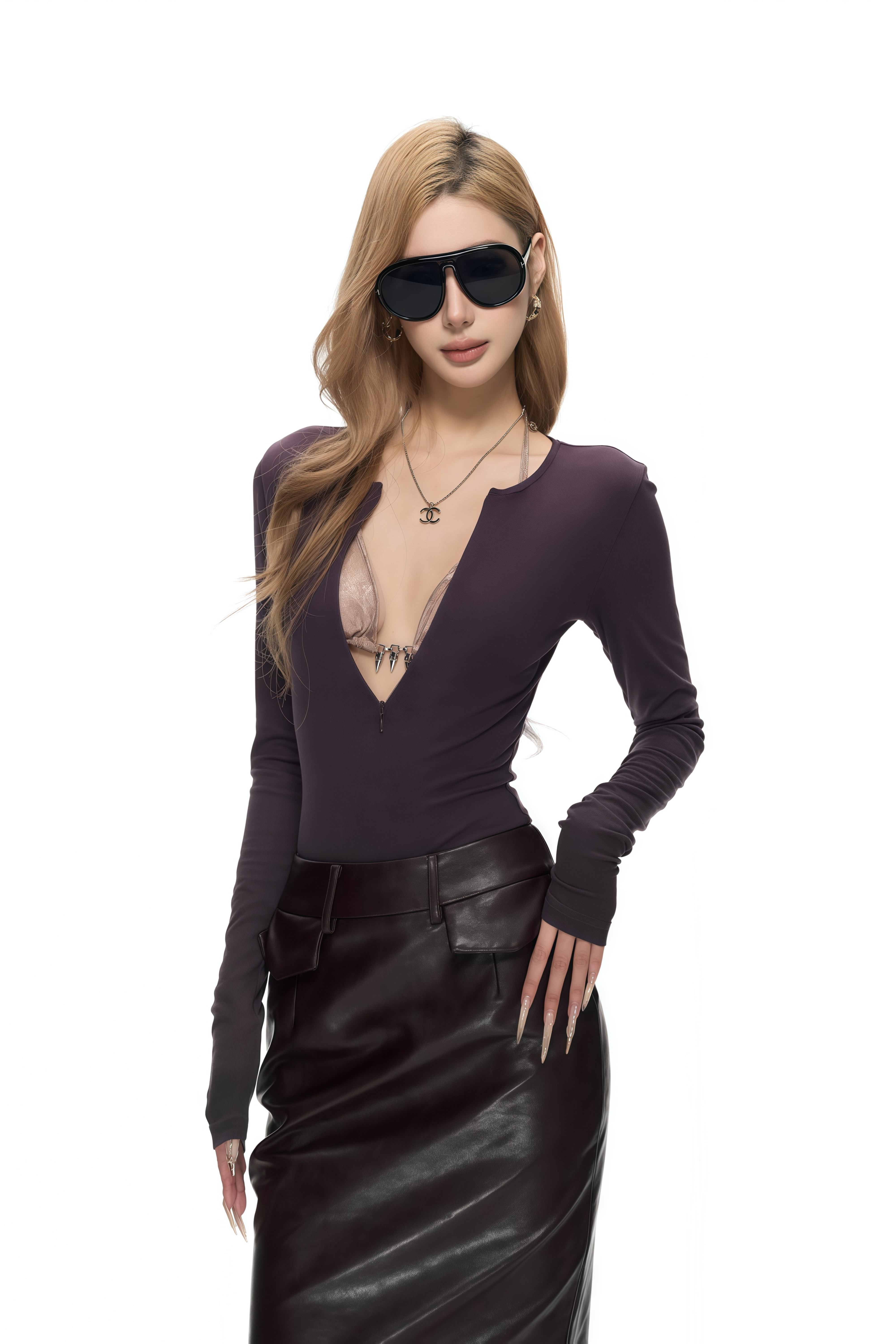 Introducing the Sage Black Faux Leather Pencil Skirt, a must-have addition to your wardrobe. This skirt features sleek black faux leather finish and solid-color sophistication. With its pencil silhouette, decorative pocket and rear zip fastening, it offers a fitted midi-length profile. Elevate your style with this elegant and versatile piece.