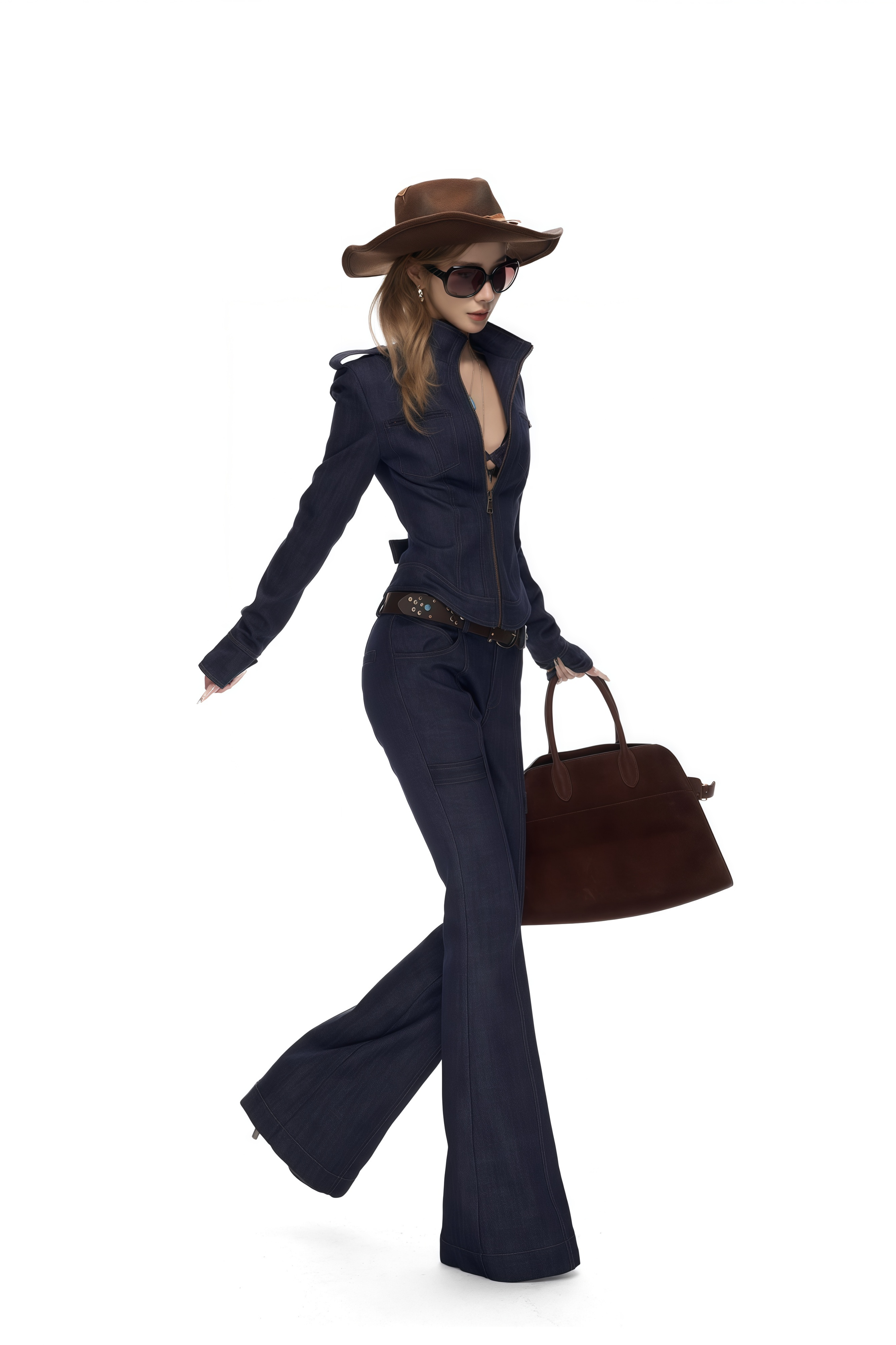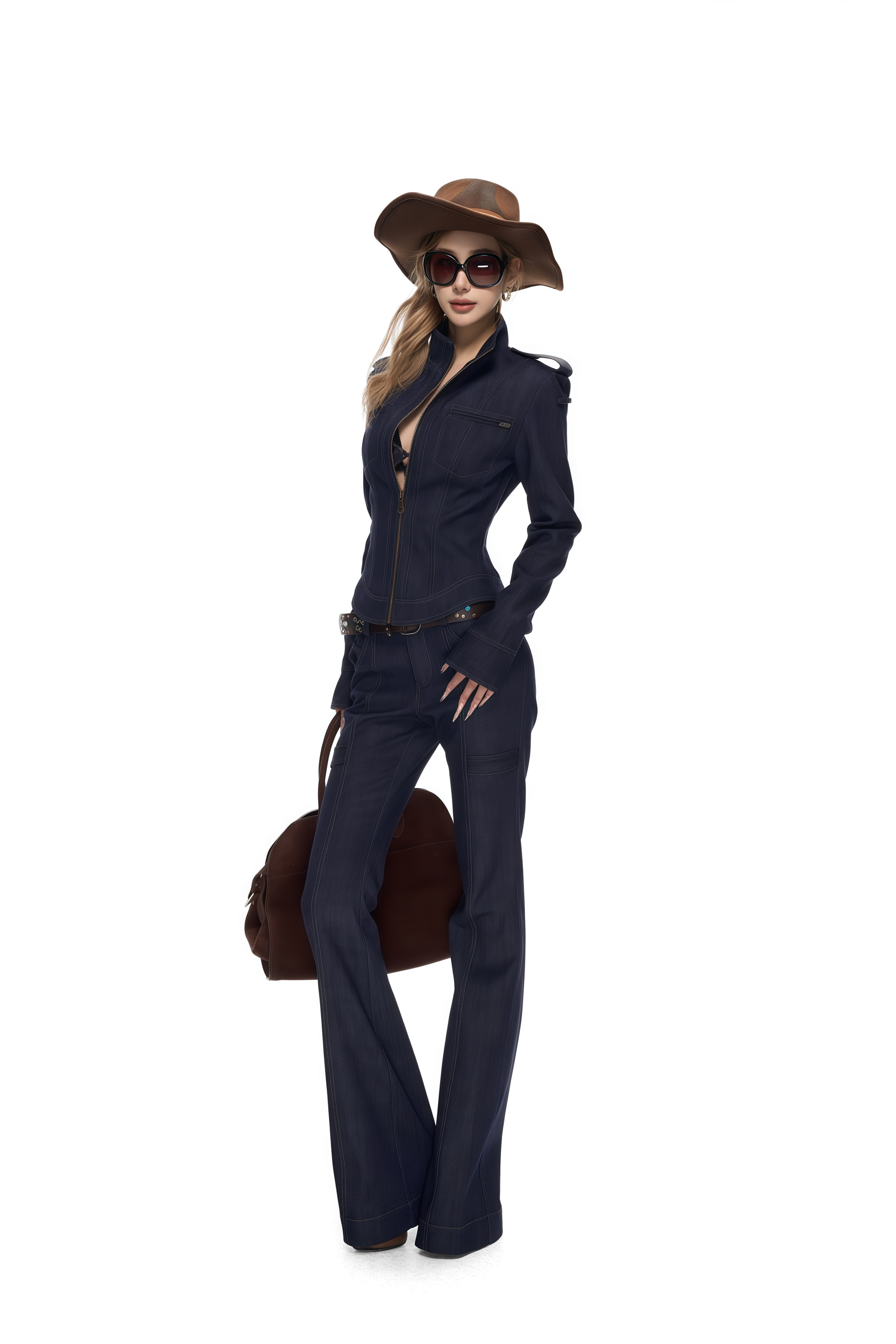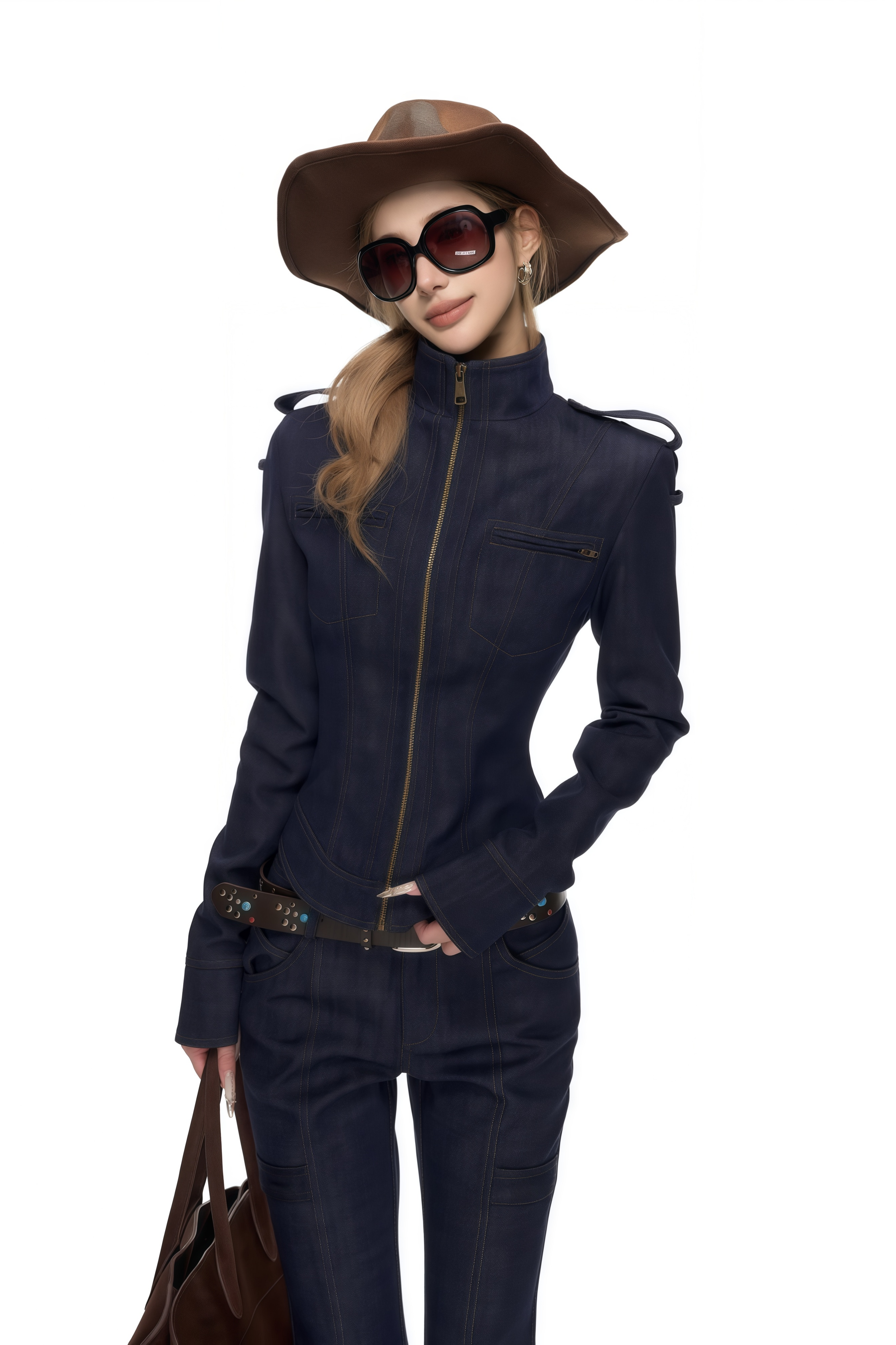 Aelin Blue Navy Stand-Up Collar Denim Jacket