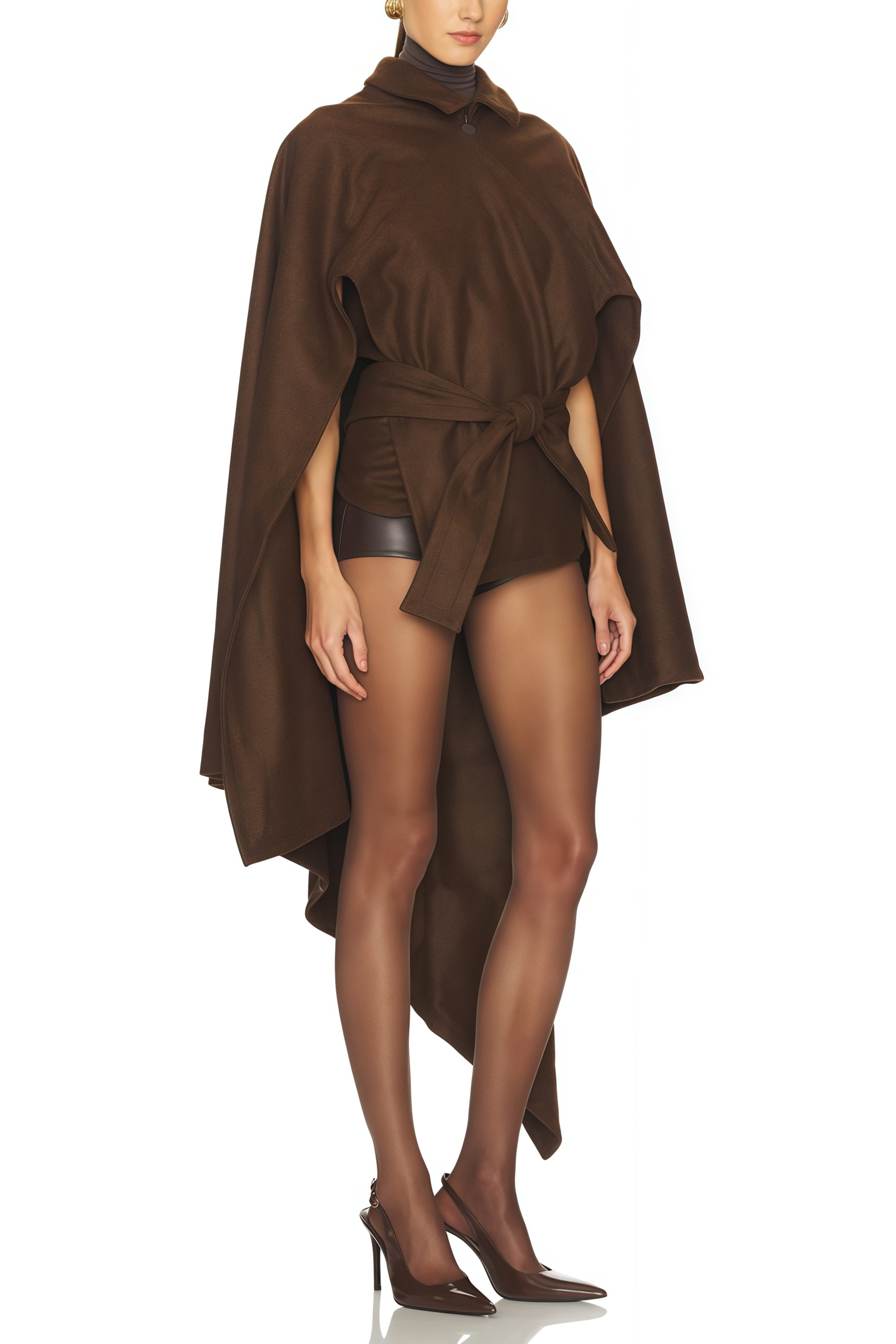 Bernice Chocolate Brown Asymmetrical Cape Coat