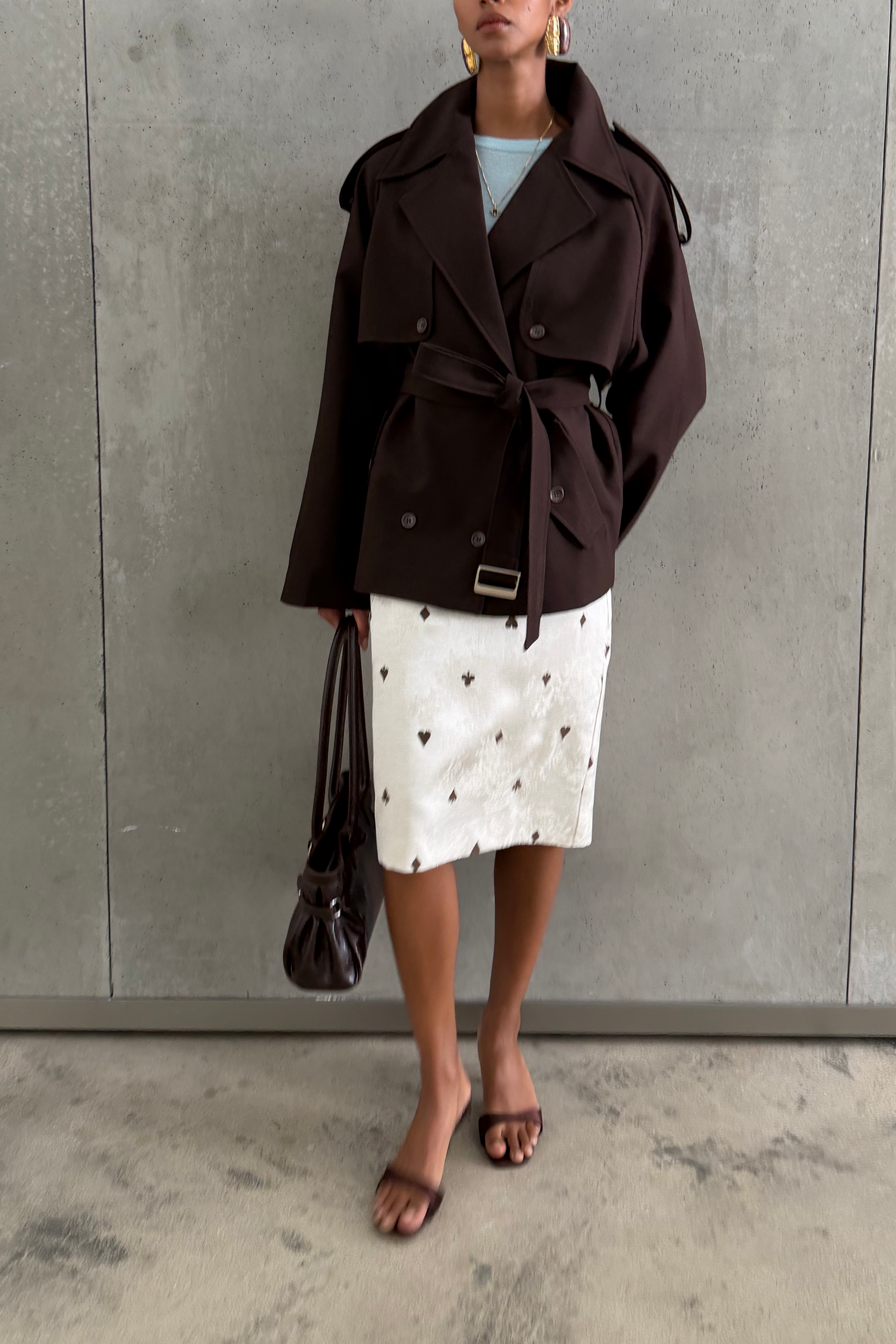Heidi Brown Folded Edge Trench Coat