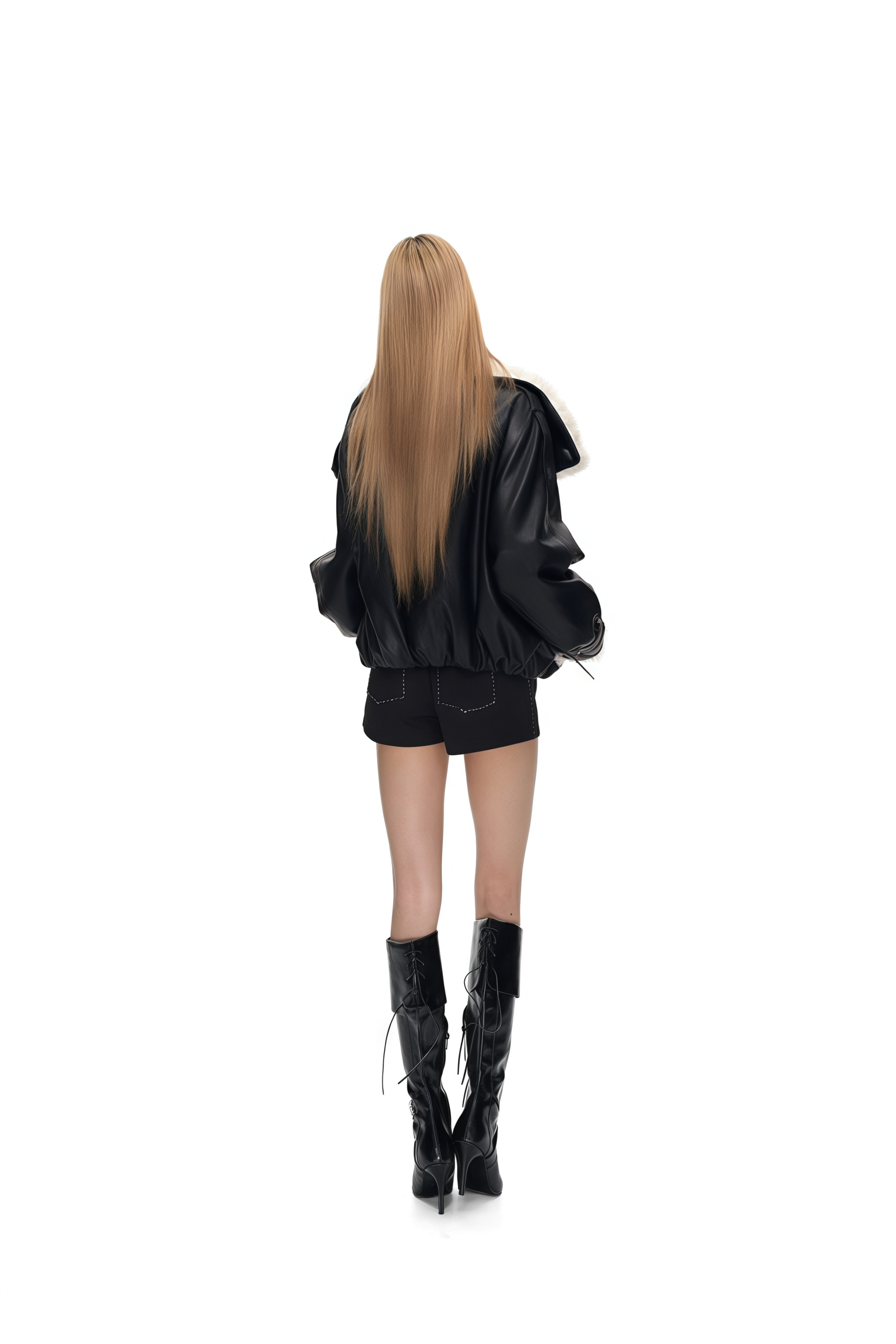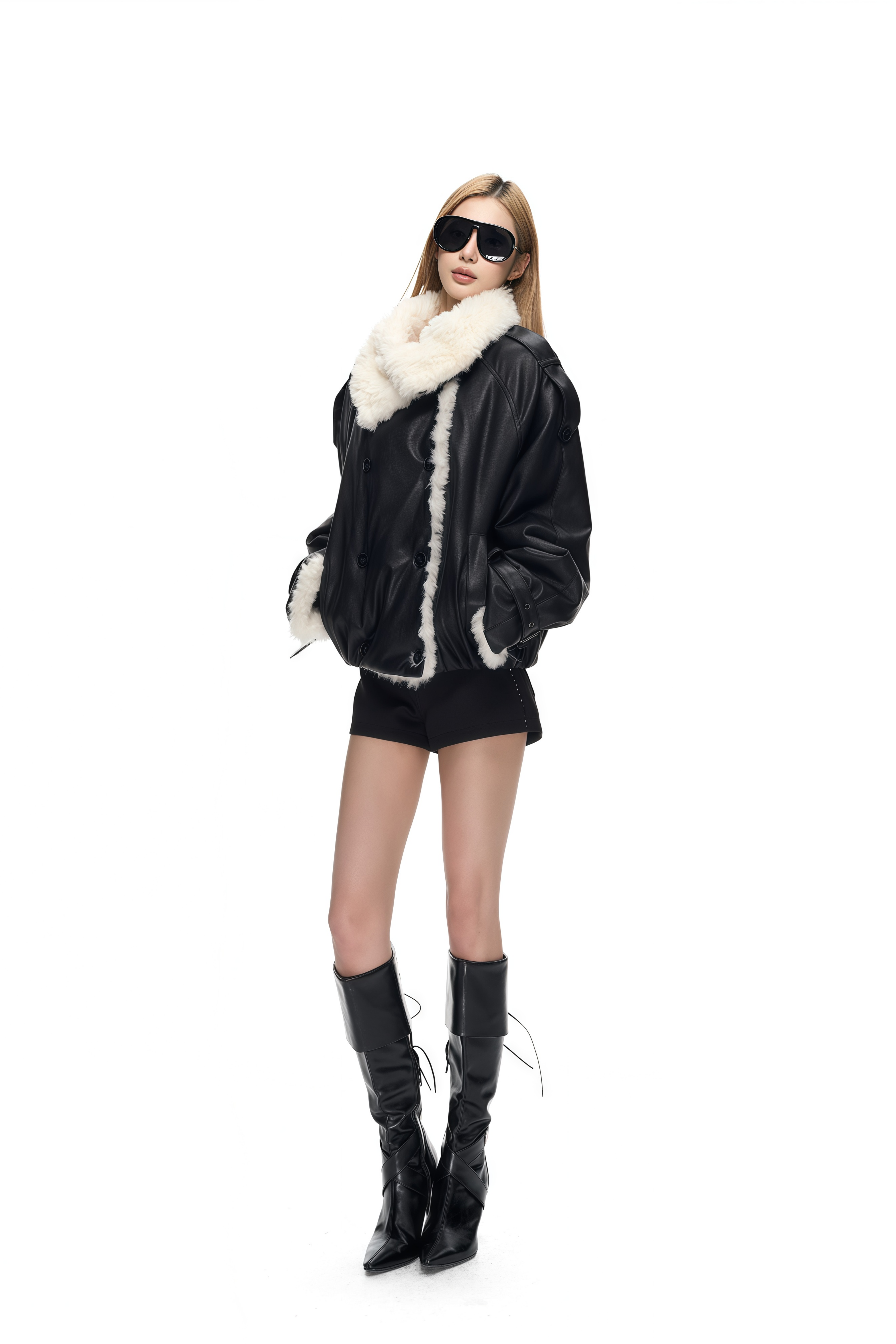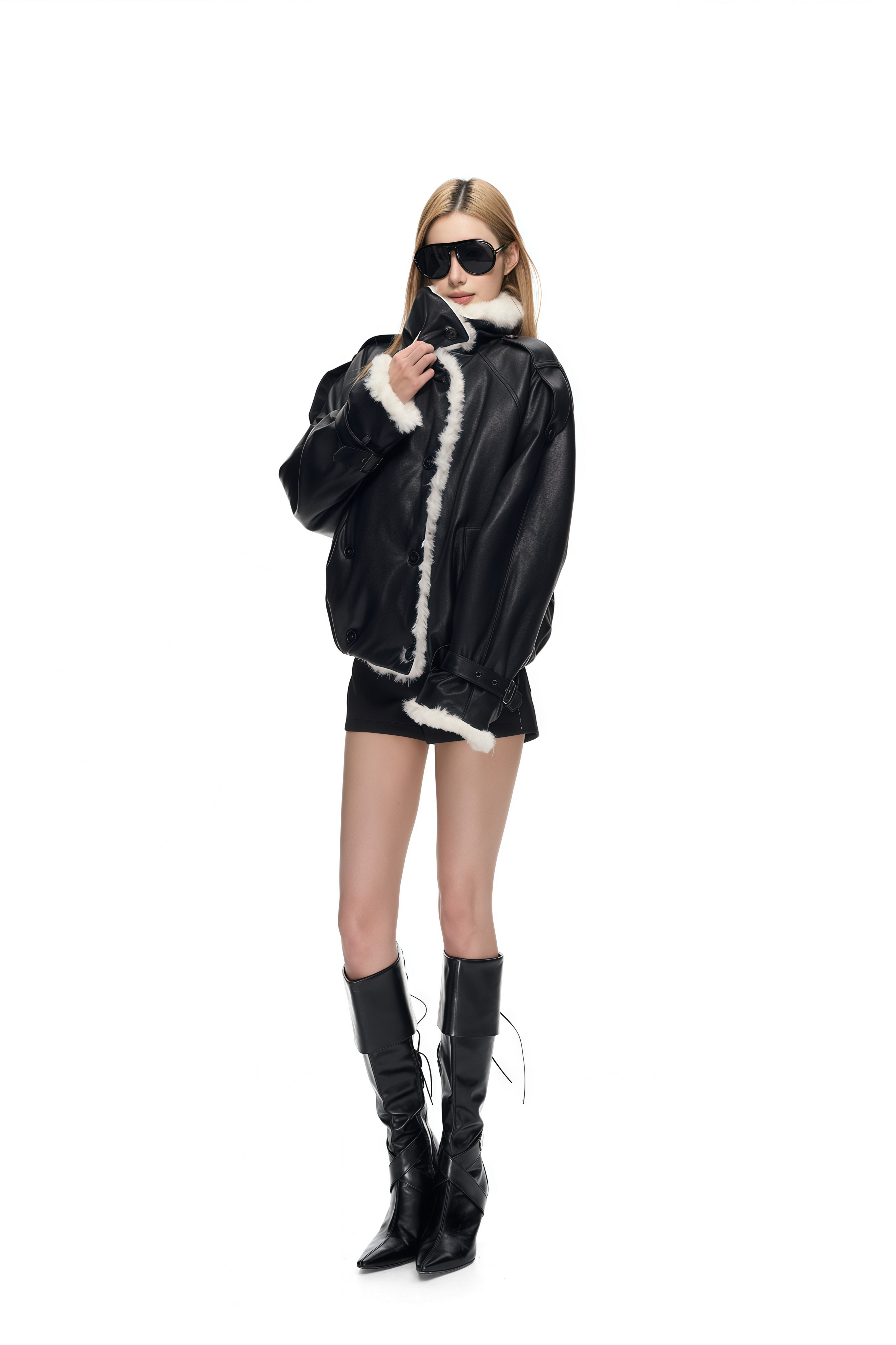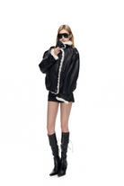 Juno Black High Stand-Up Collar Faux Leather Coat