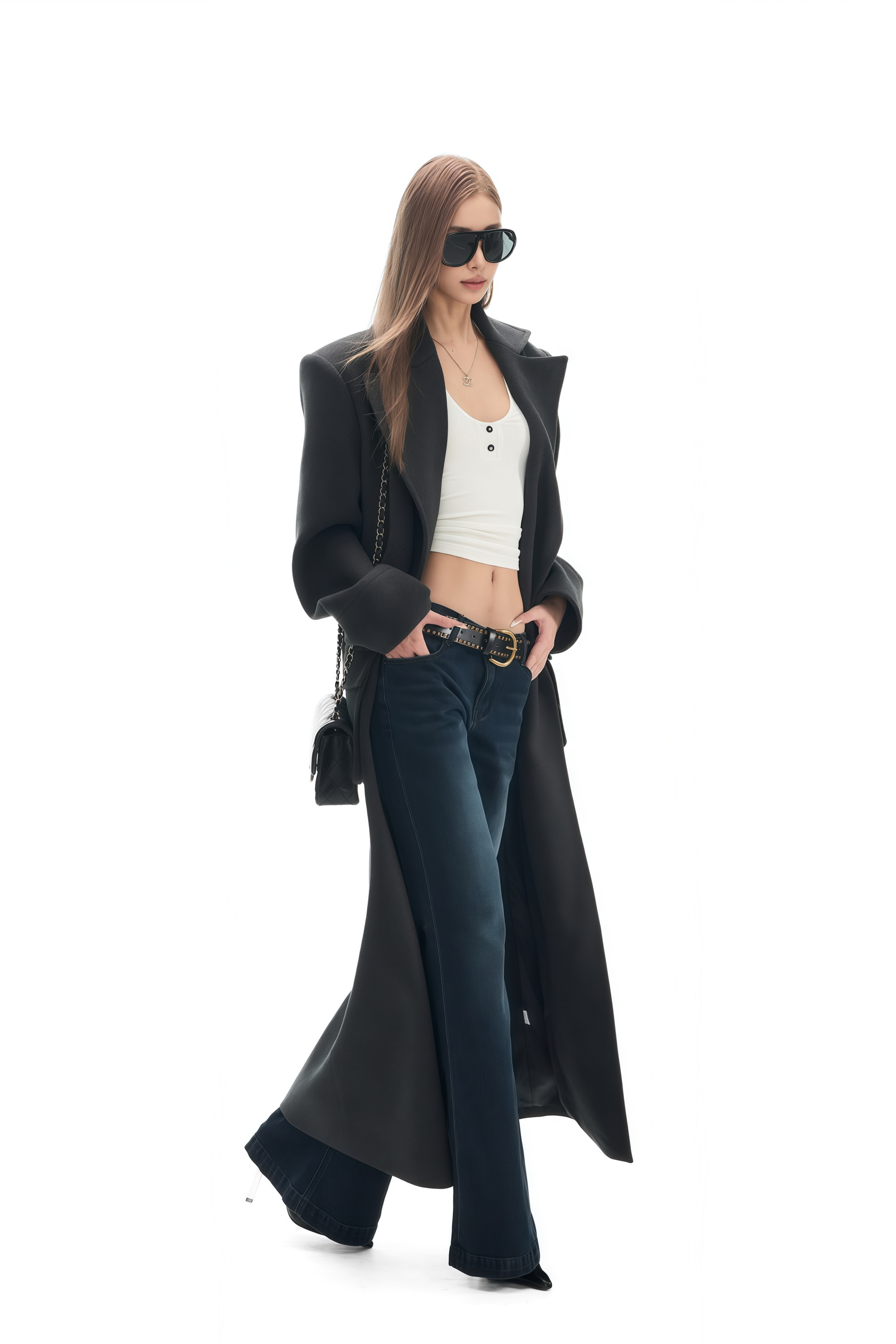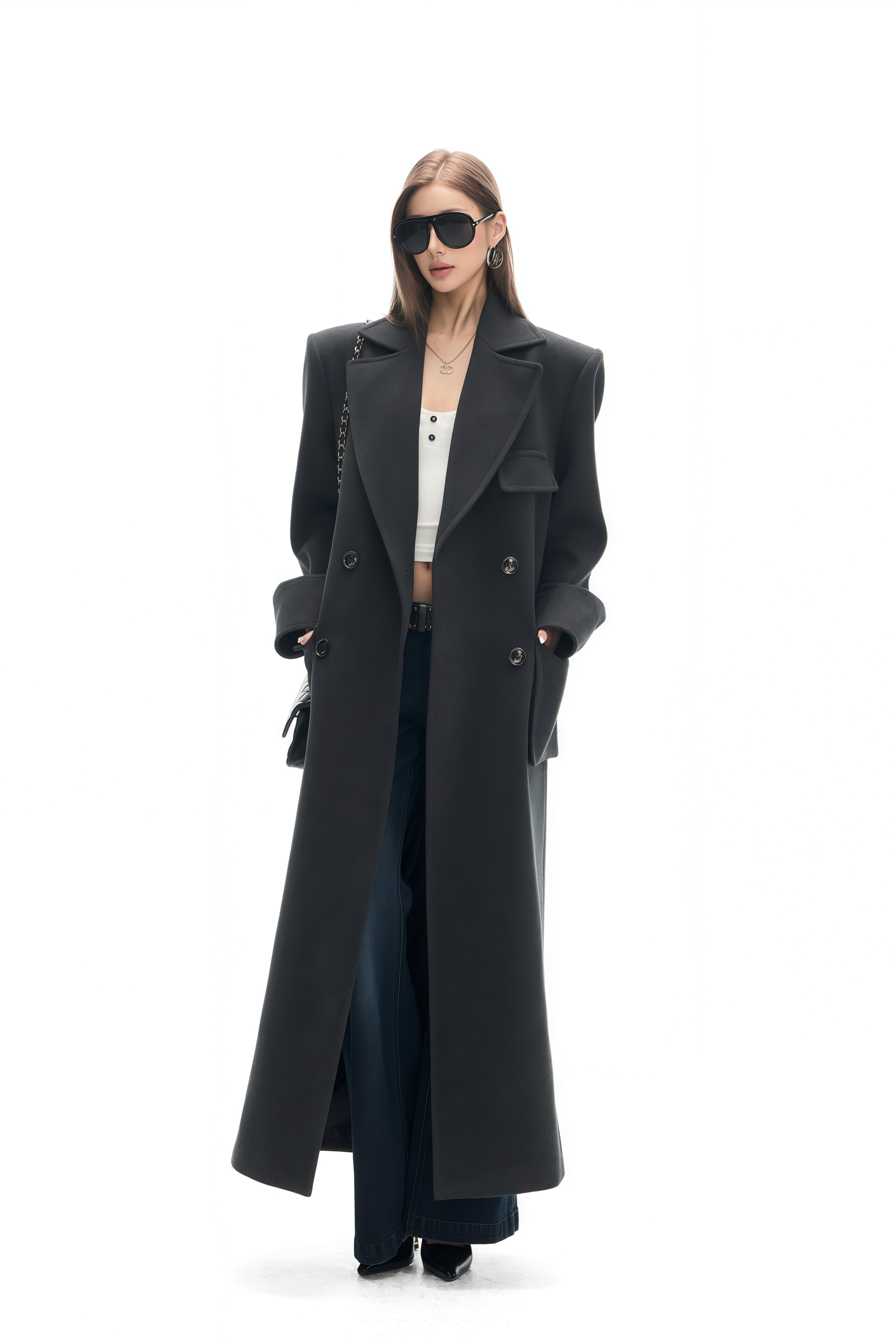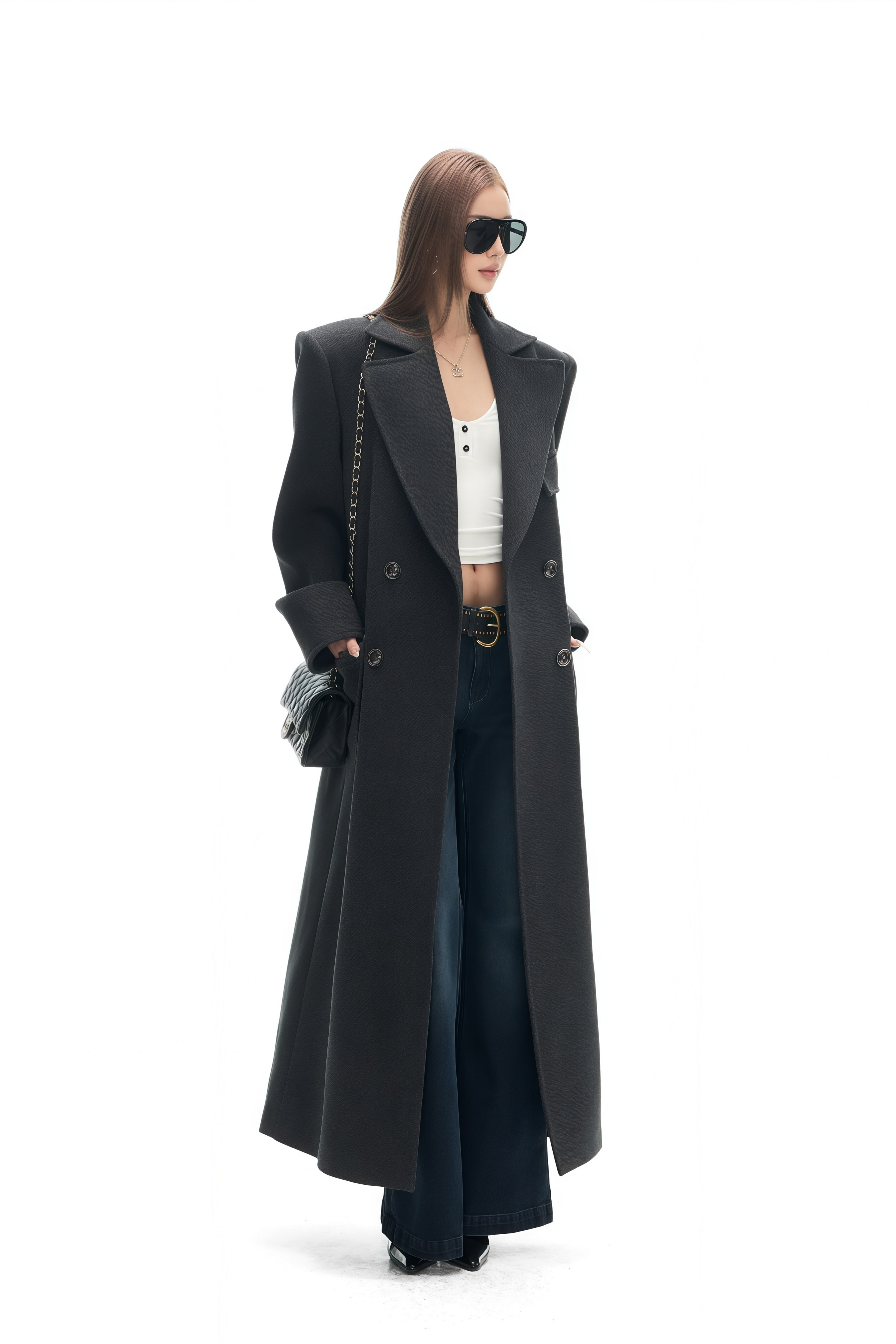 Introducing the Tanwen Grey Lapels Tweed Trench Coat, a must-have addition to your wardrobe. This coat features refined grey lapels and a solid-color tweed fabric with a straight hem. With its three flap pockets, single-breasted button fastening and fitted waistline, it offers timeless polish. Elevate your style with this elegant and versatile maxi-length coat.