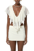 Dawn Cream White Ruffled Asymmetrical Top & Skirt Set