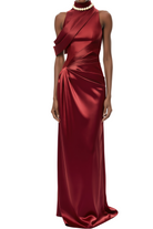 Valentina Red Asymmetrical Gathered Maxi Dress