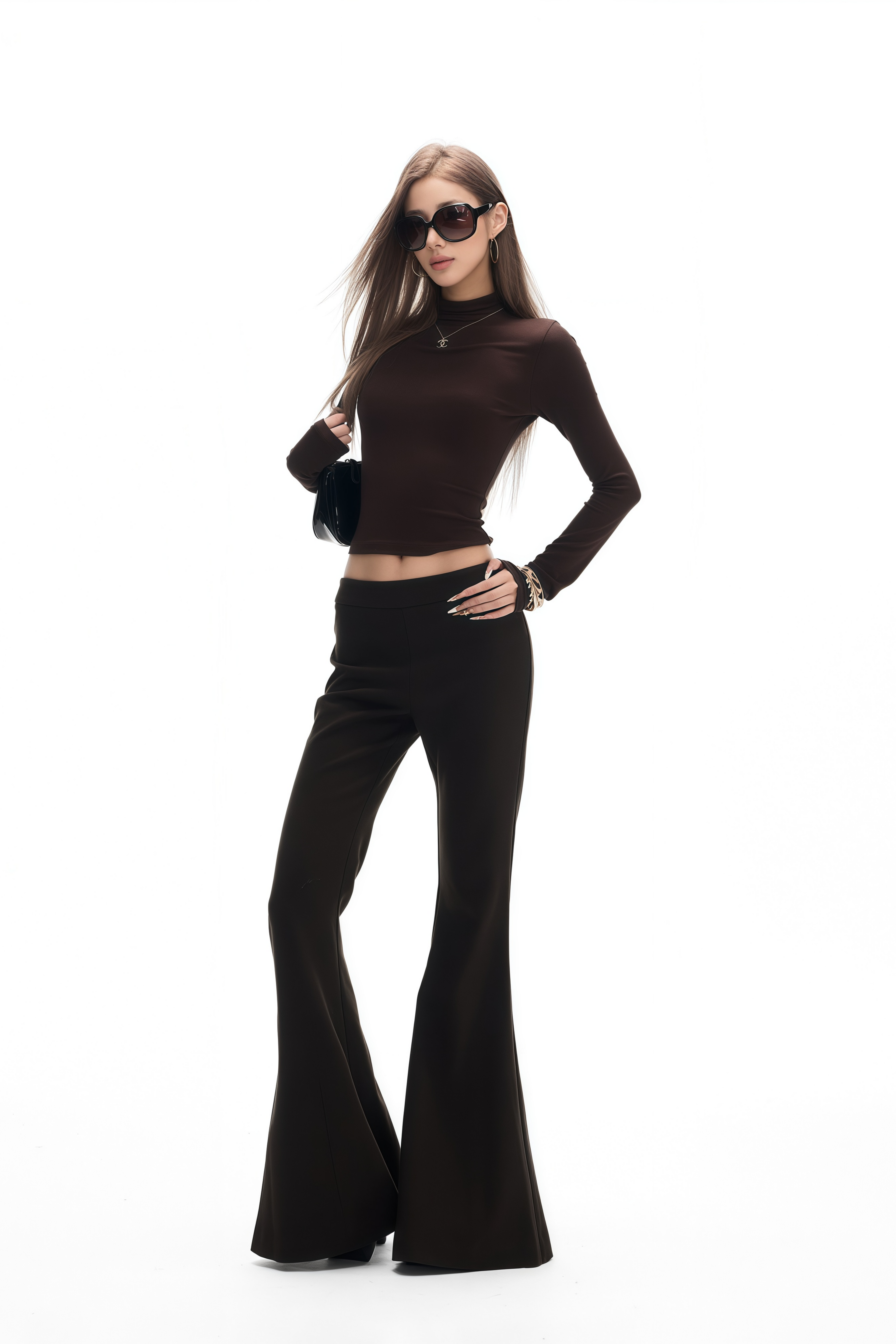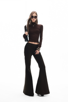 Noémie Brown High Neck Cropped Top