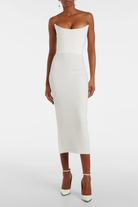 Freda White Strapless Slit Midi Dress