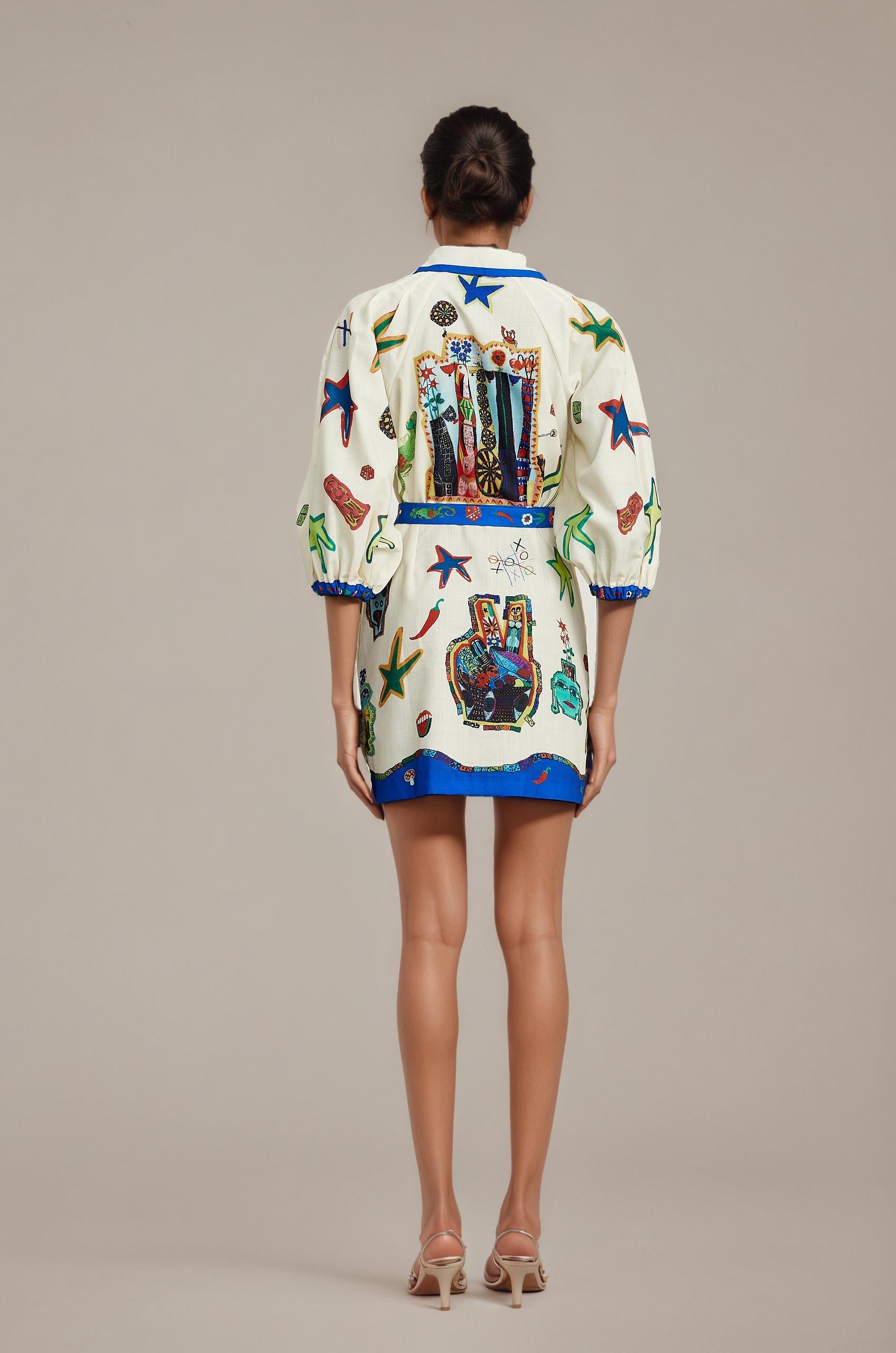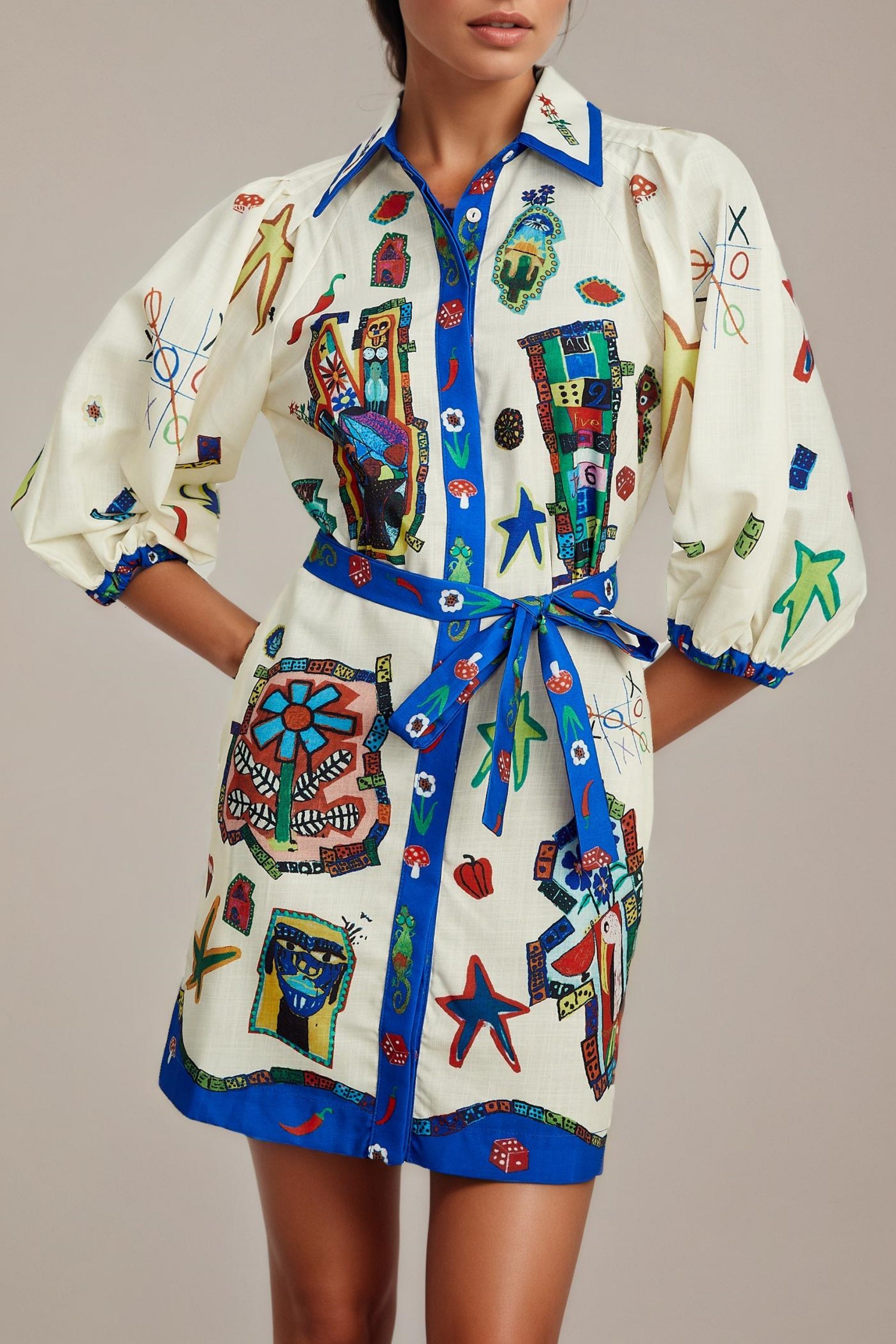 Claudia Belted Mini Dress With Graphic Graffiti Print