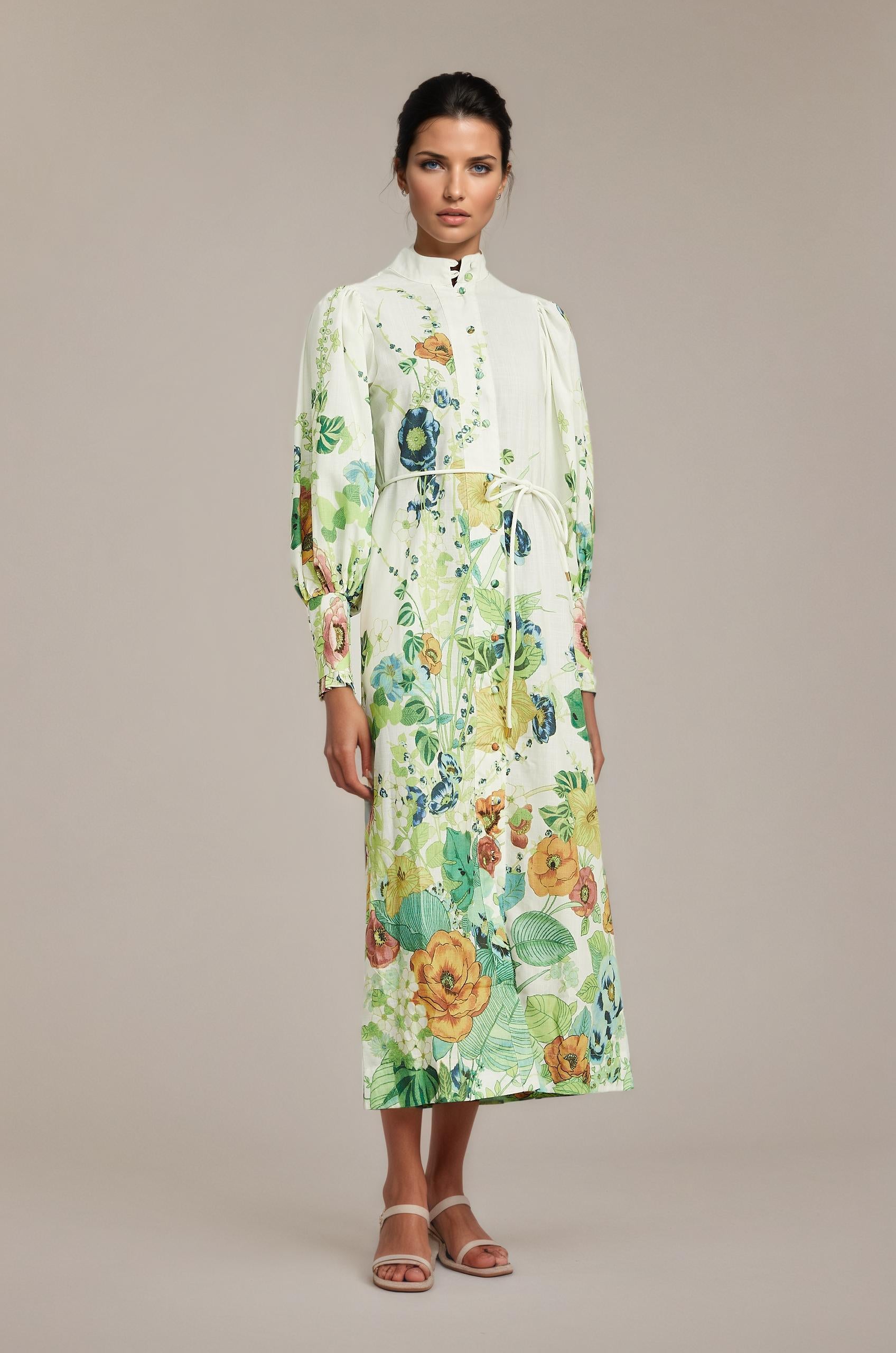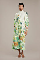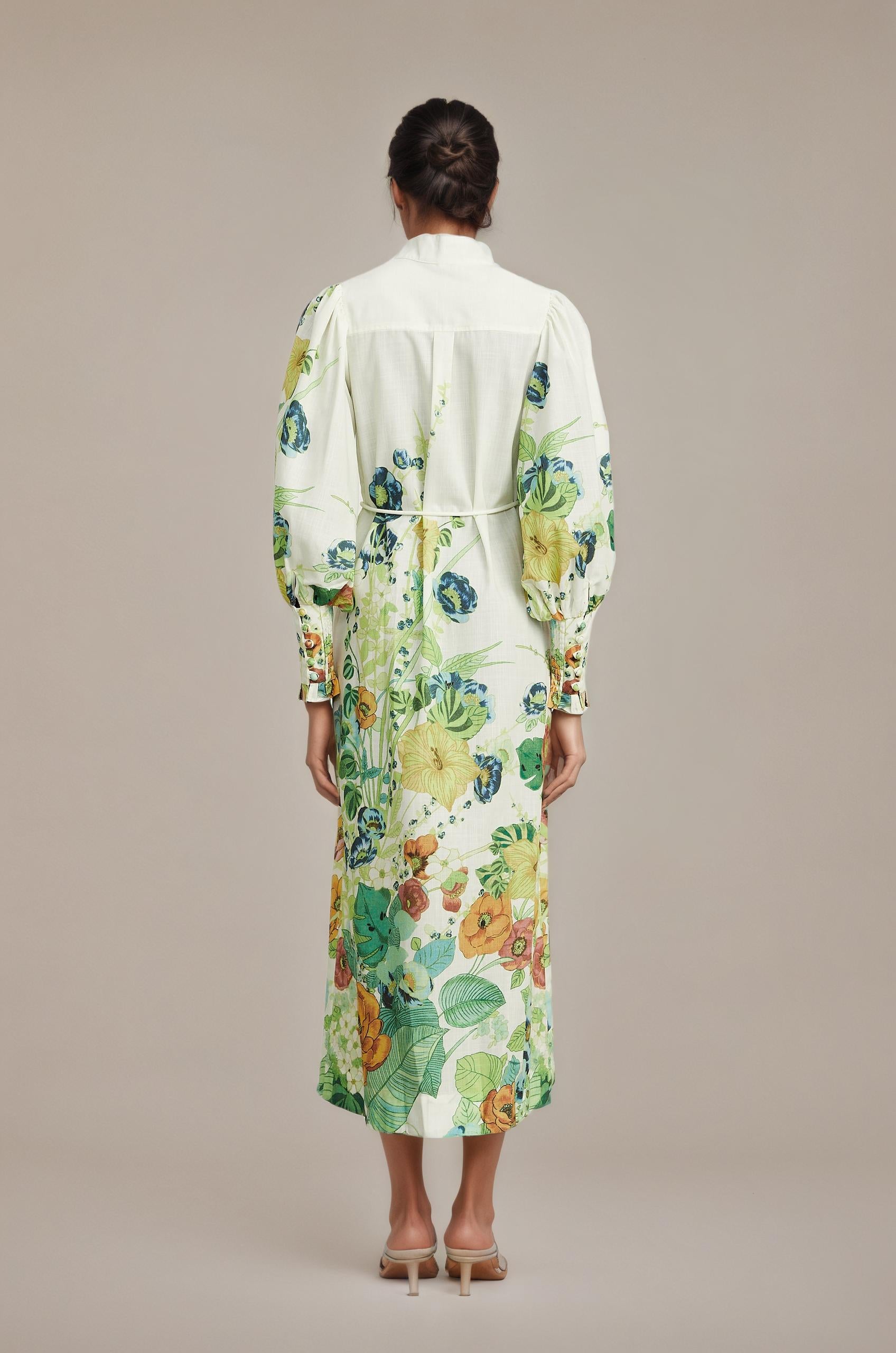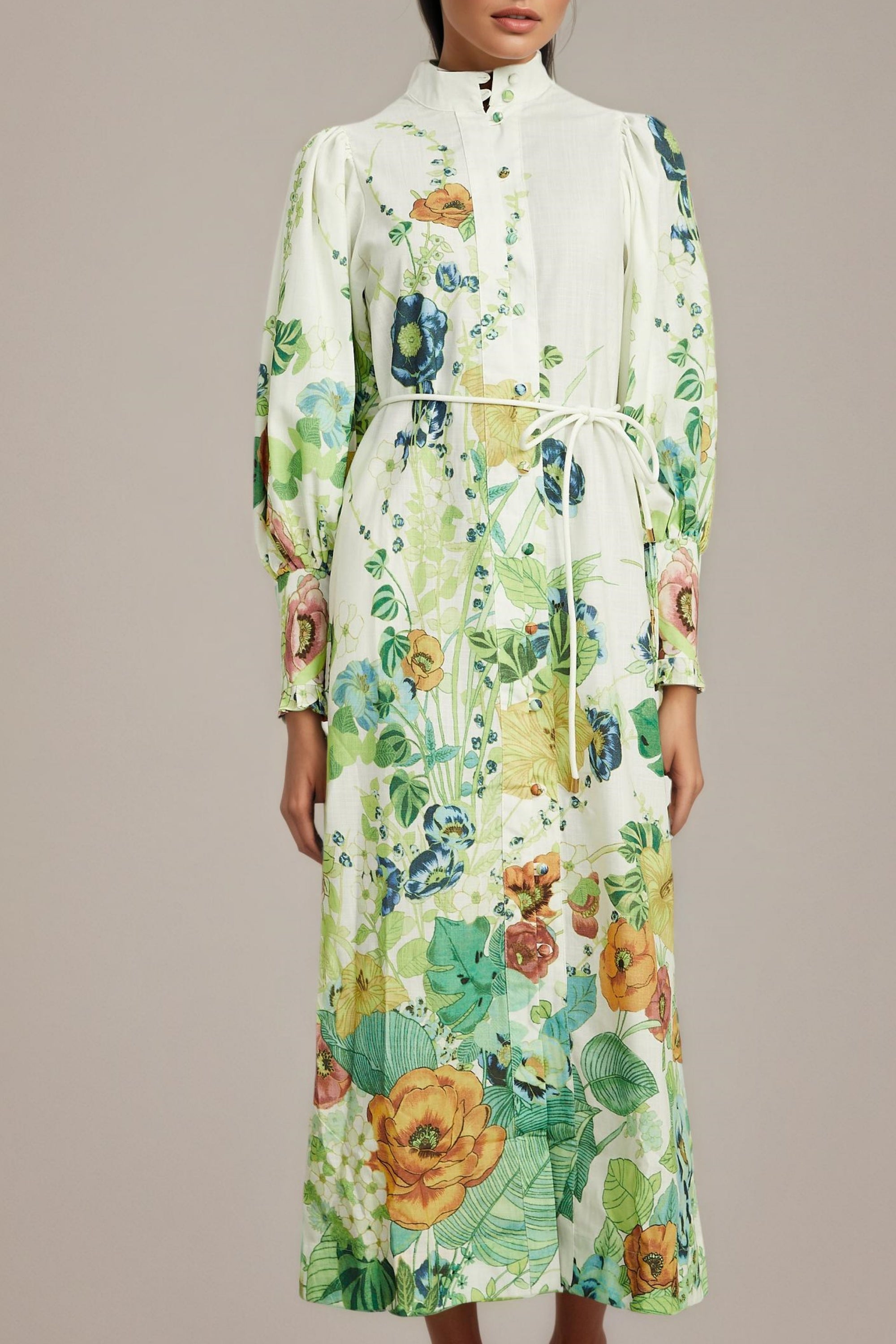 Katherine Balloon-Sleeve Midi Dress With Floral Print