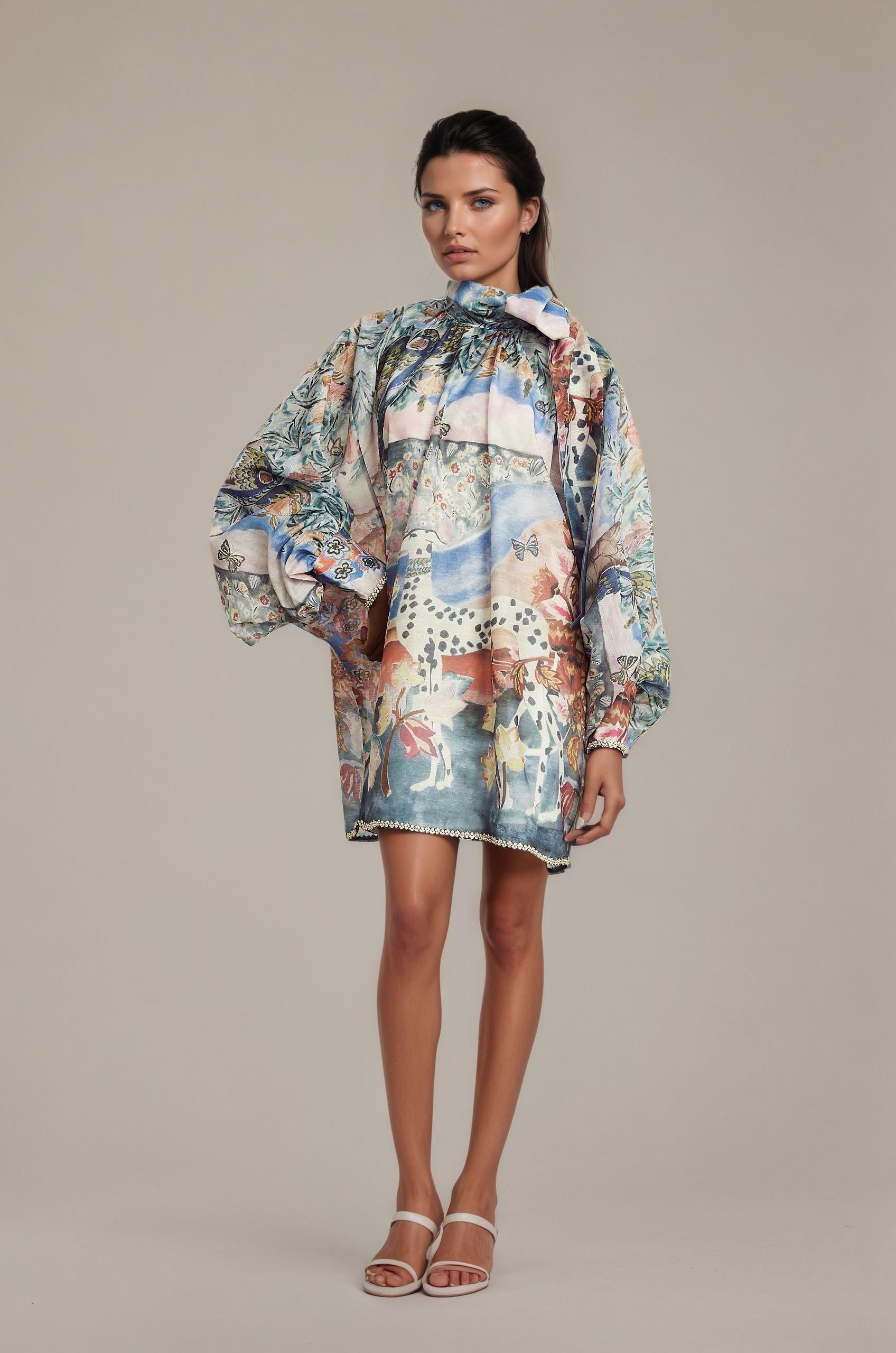 Lilou Paradise Mini Dress With Balloon Sleeves