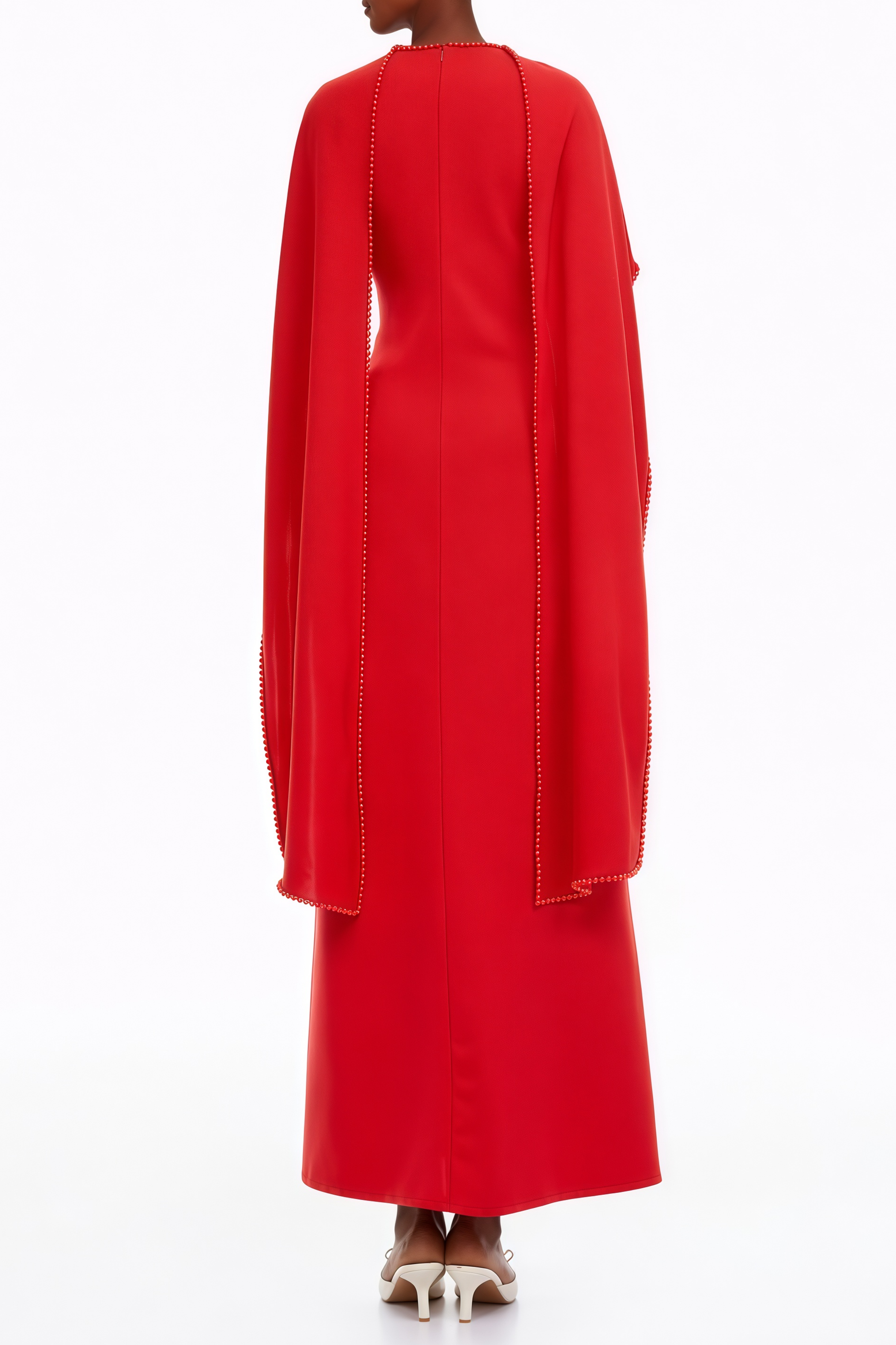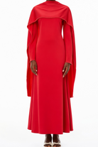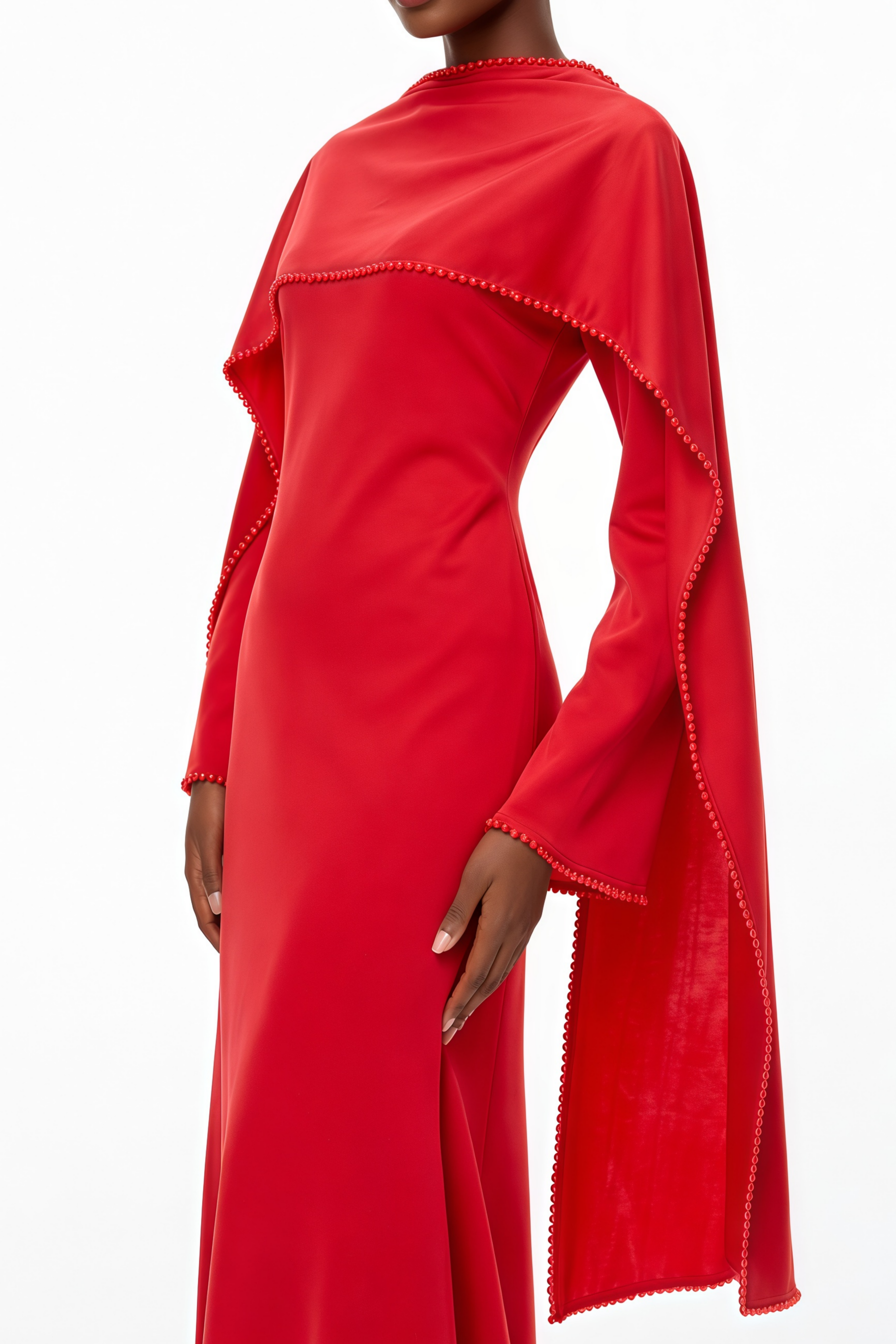 Madalena Red Pearl Trim Shawl Detail Maxi Dress