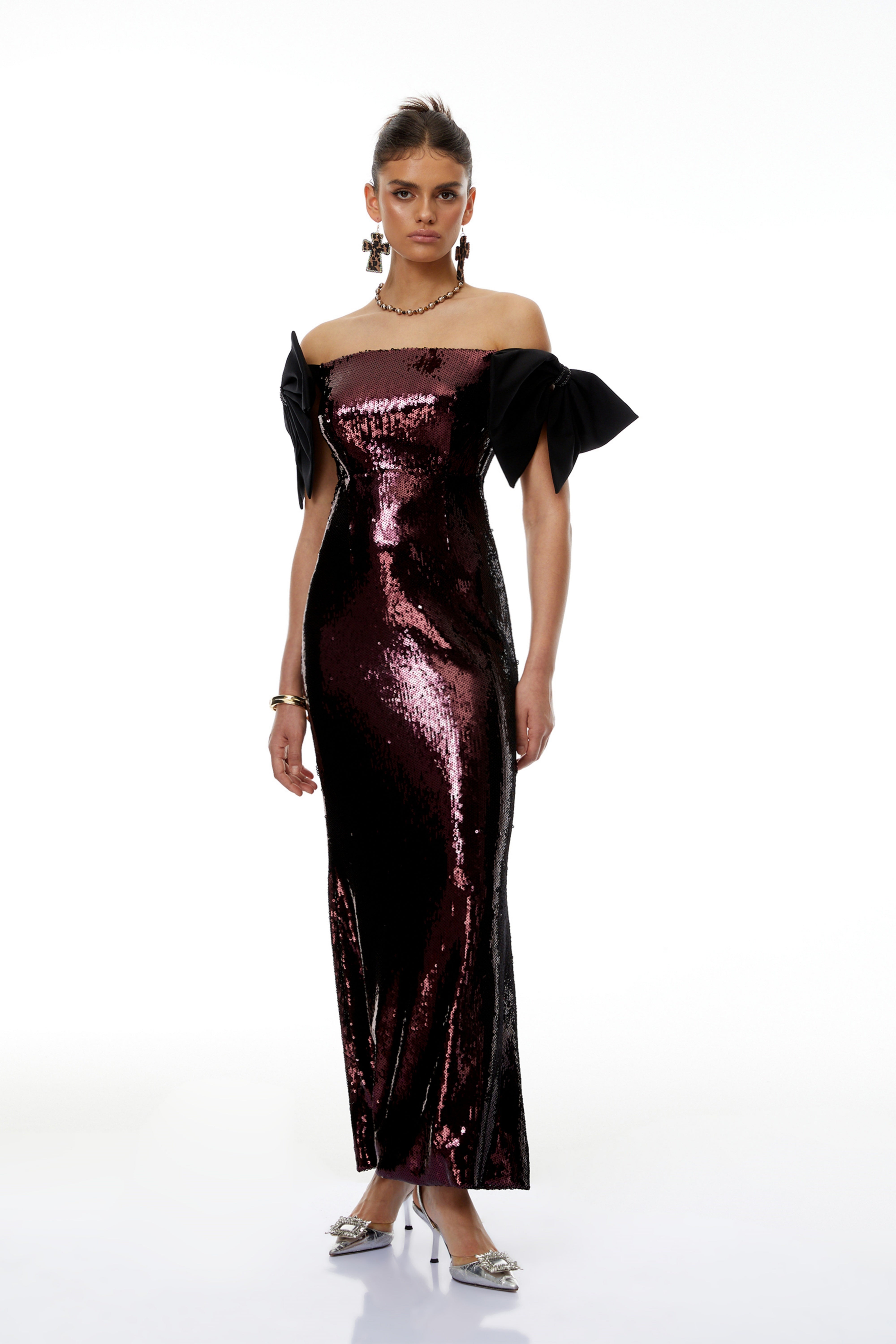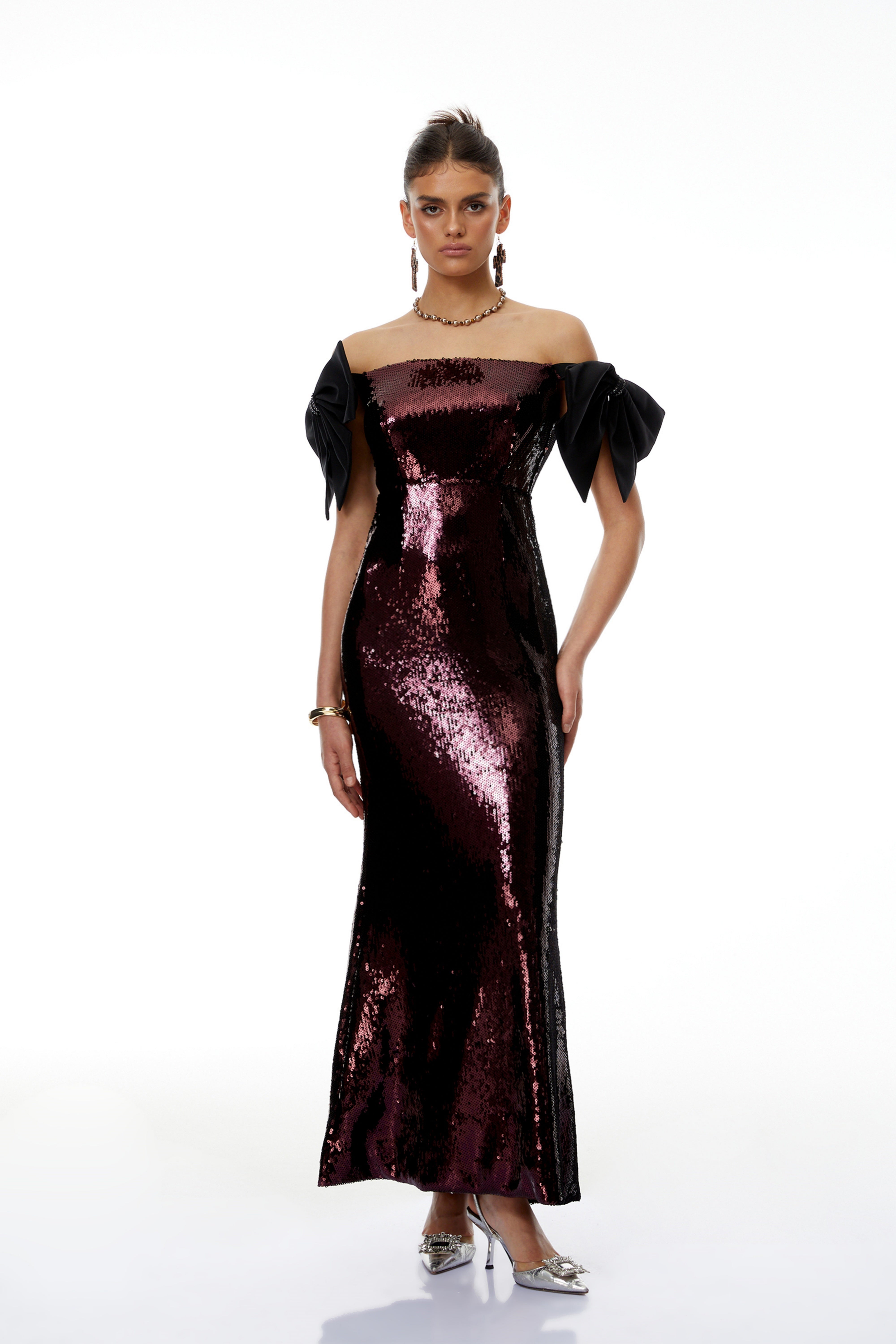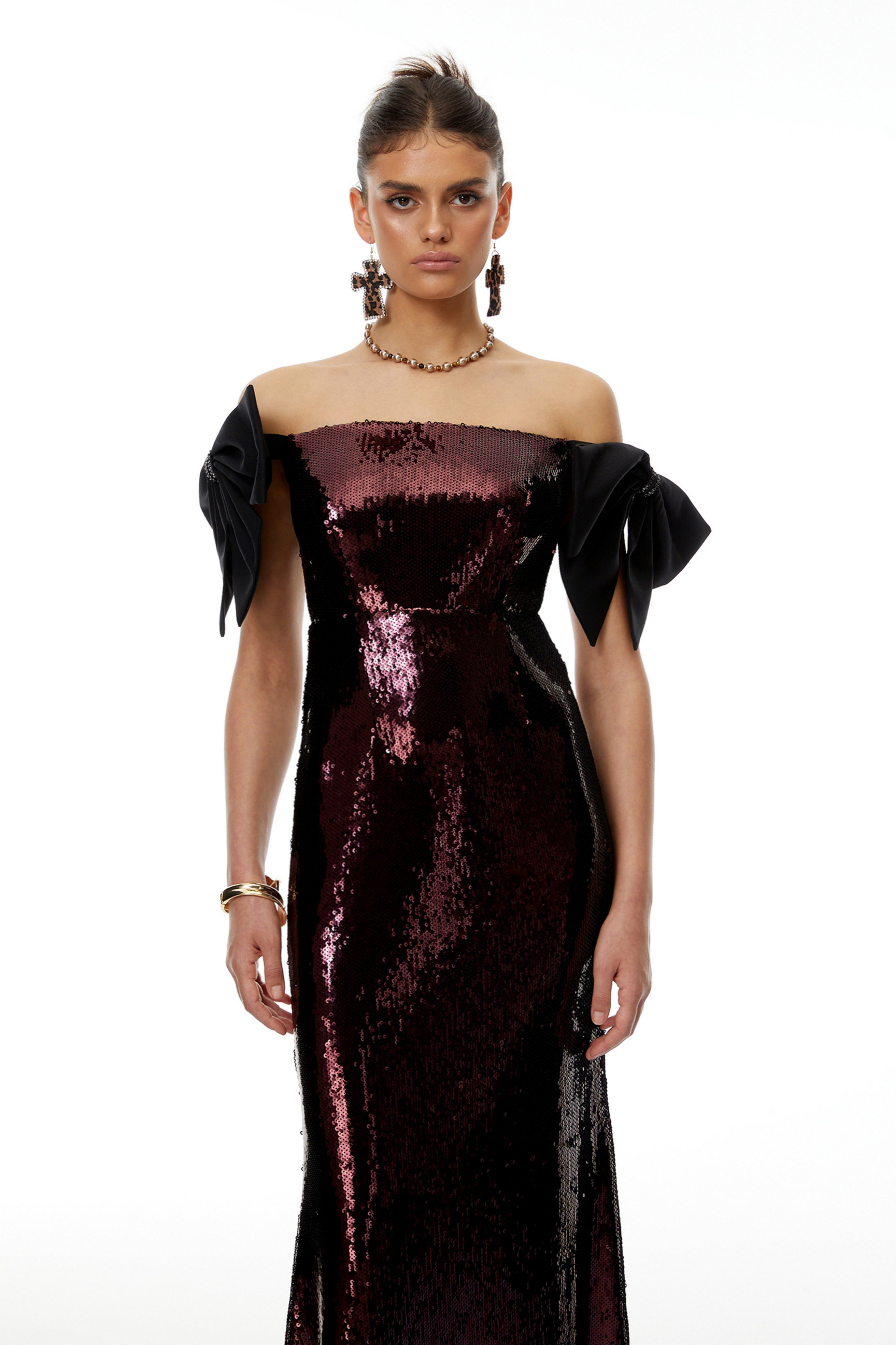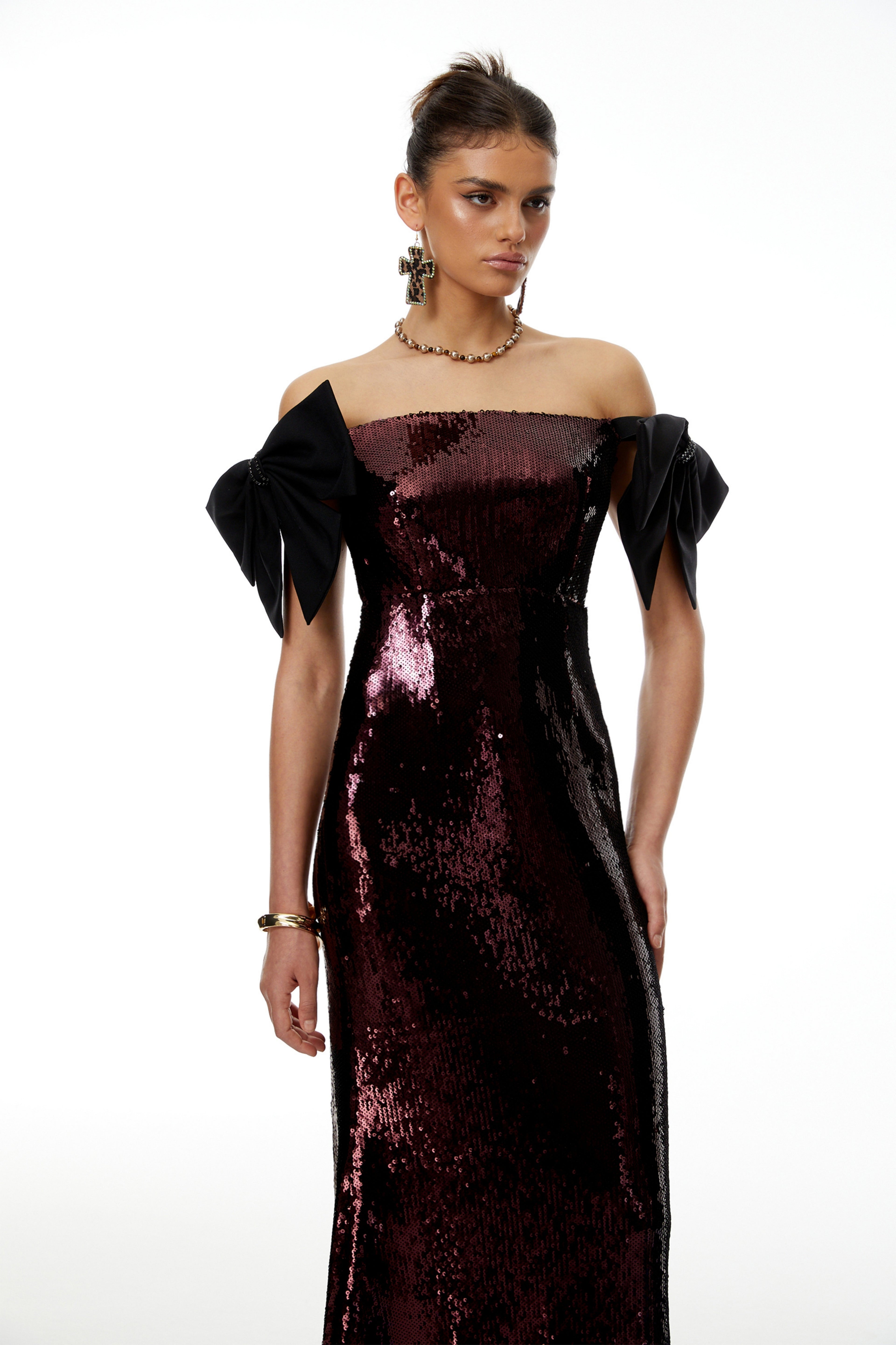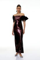 Wilow Pink Off Shoulder Sequined Maxi Dress