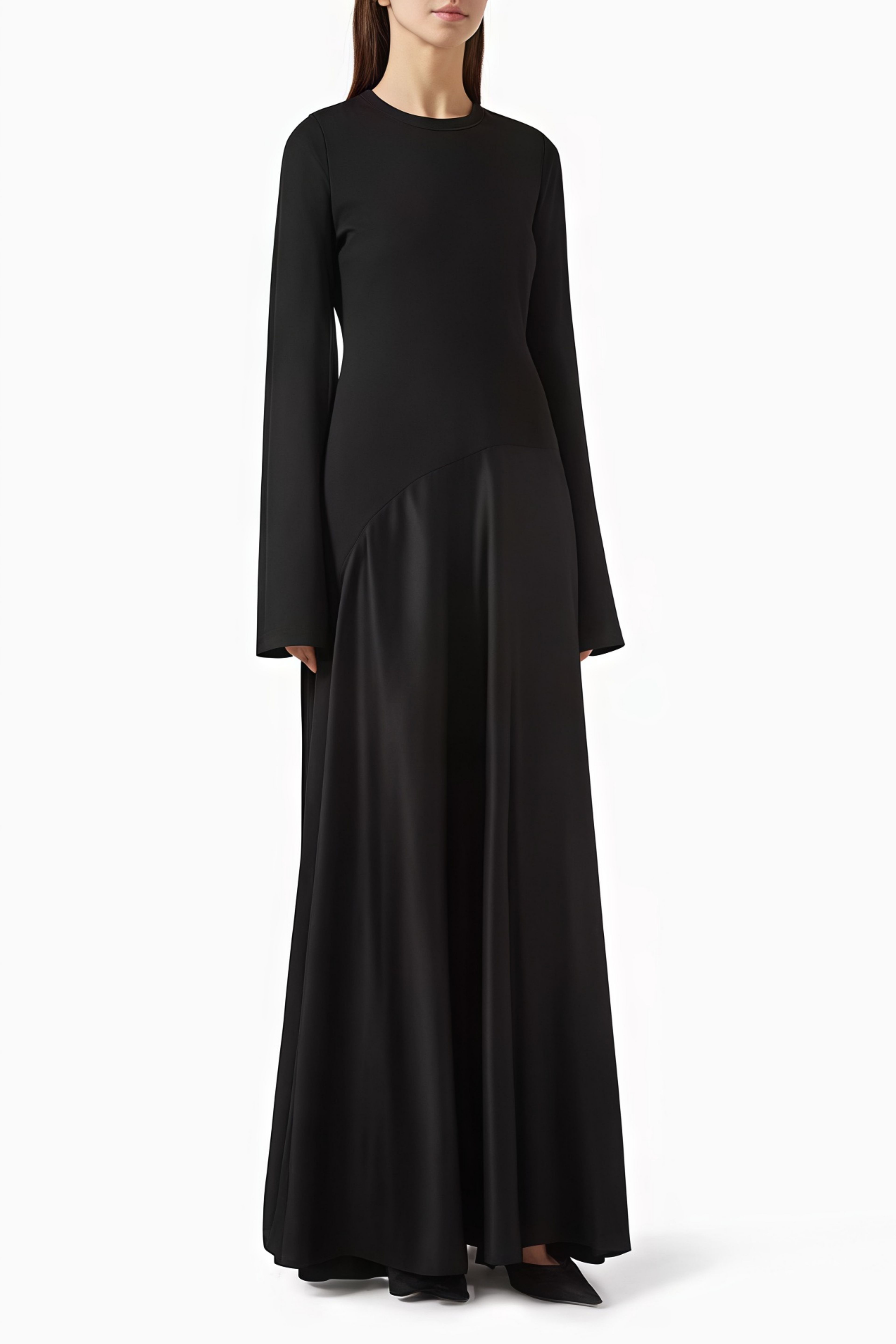 Dahlia Black Paneled Asymmetric Maxi Dress