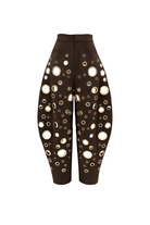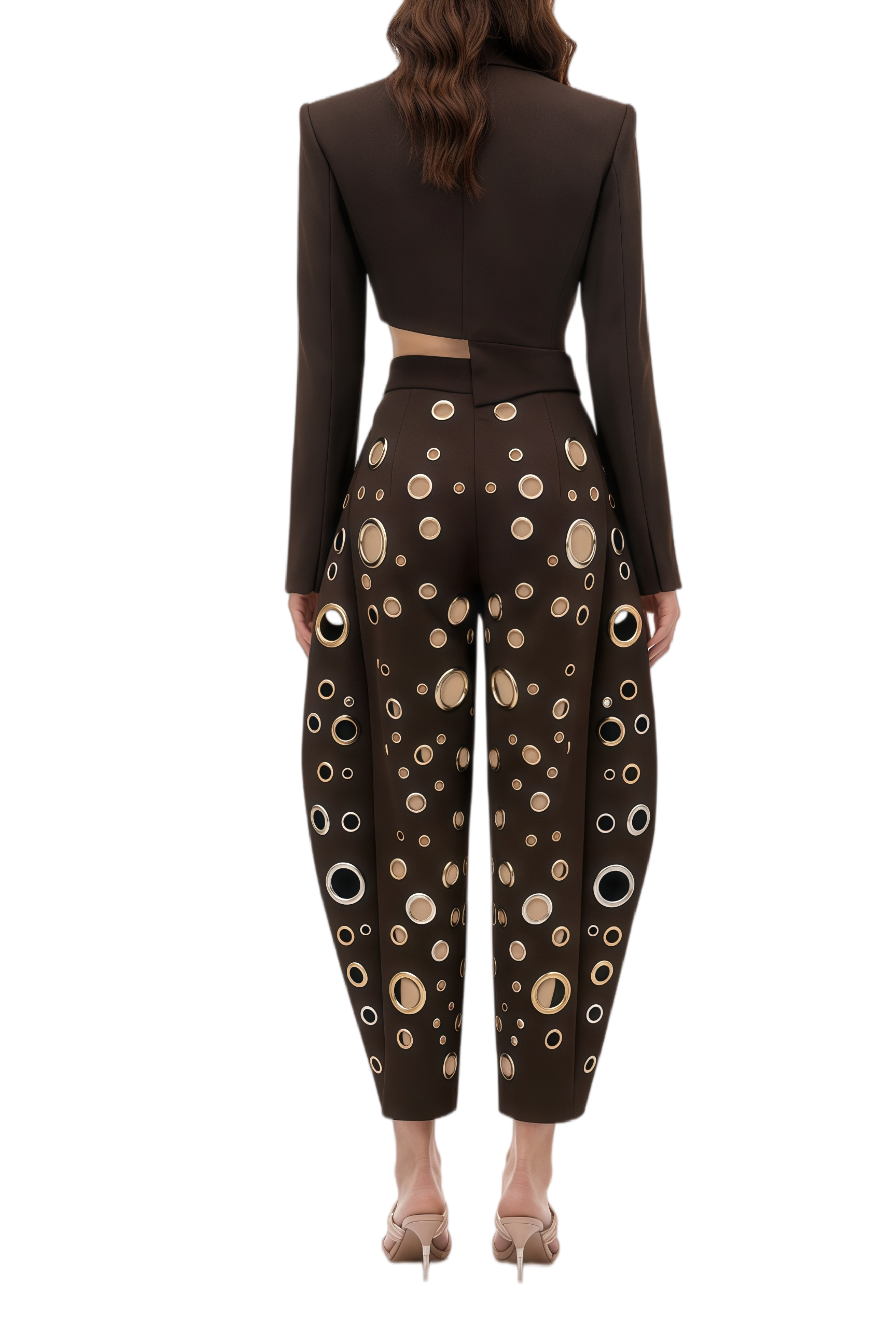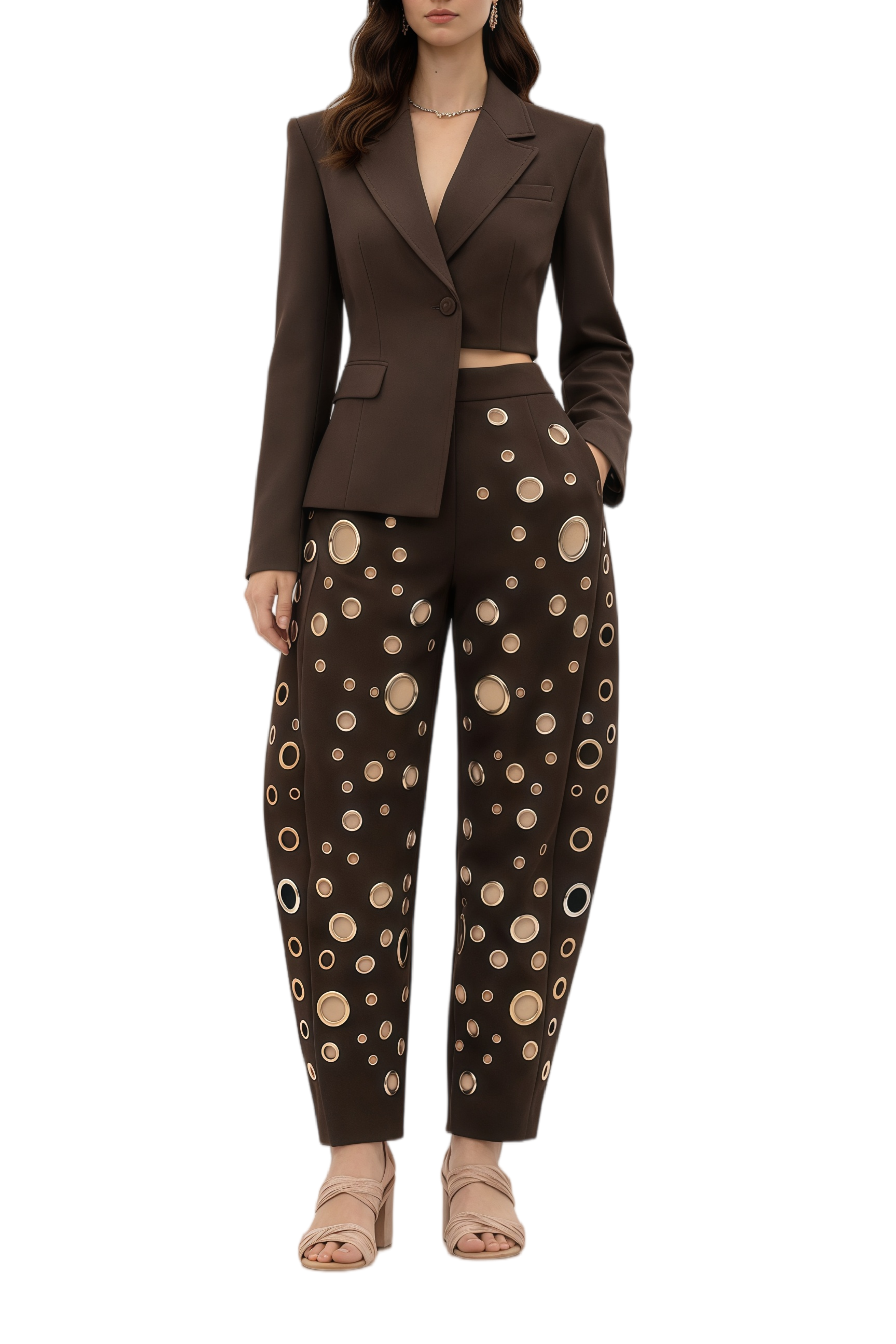 Jennifer Chocolate Brown Asymmetrical Blazer & Eyelet Balloon Trousers Set