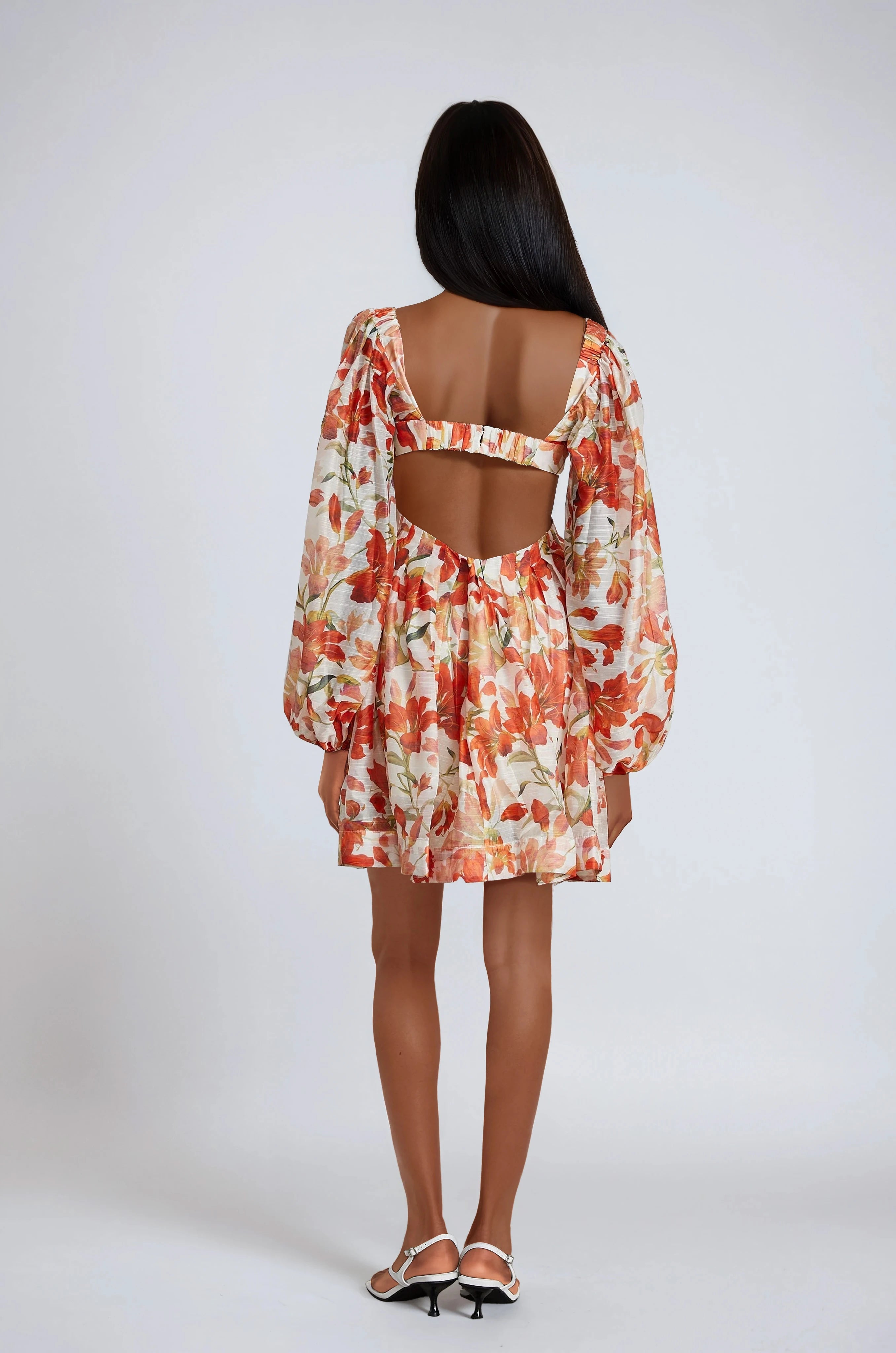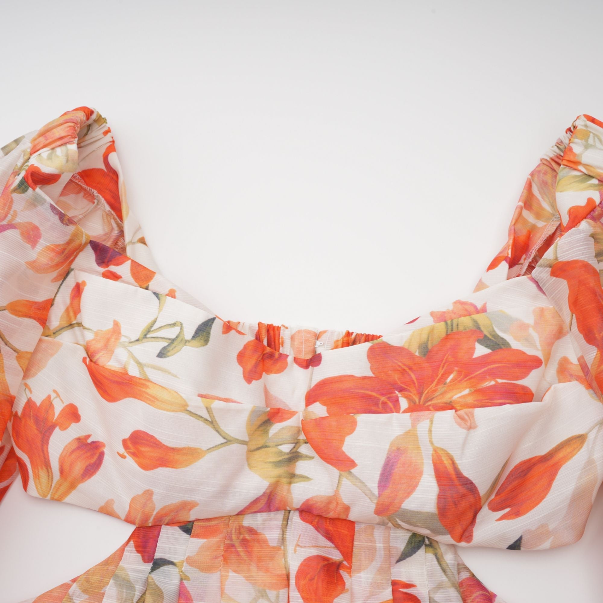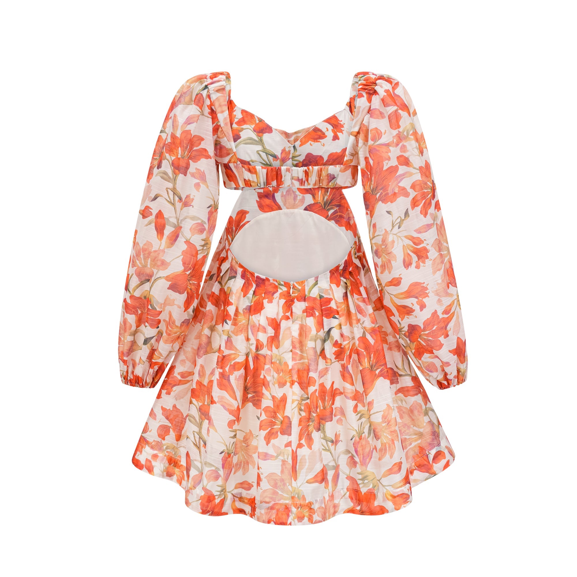 Introducing the Diane Mini Dress with Floral Print — an exuberant burst of color and movement. Drenched in vivid multicolour florals, this dress features long sleeves and a daring cut-out waist that adds a modern edge to its romantic print. Every inch is fully pleated, allowing the fabric to ripple like liquid silk as it falls to a playful mini length. Slip it on for rooftop sunsets, gallery openings, and every moment that calls for fearless femininity.