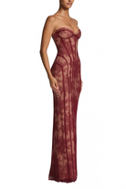 Marcia Burgundy Floral Corset Maxi Dress