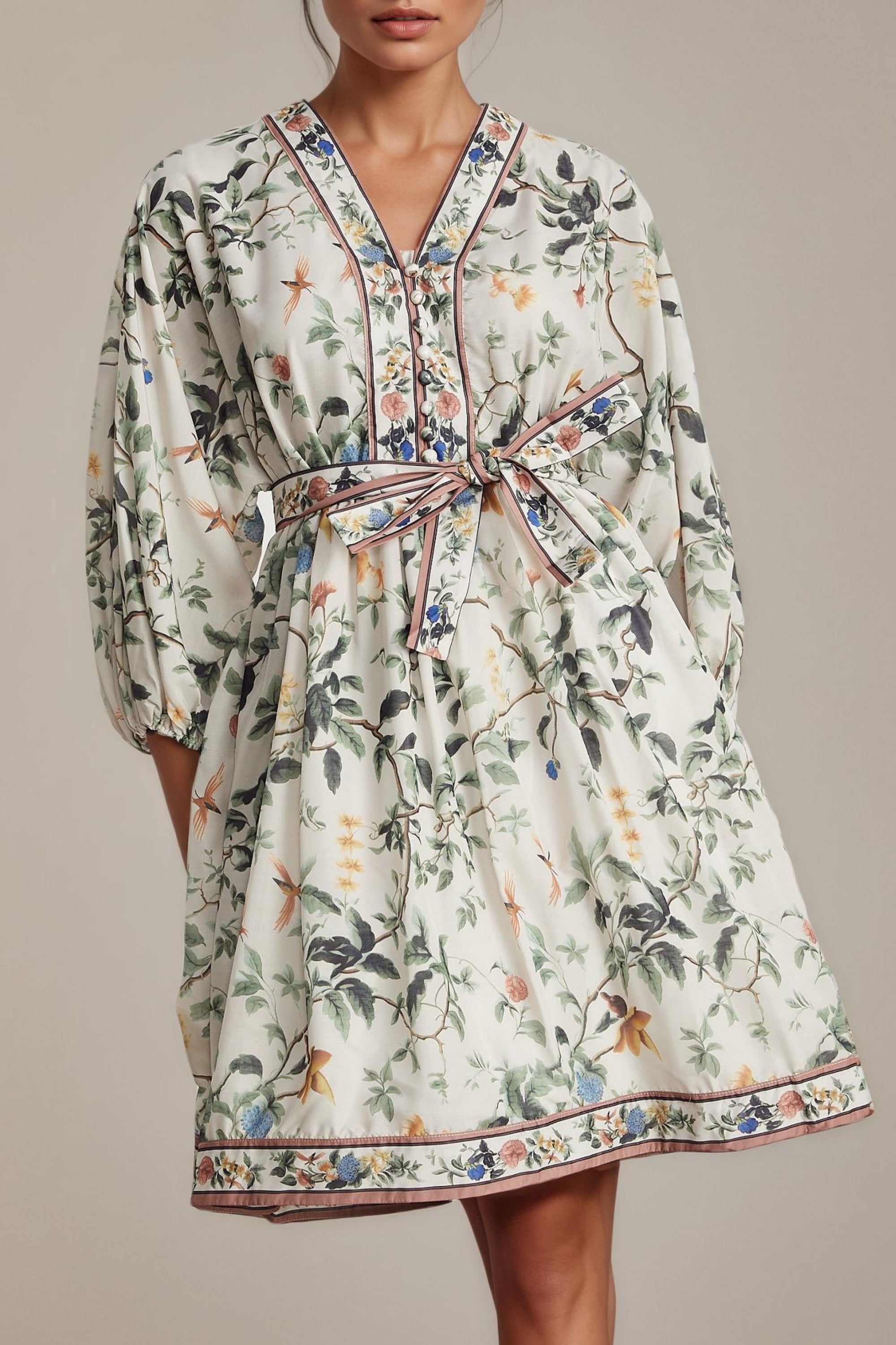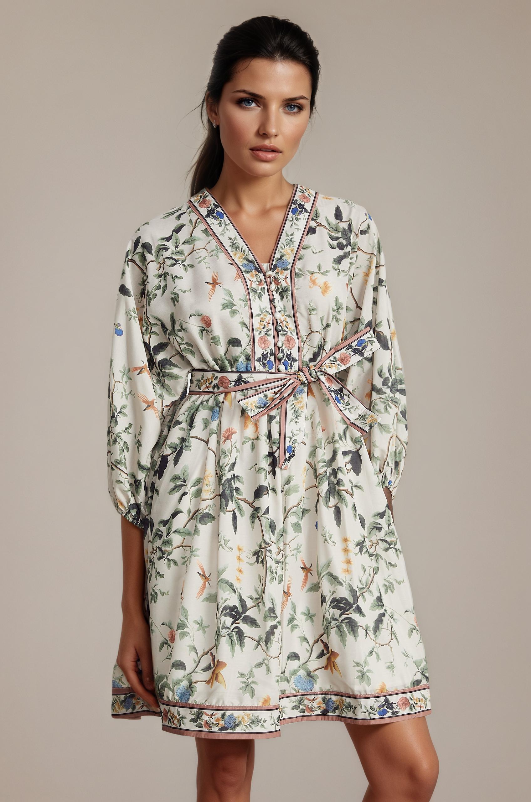 Mathilde V-Neck Floral Print Mini Dress