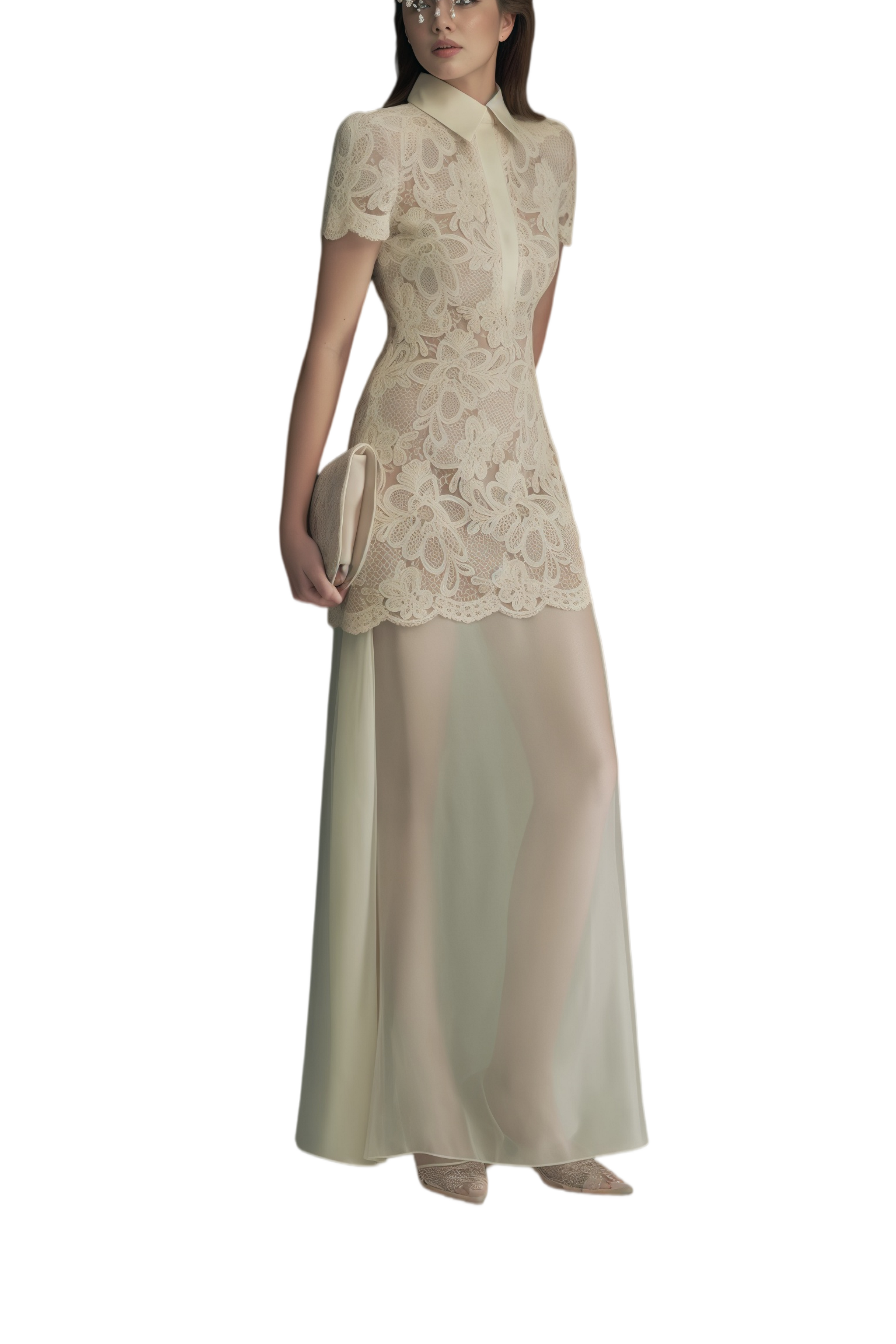 Regina Neutral Lace Sheer Panel Maxi Dress