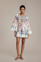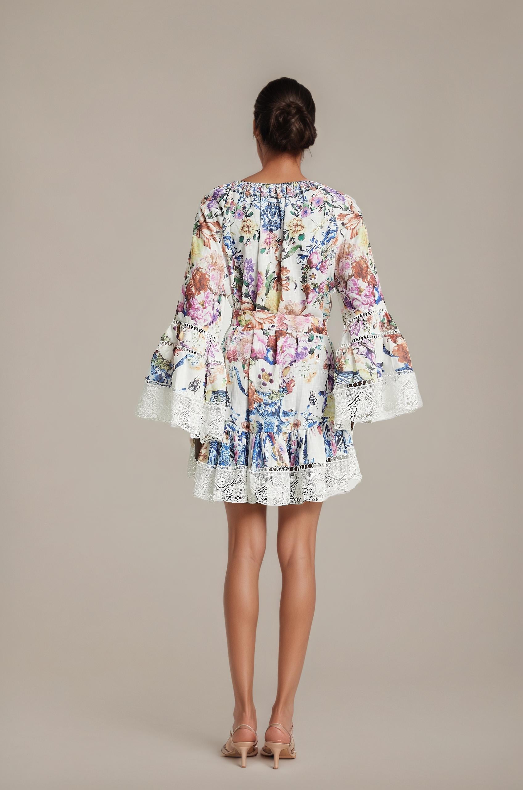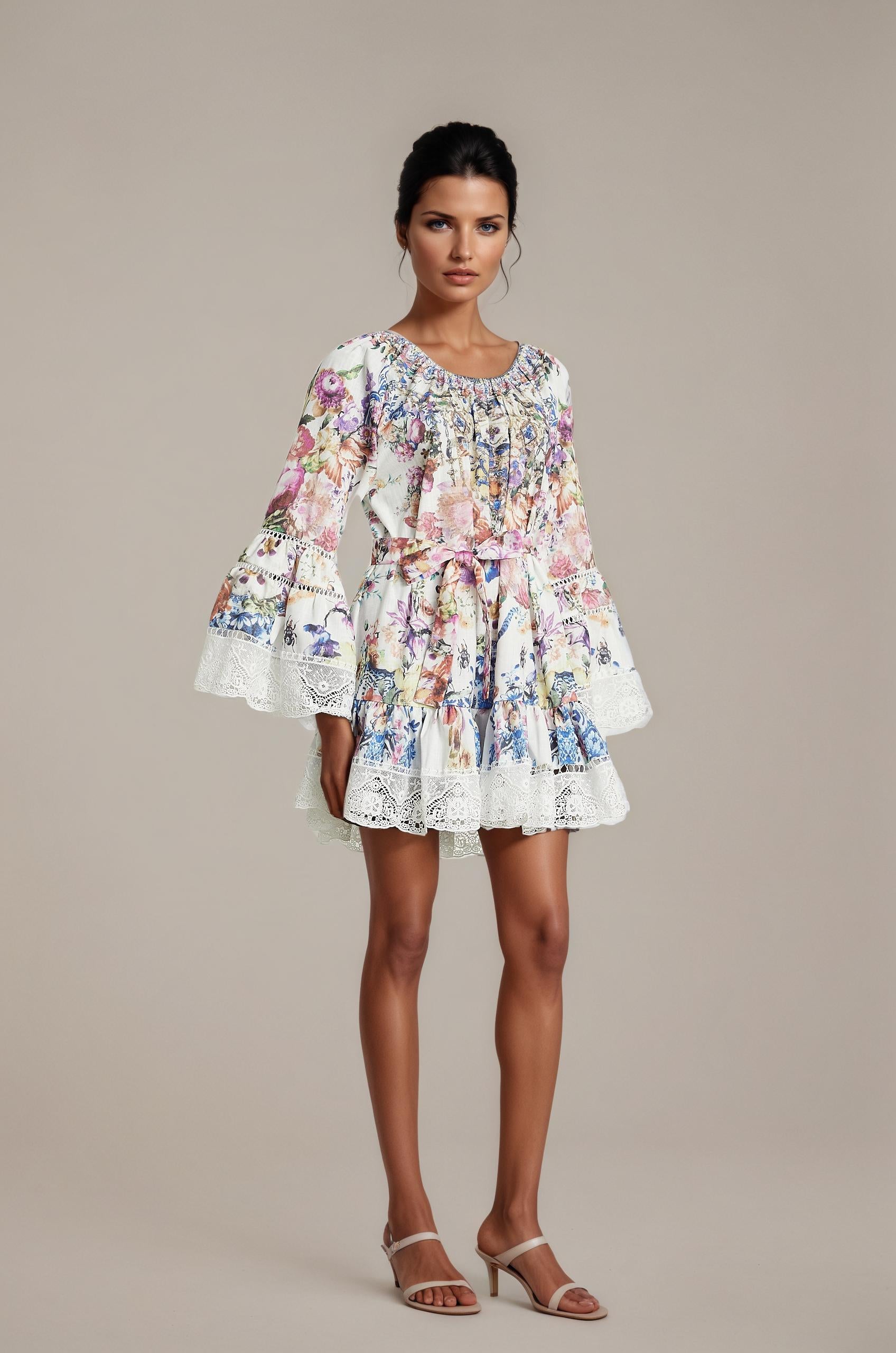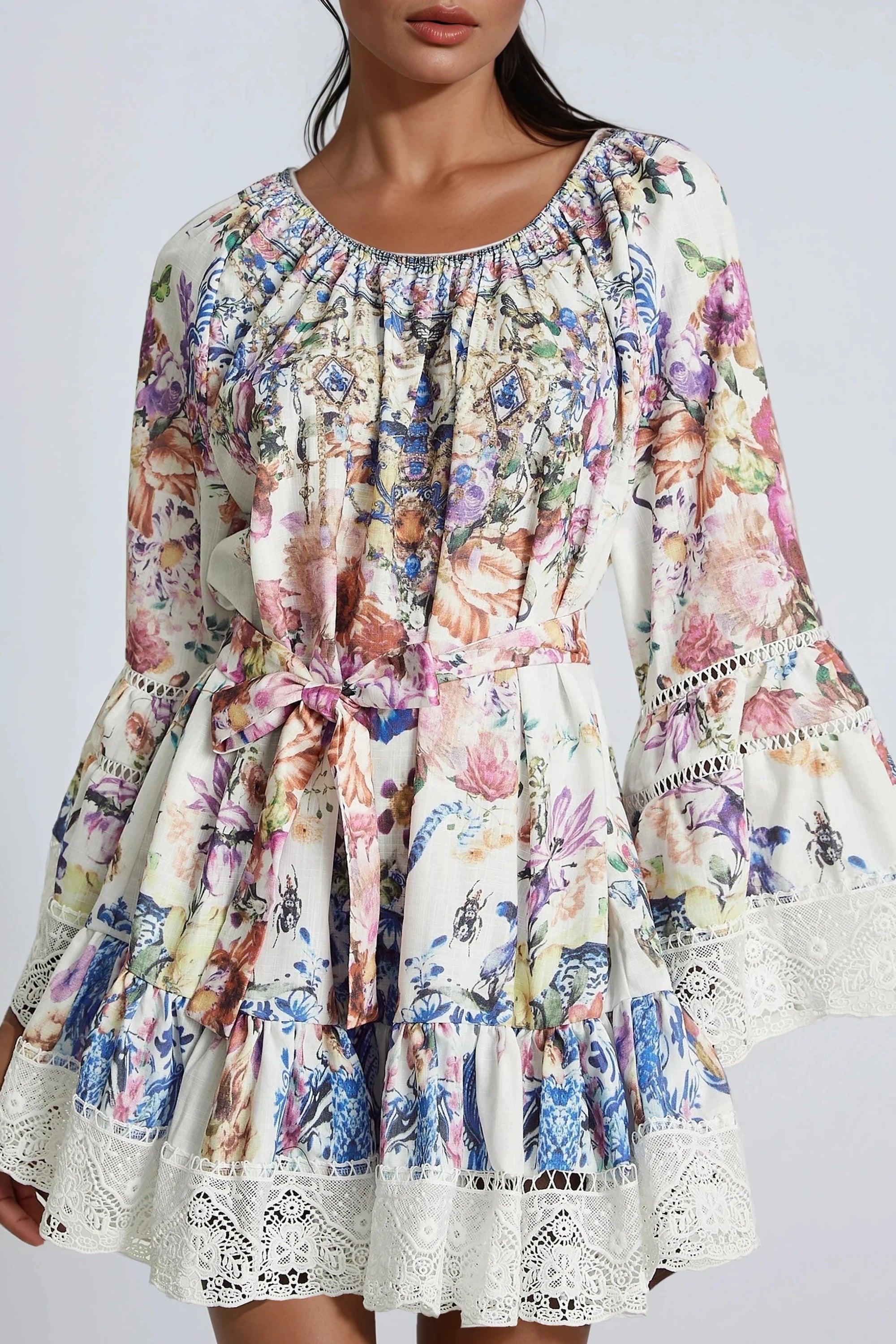 Bérénice Mini Dress With Floral Print And Lace Trim
