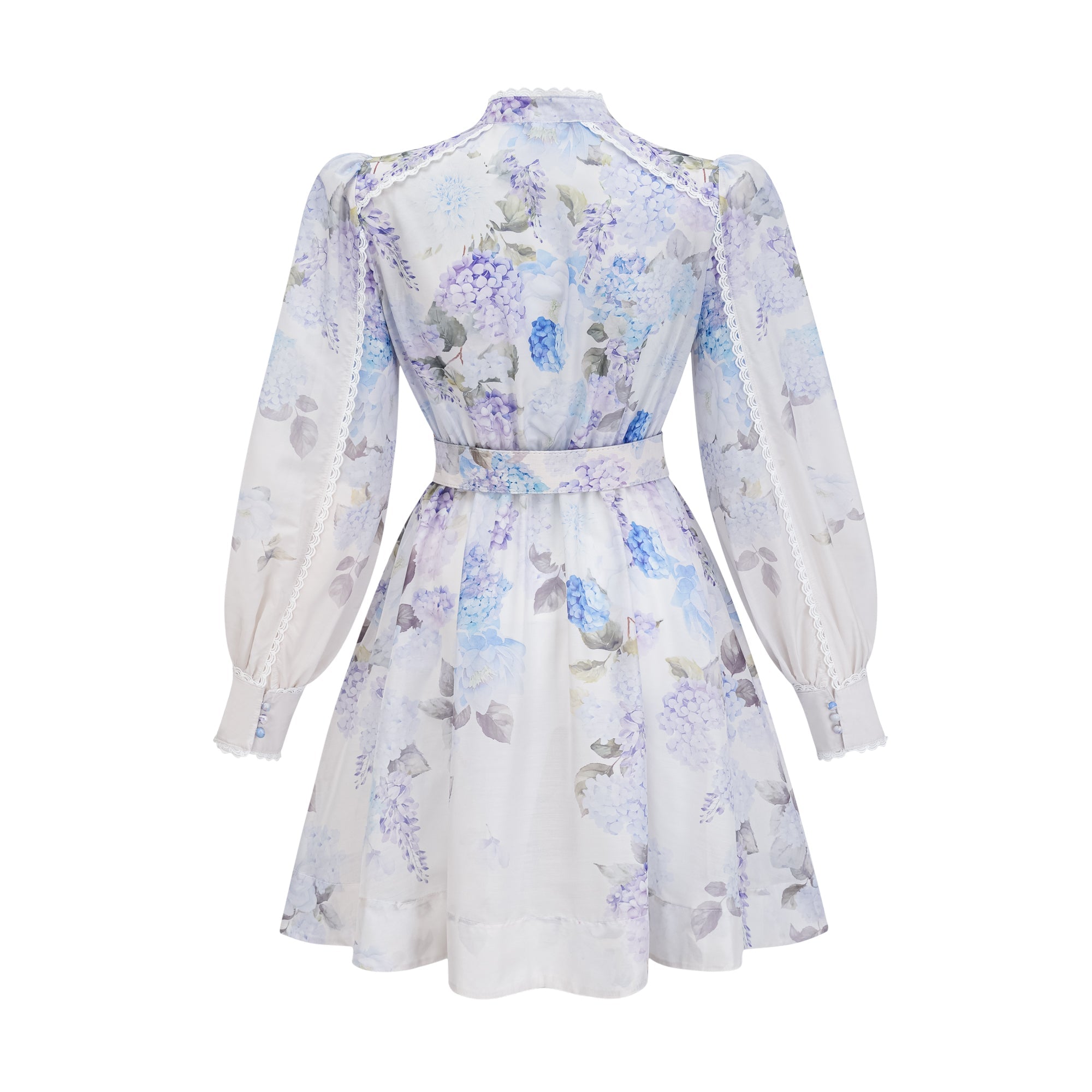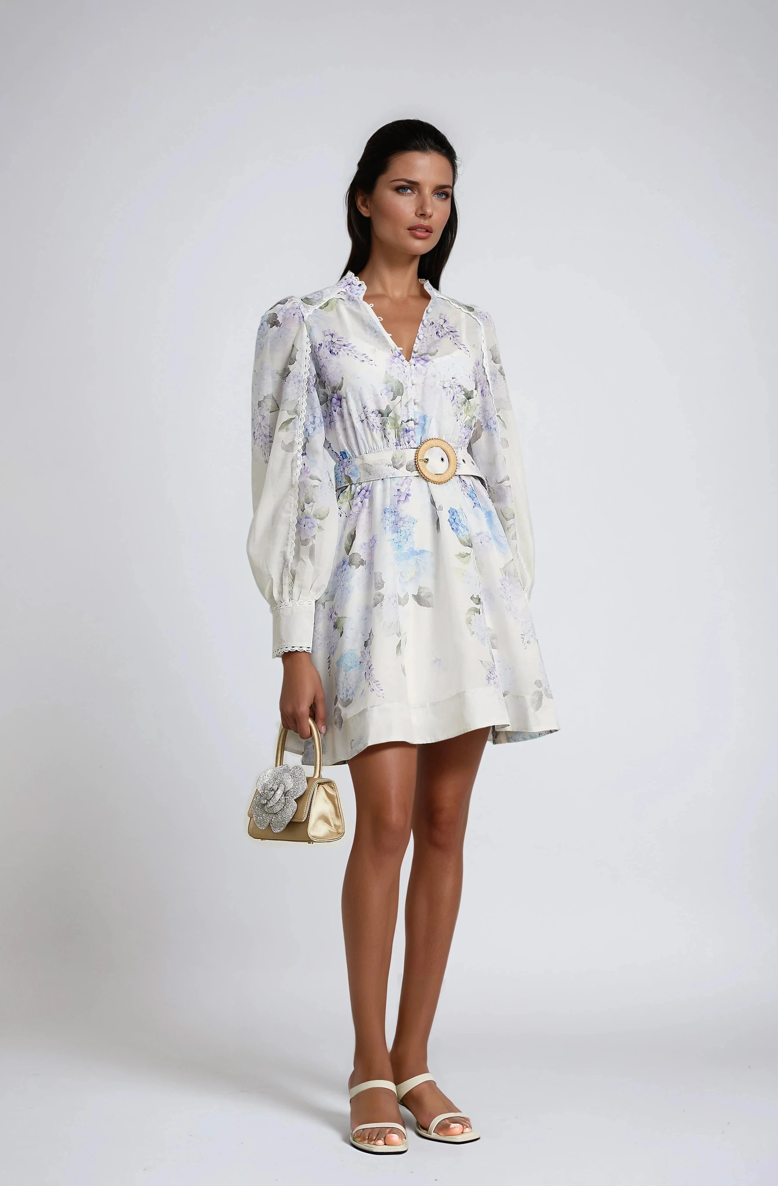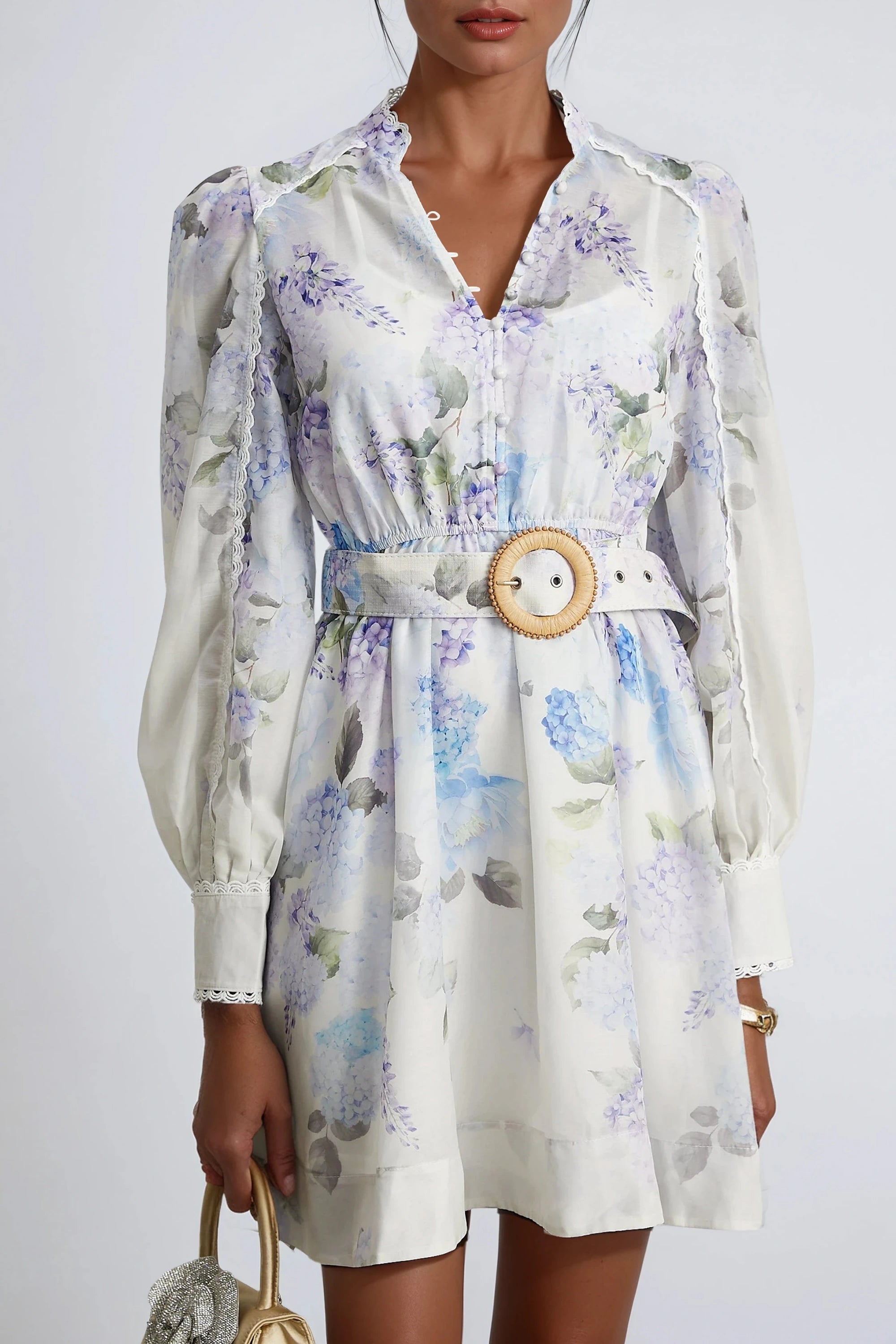Geneviève Mini Dress With Floral Print And Lace Trim