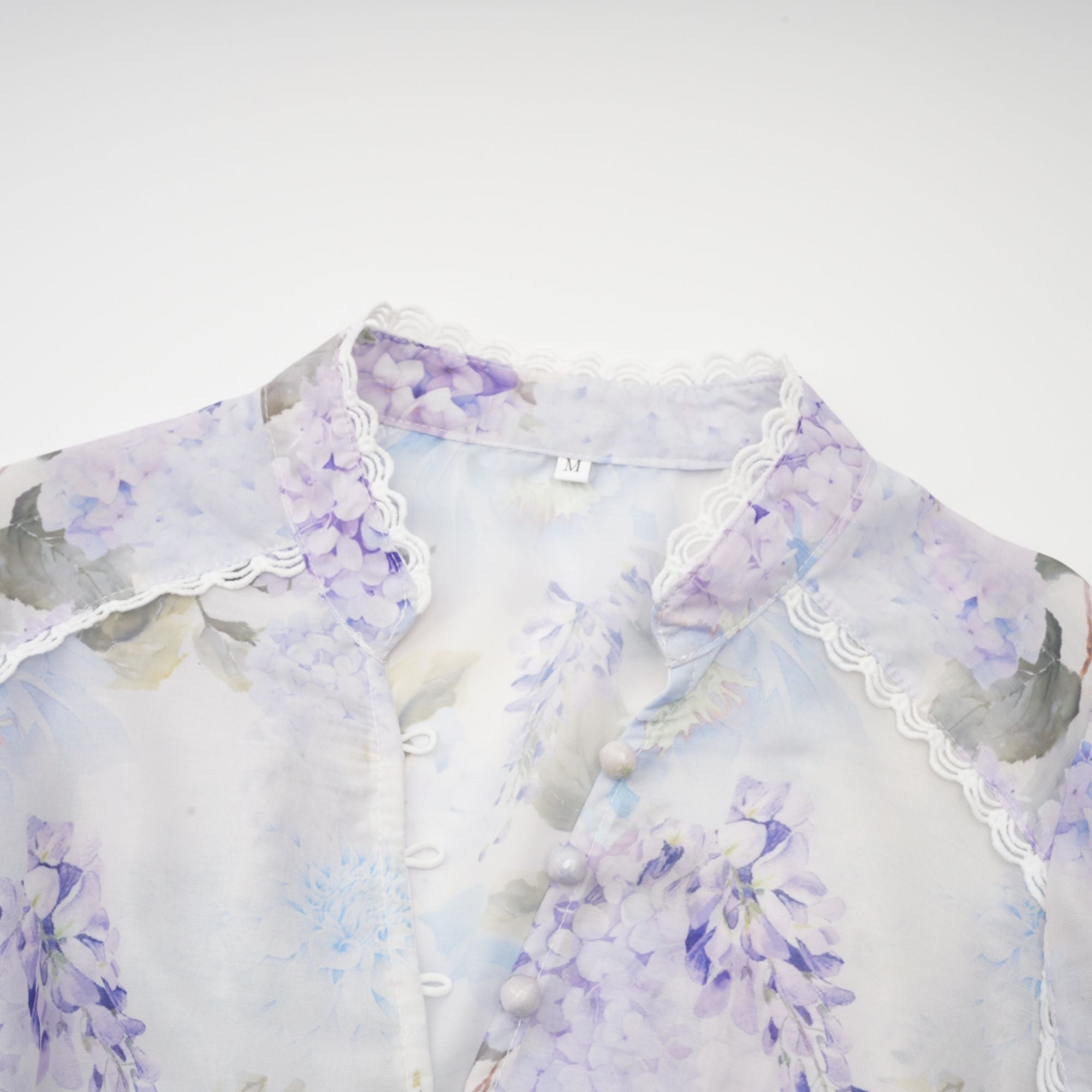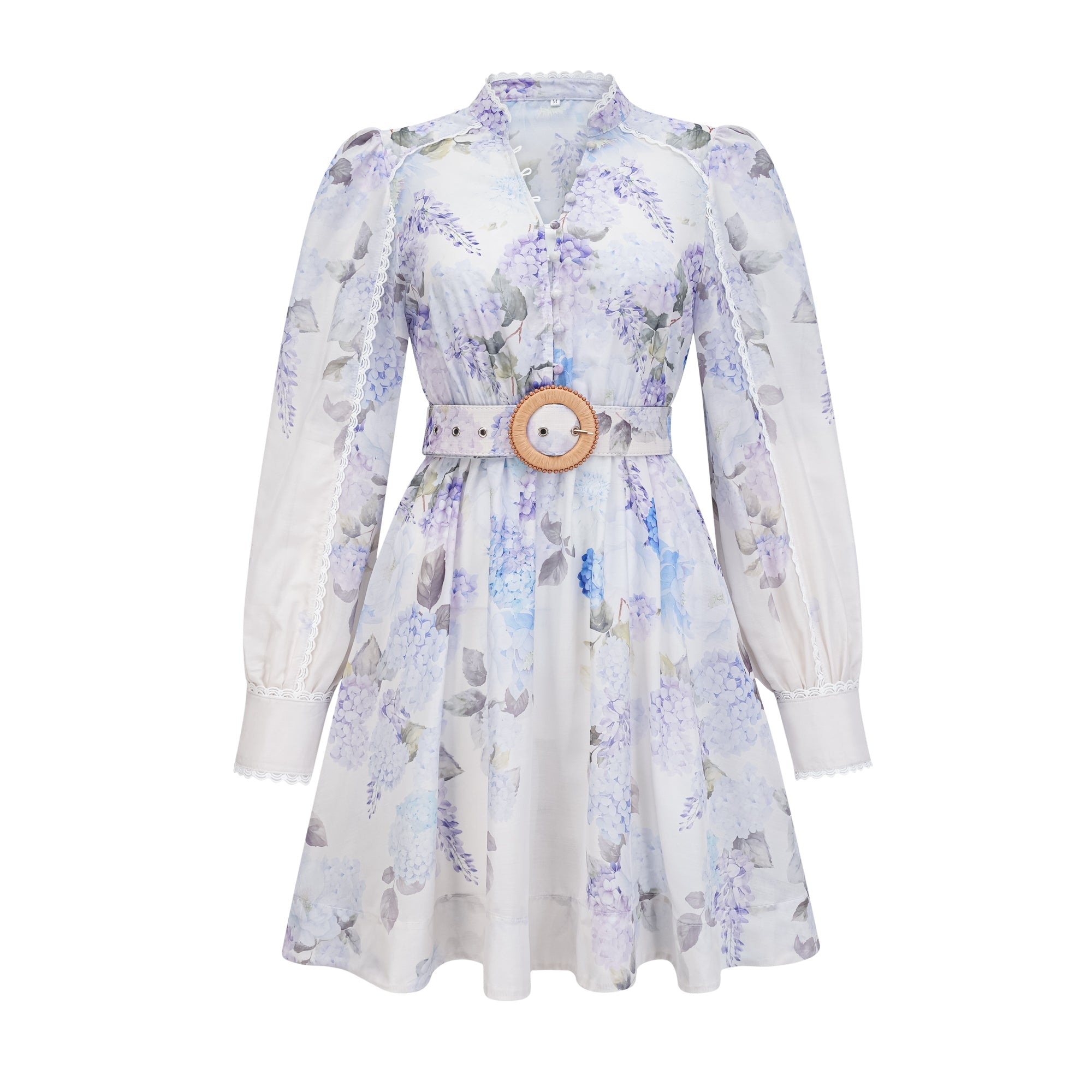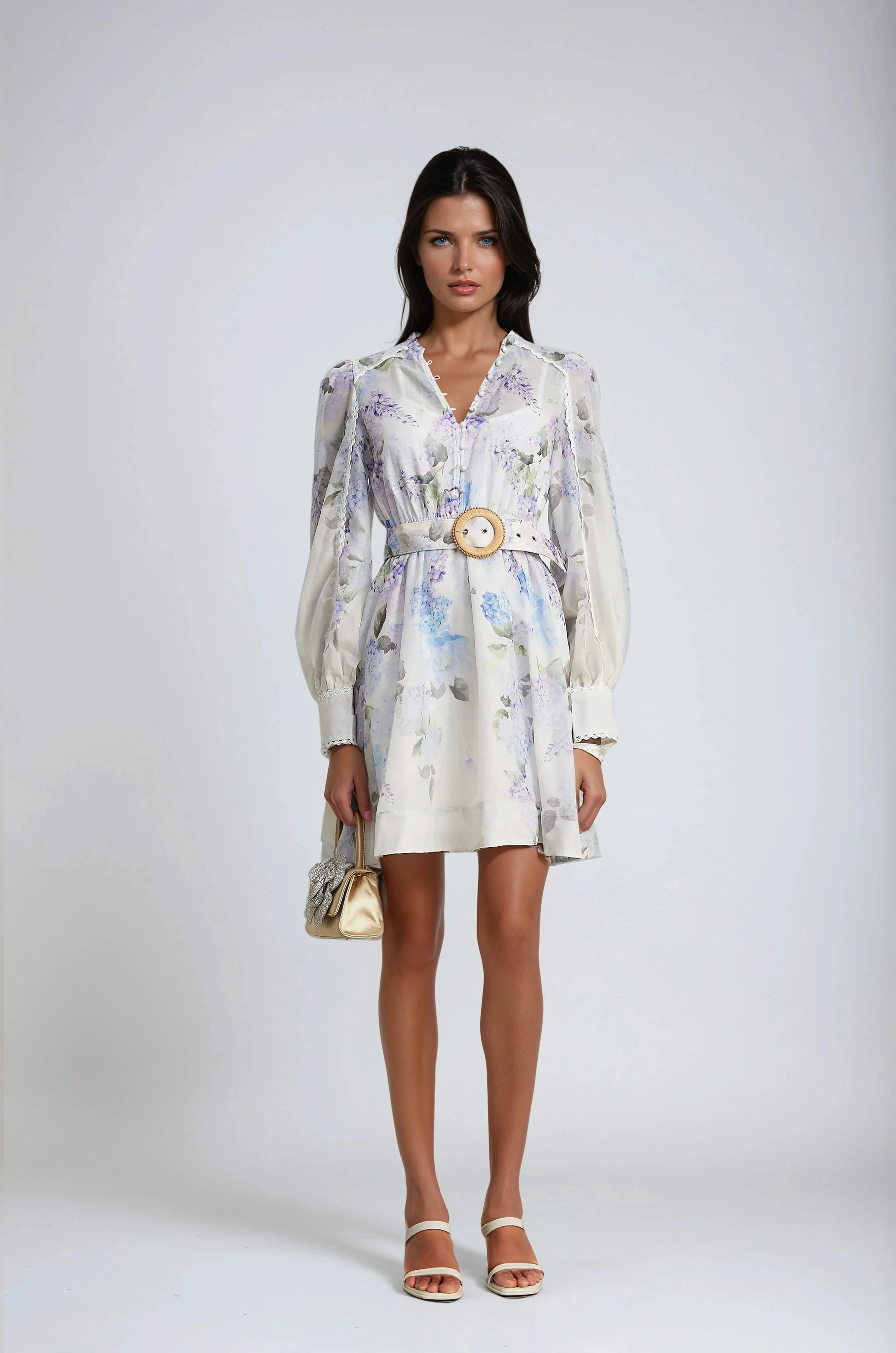 Geneviève Mini Dress With Floral Print And Lace Trim