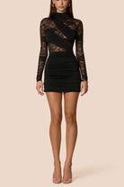 Heloise Black Lace Panelled Cut Out Mini Dress