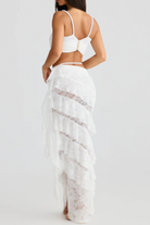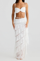 Prima White Lace Braided Detail Top & Skirt Set