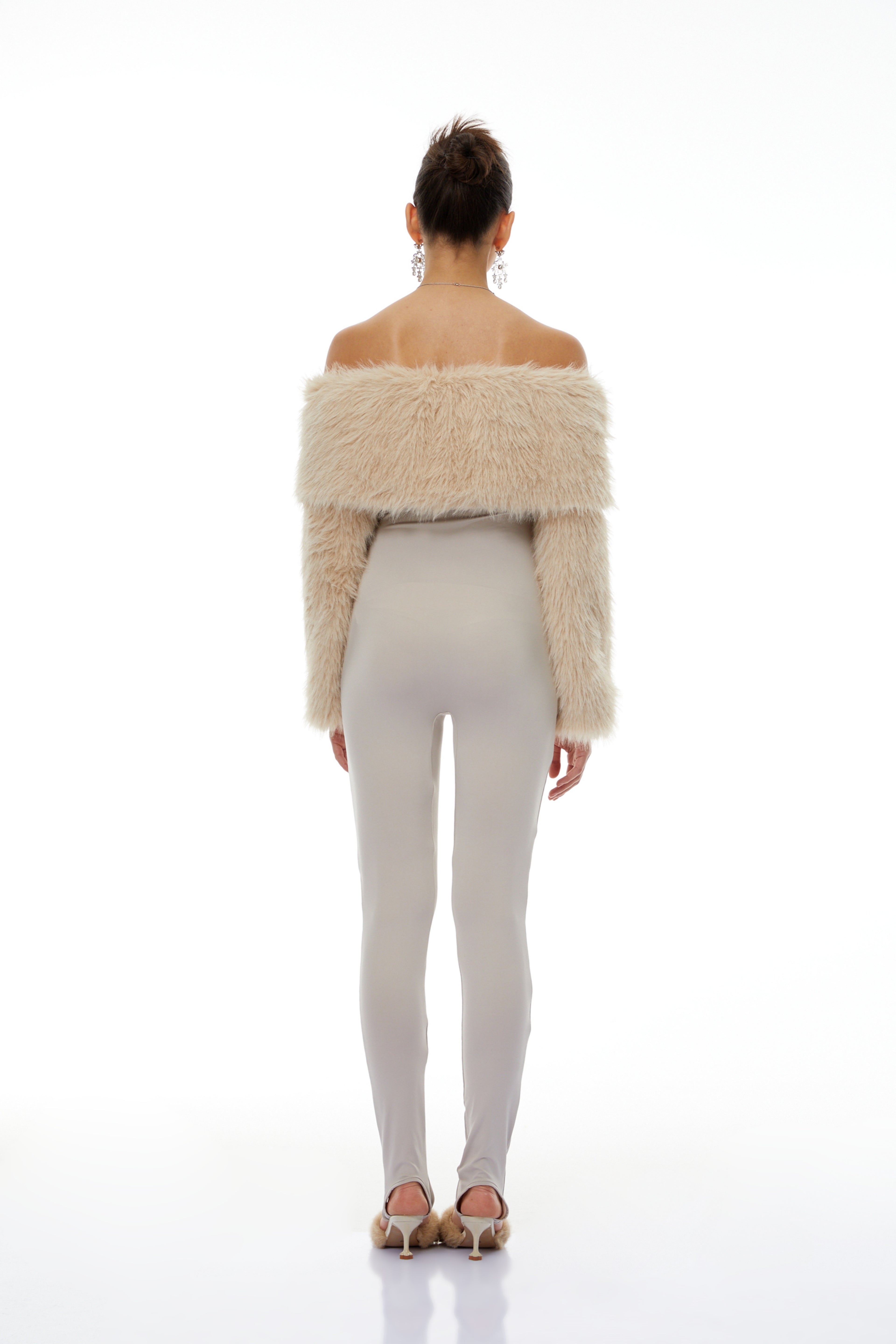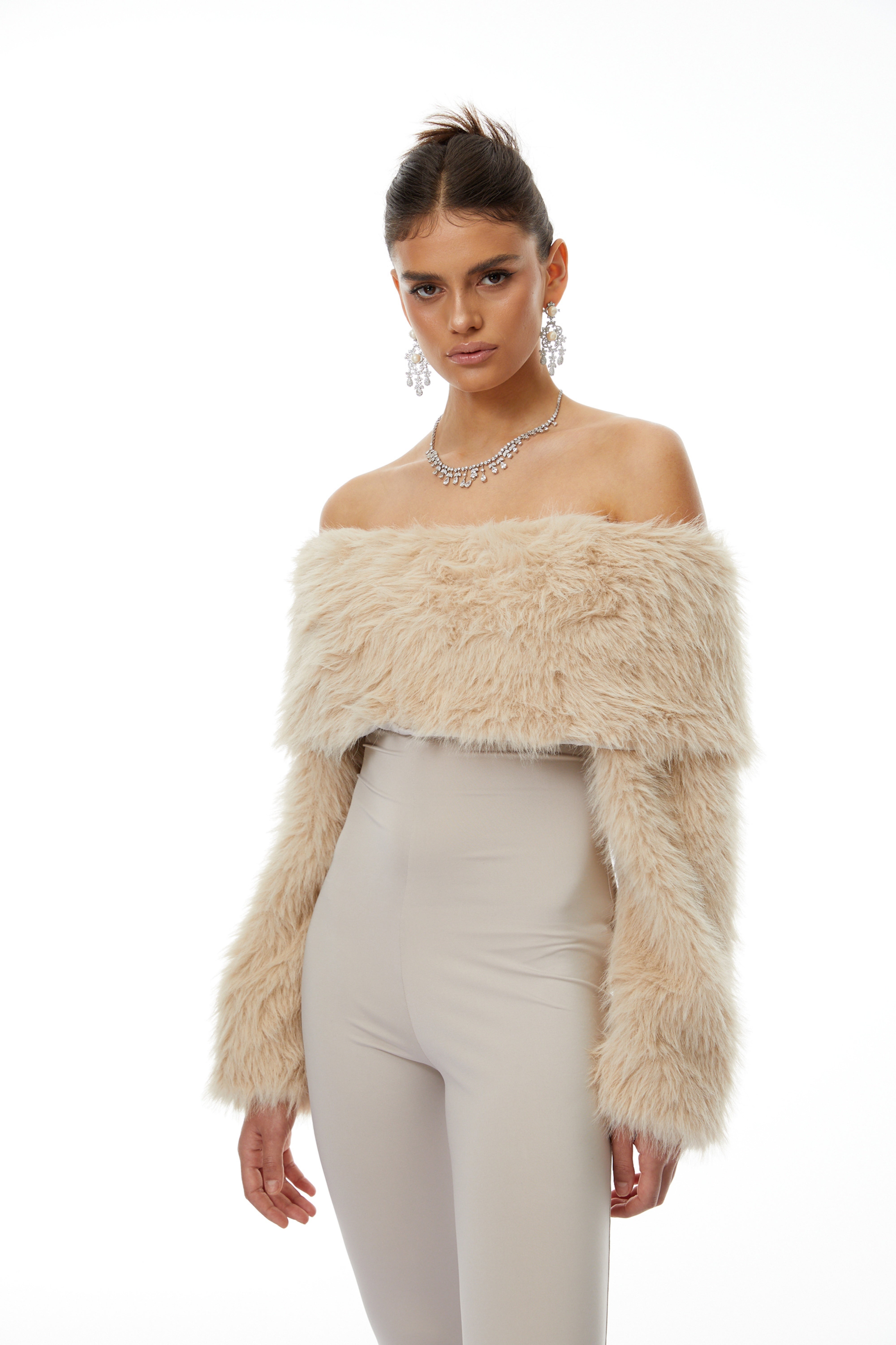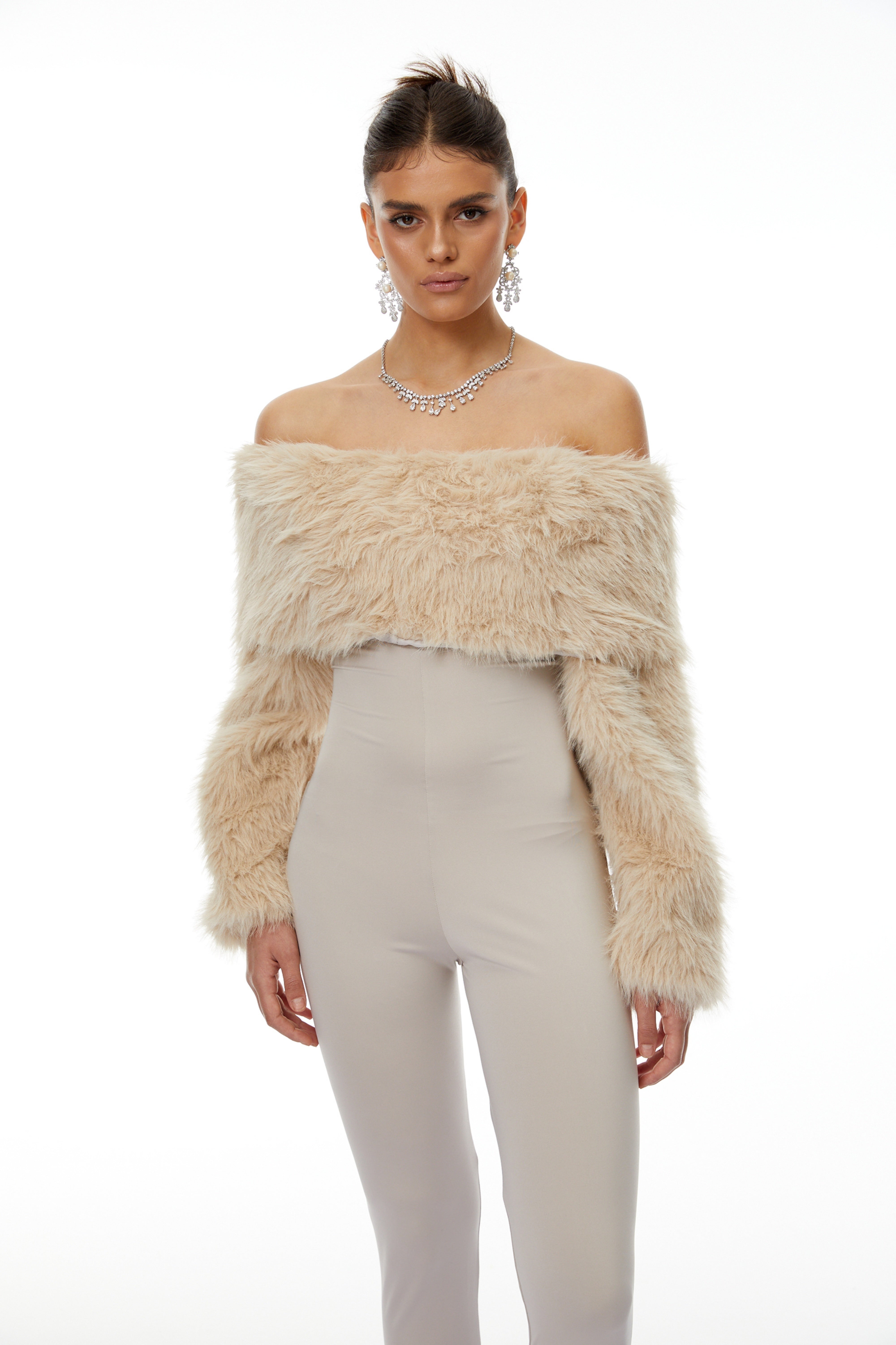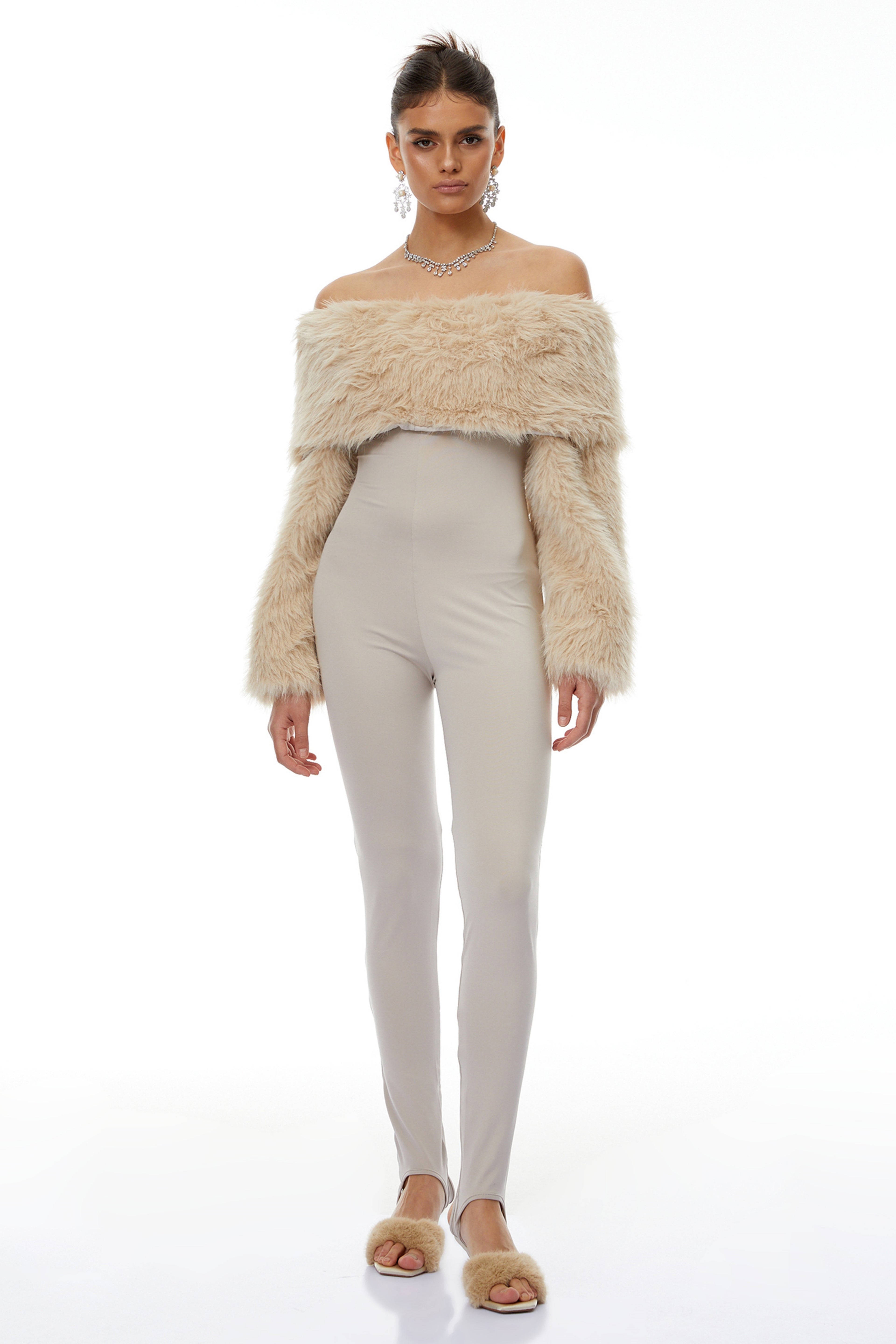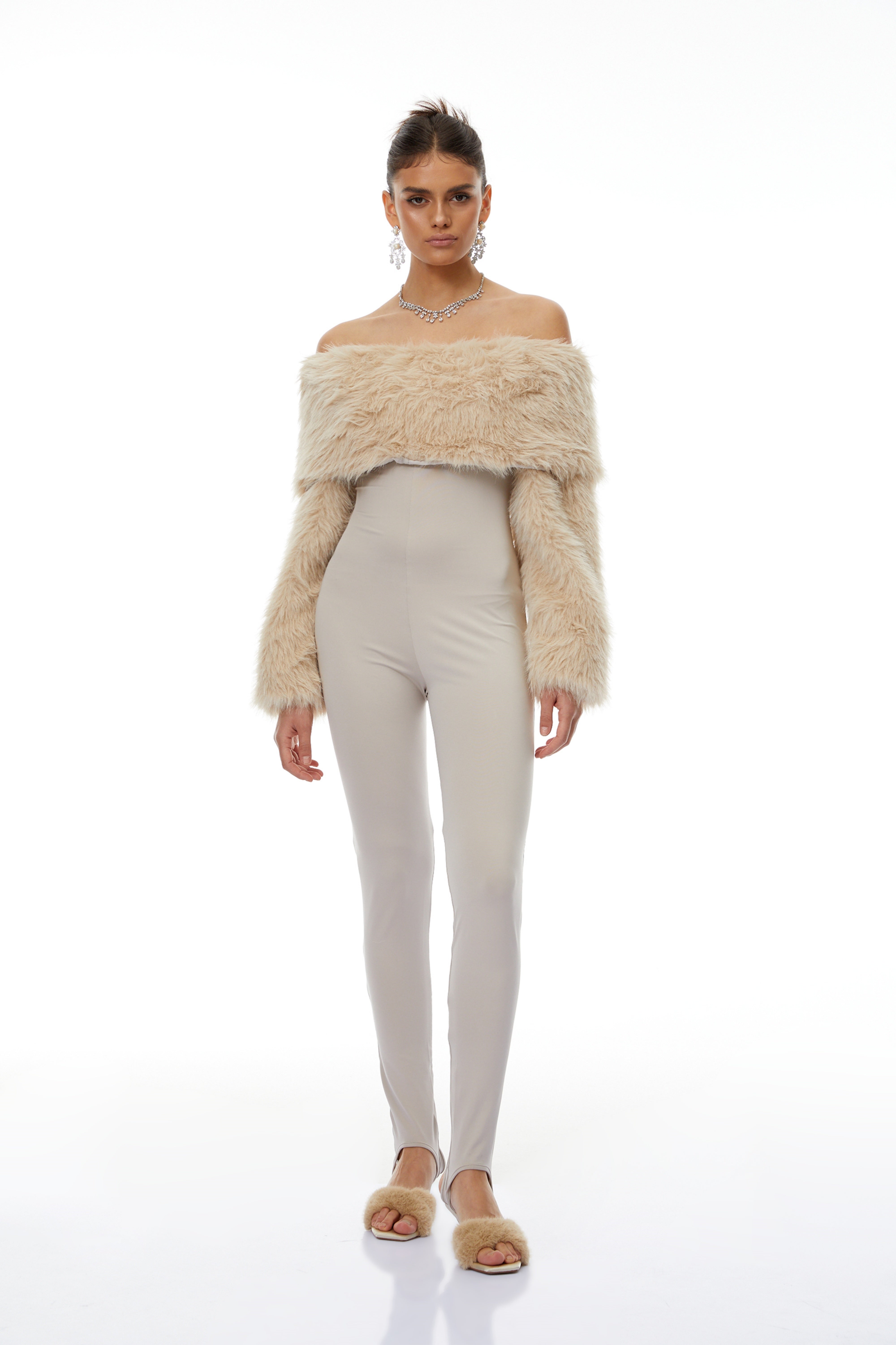 Dante Beige Off Shoulder Fur Jumpsuit