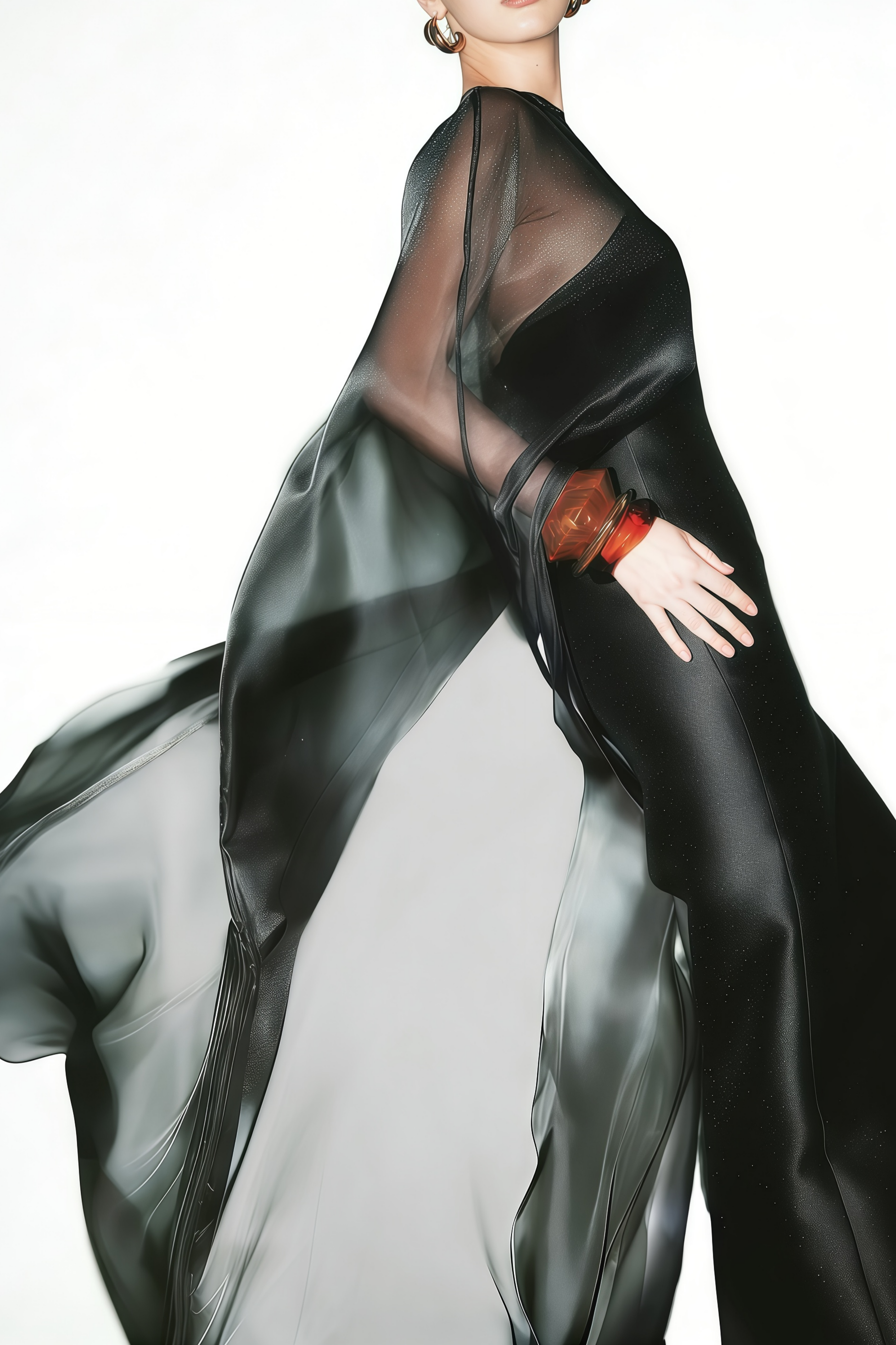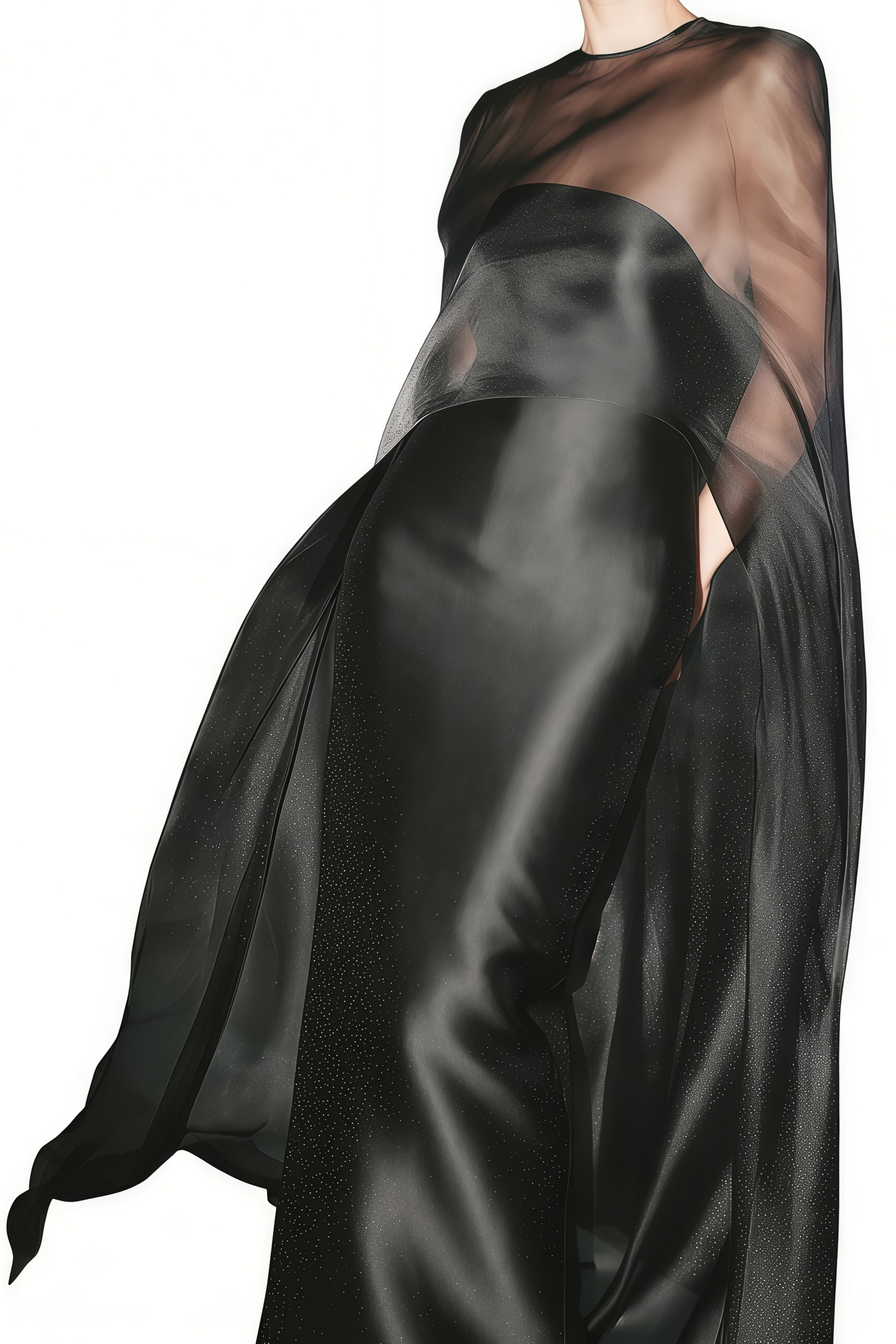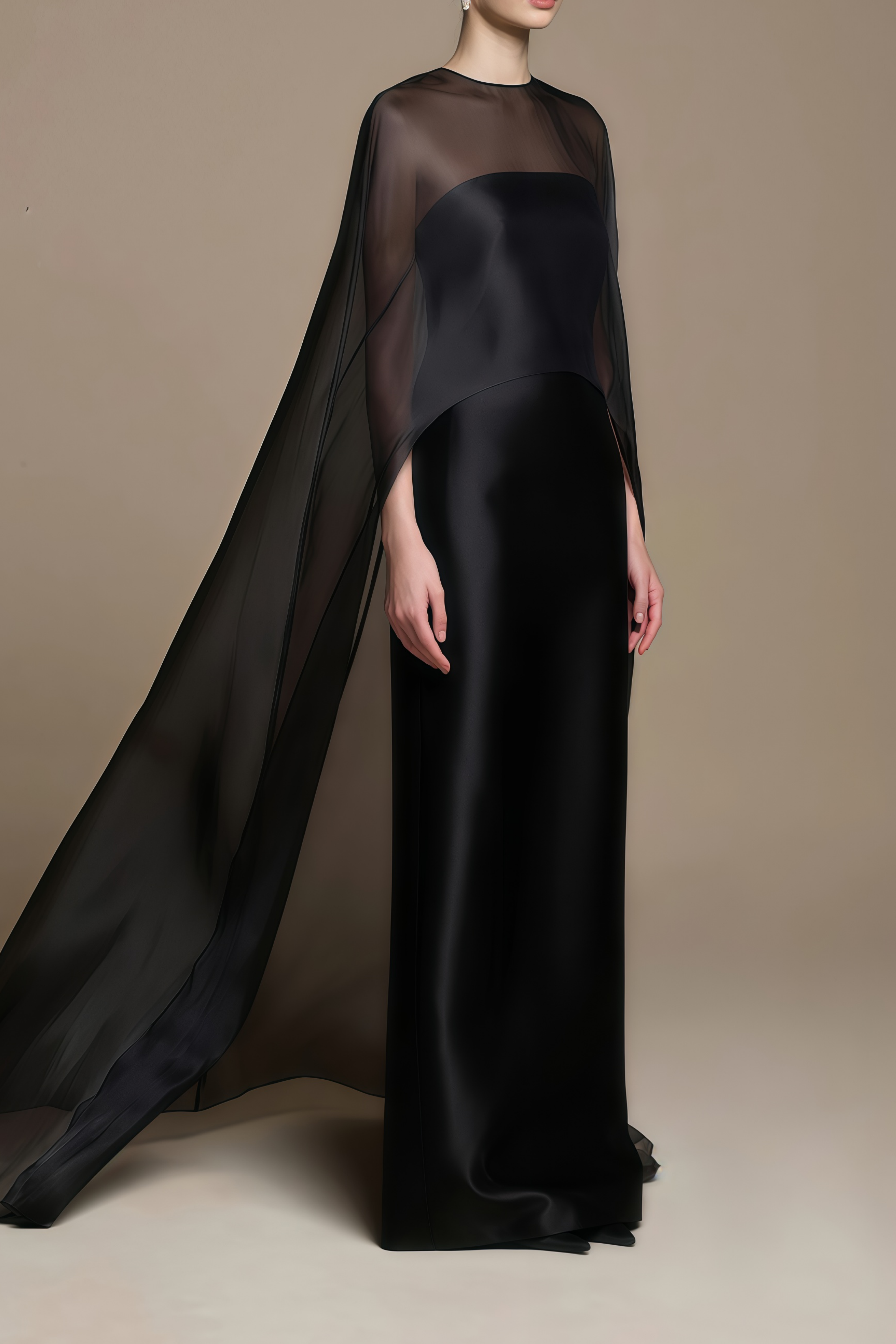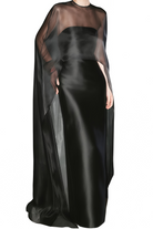 Yvette Black Sheer Cape & Off Shoulder Dress Set