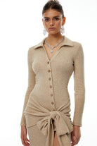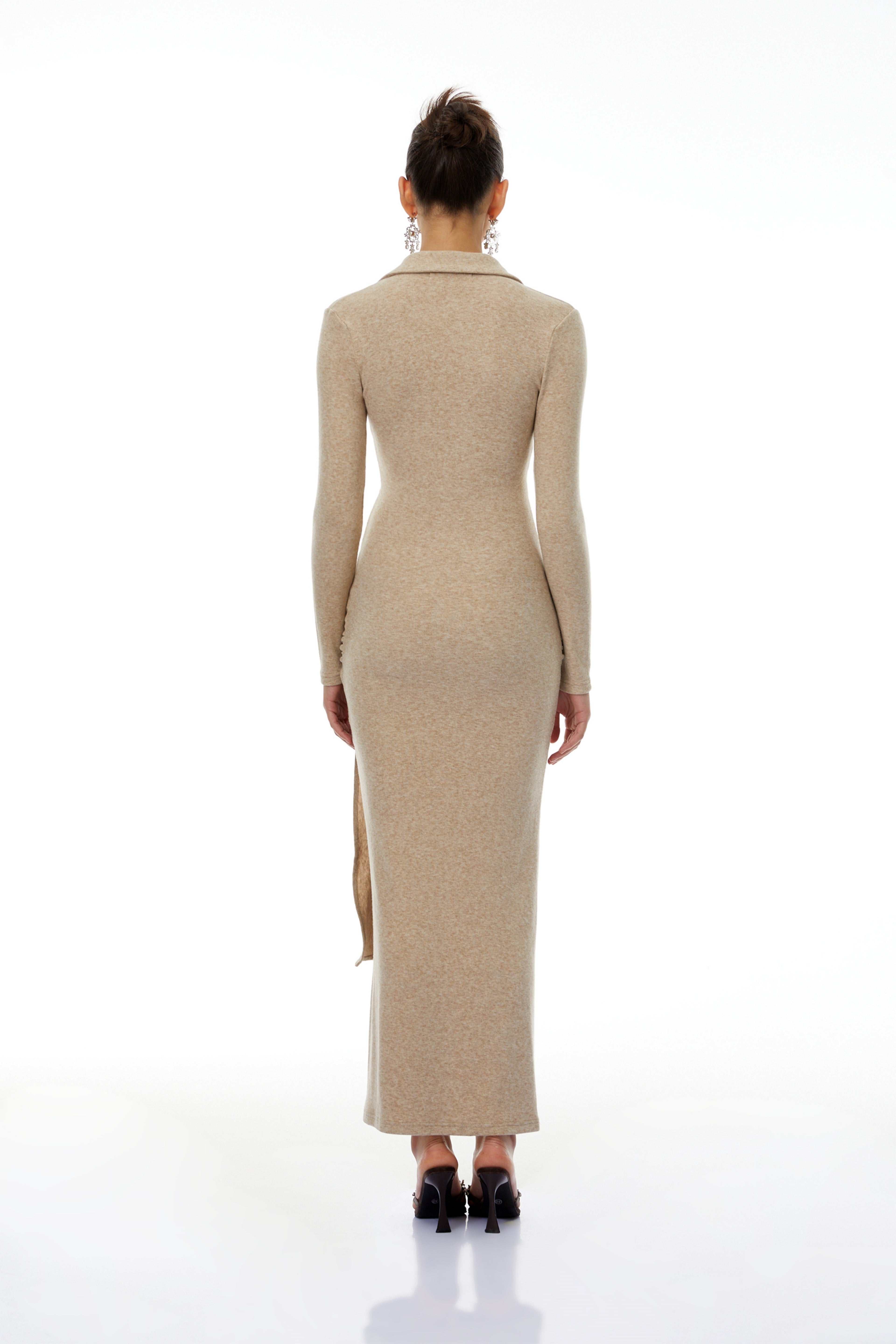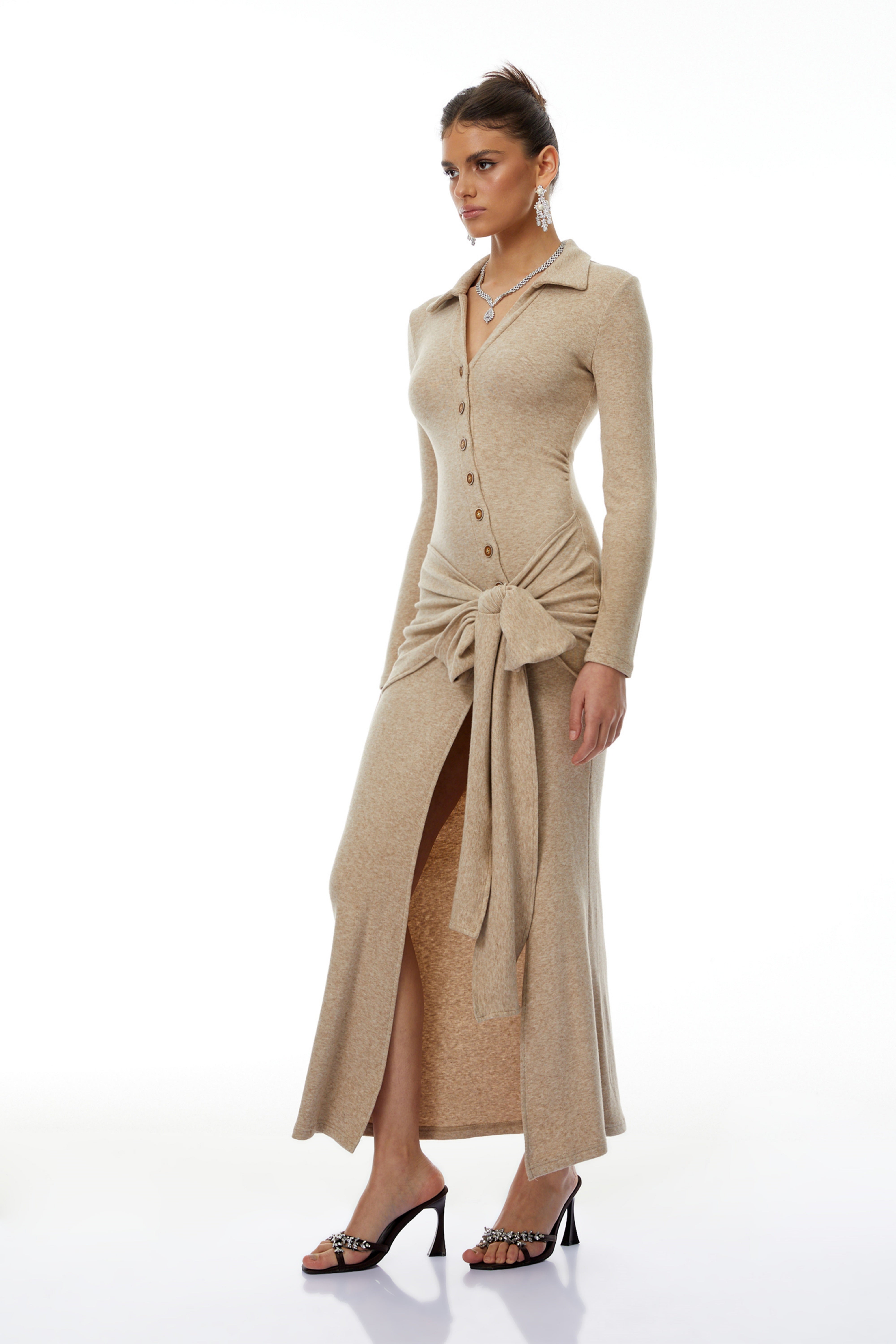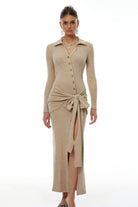 Noémie Neutral Self Tie Side Slit Maxi Dress
