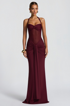 Faith Burgundy Halterneck Gathered Maxi Dress