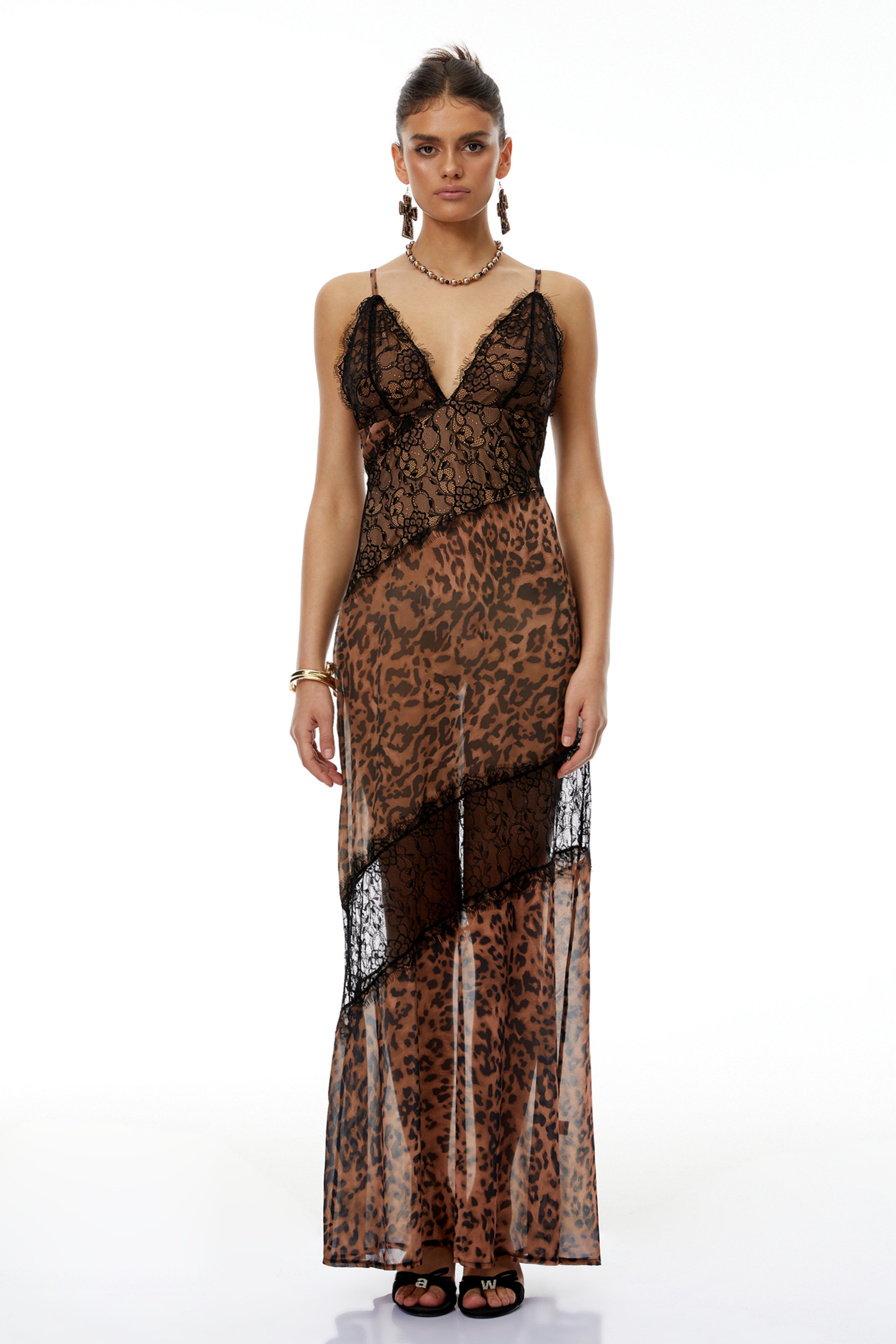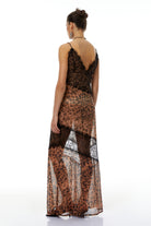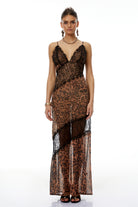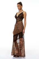 Luna Brown Off Shoulder Leopard Lace Maxi Dress