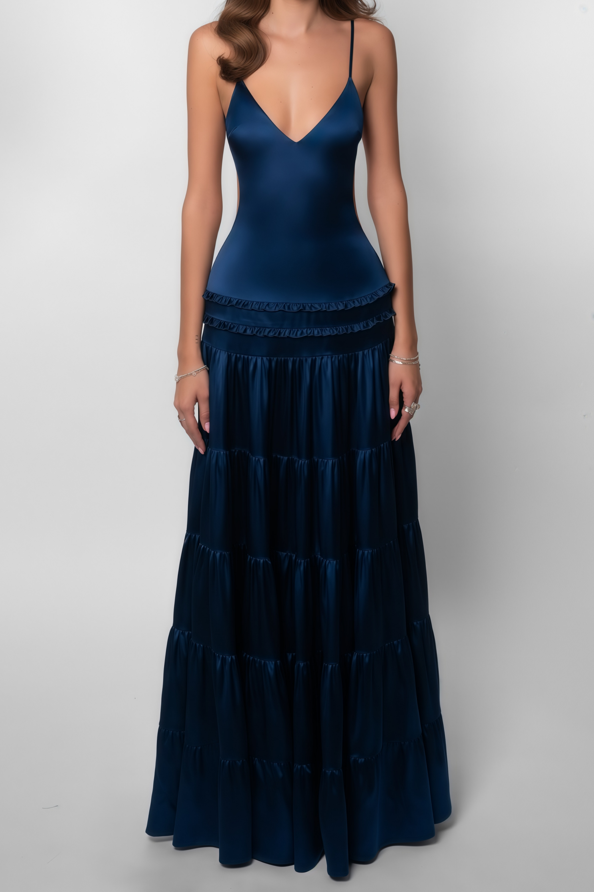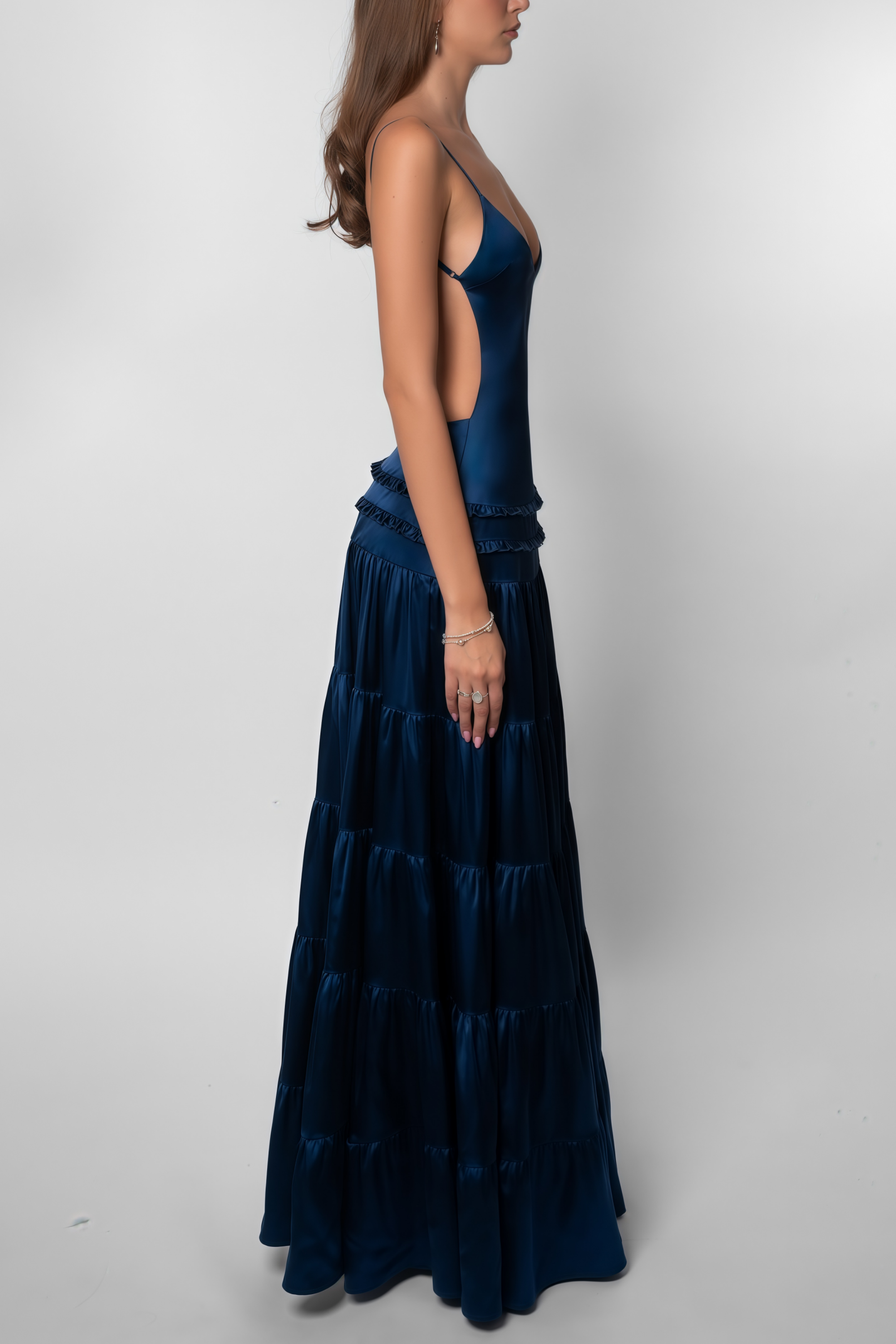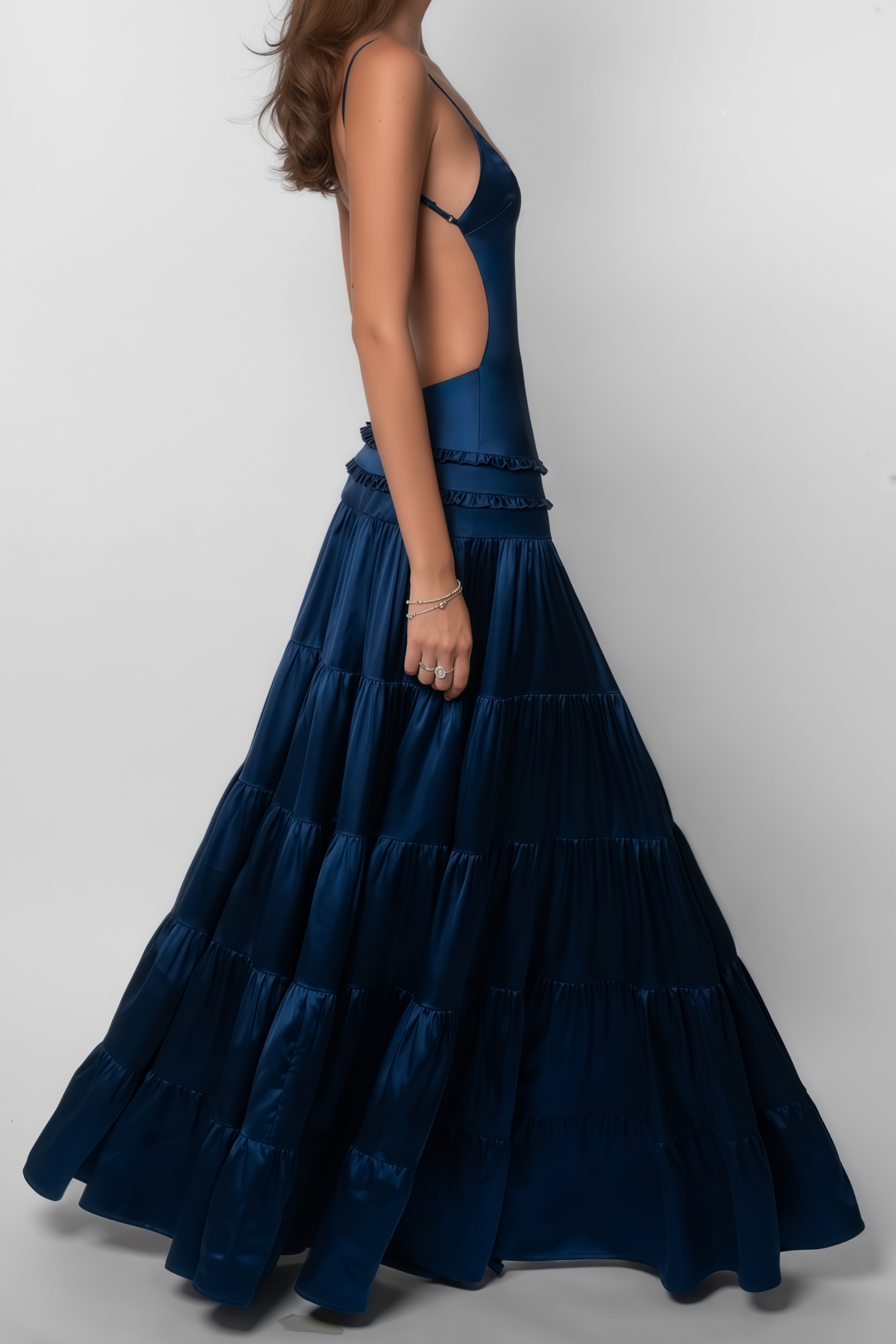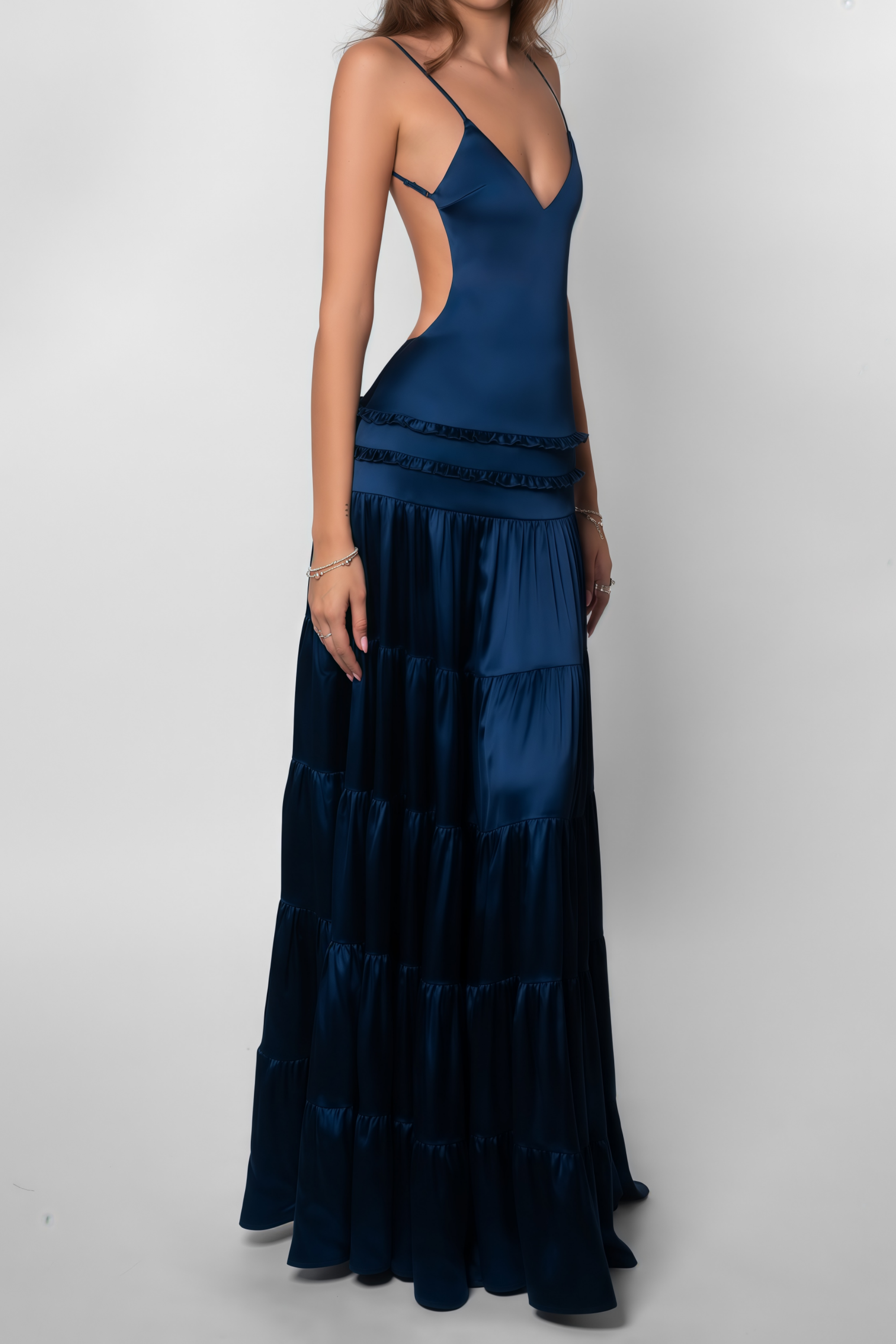 Mirabelle Blue Open Back Tiered Maxi Dress