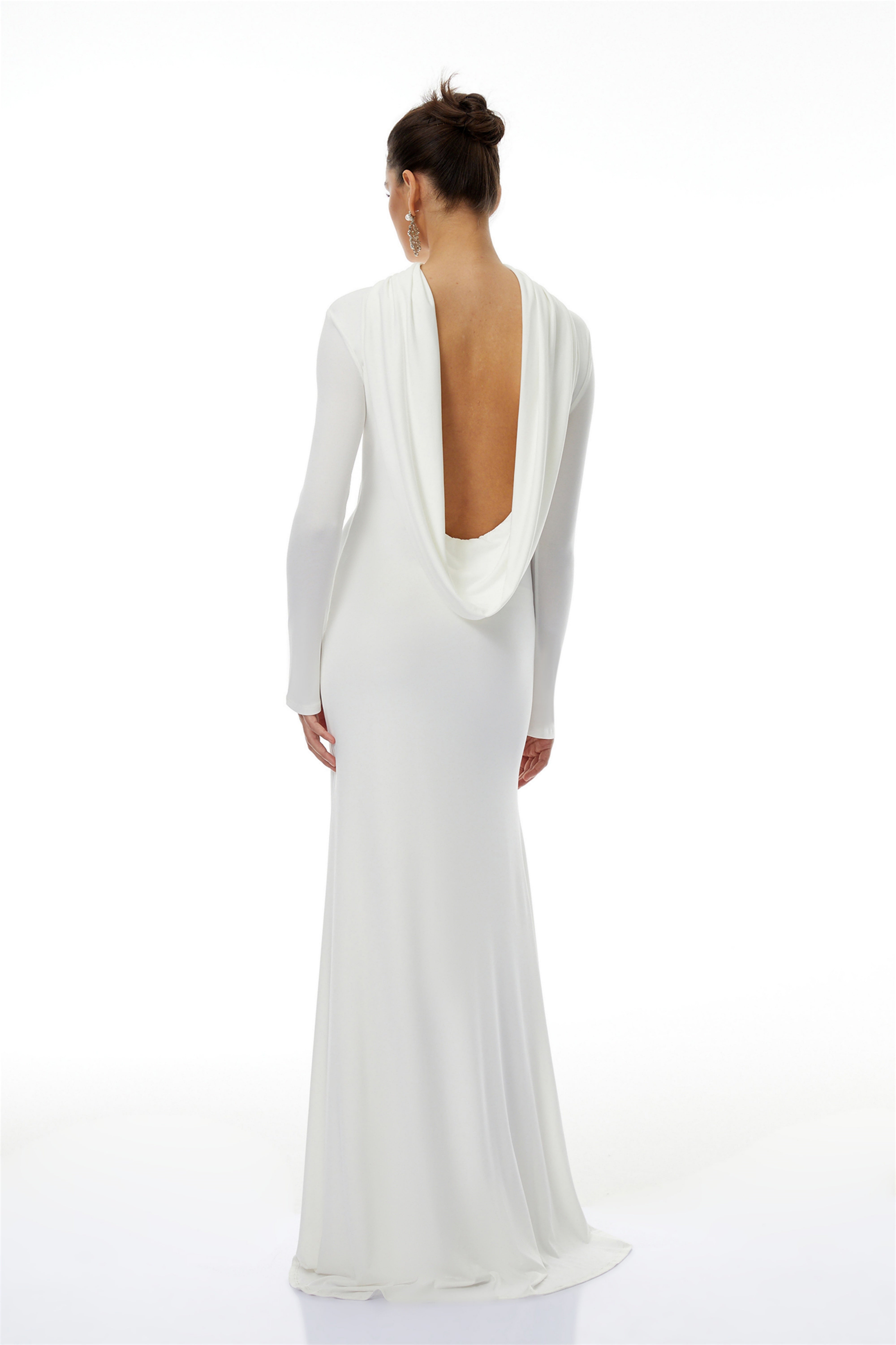 Vanessa White Stretch Knit Open Back Maxi Dress